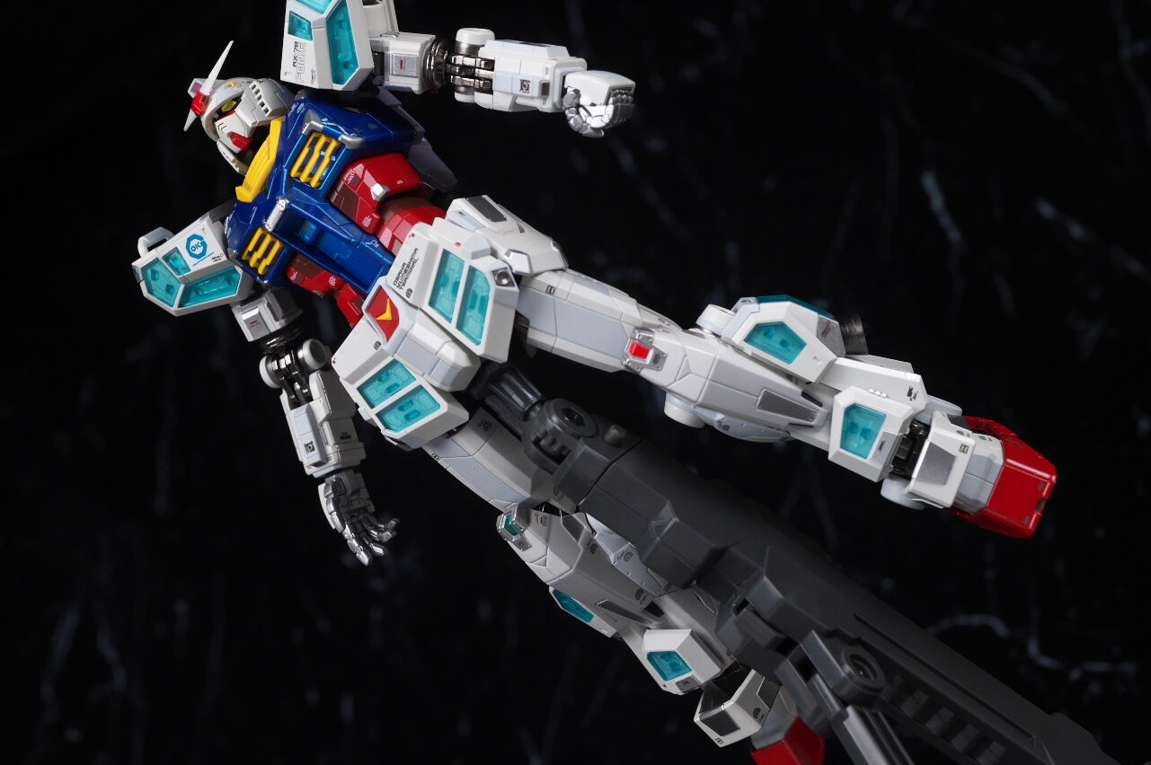 全身。造形は二の腕や太腿、関節など一部は横浜のRX-78F00ガンダムの流用のようですが、大部分は新規で、全身にクリアのパネルがある独特なデザインを再現。