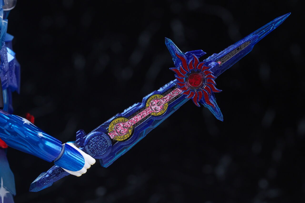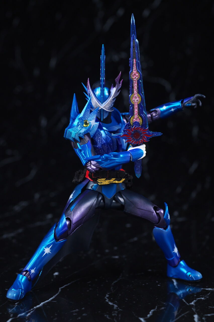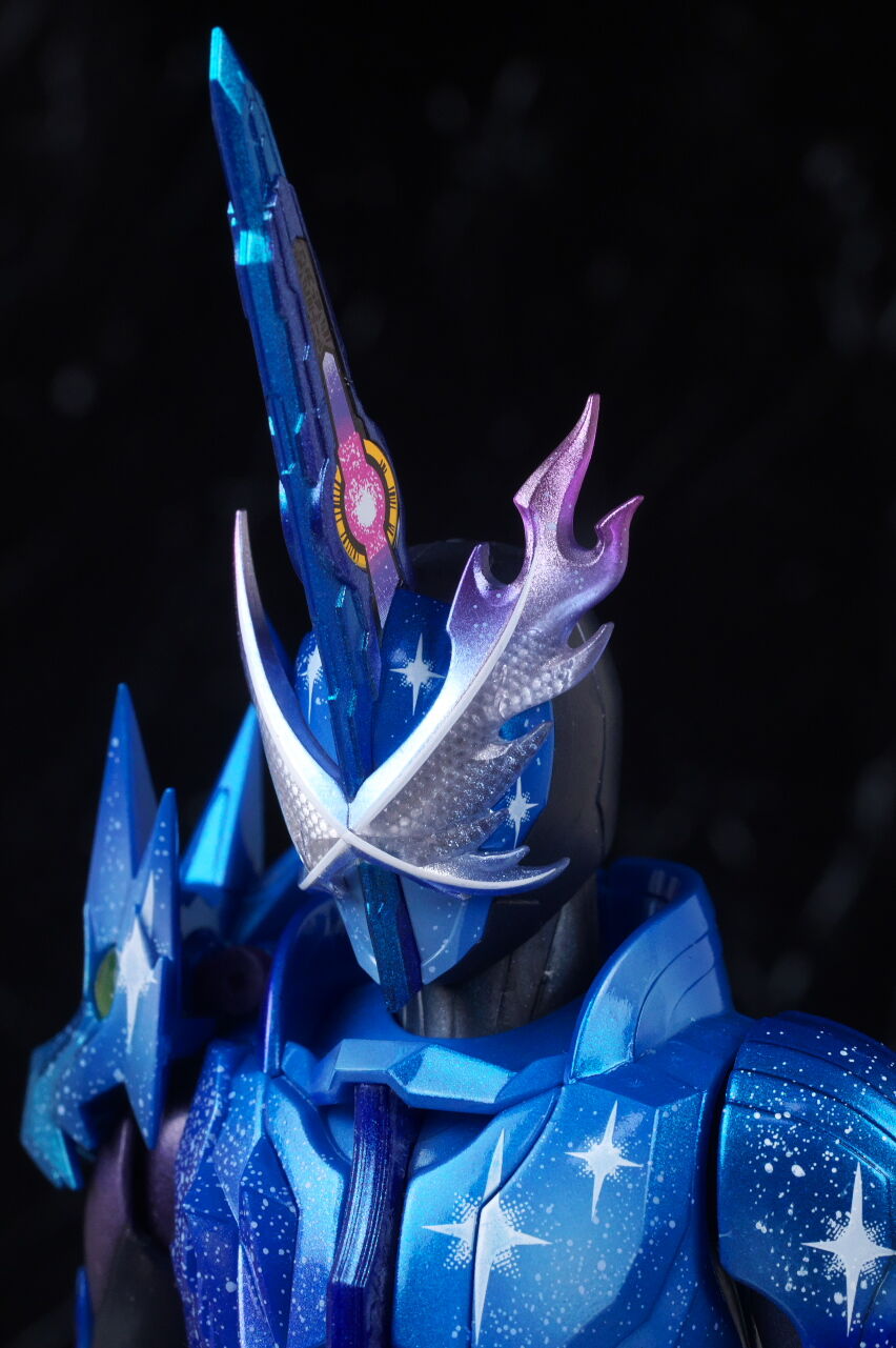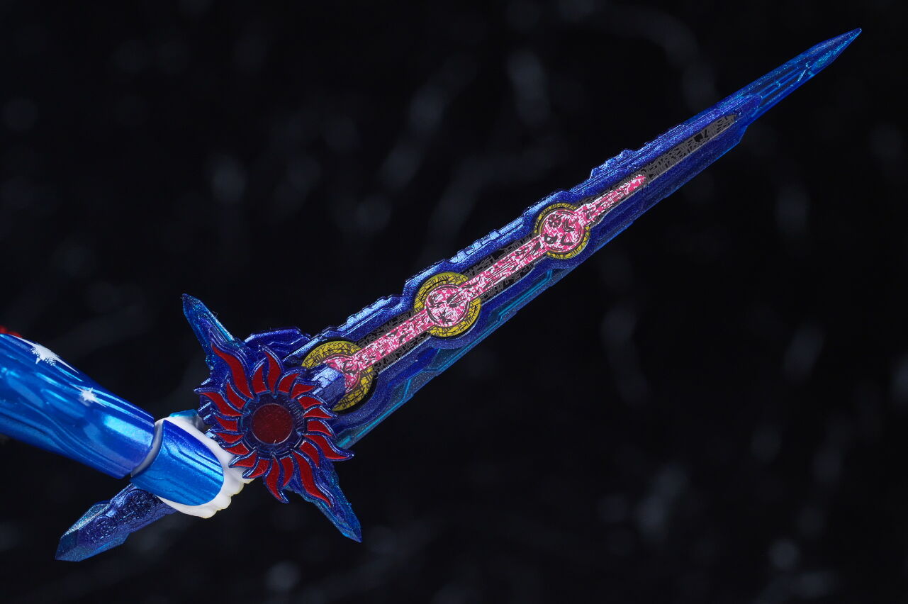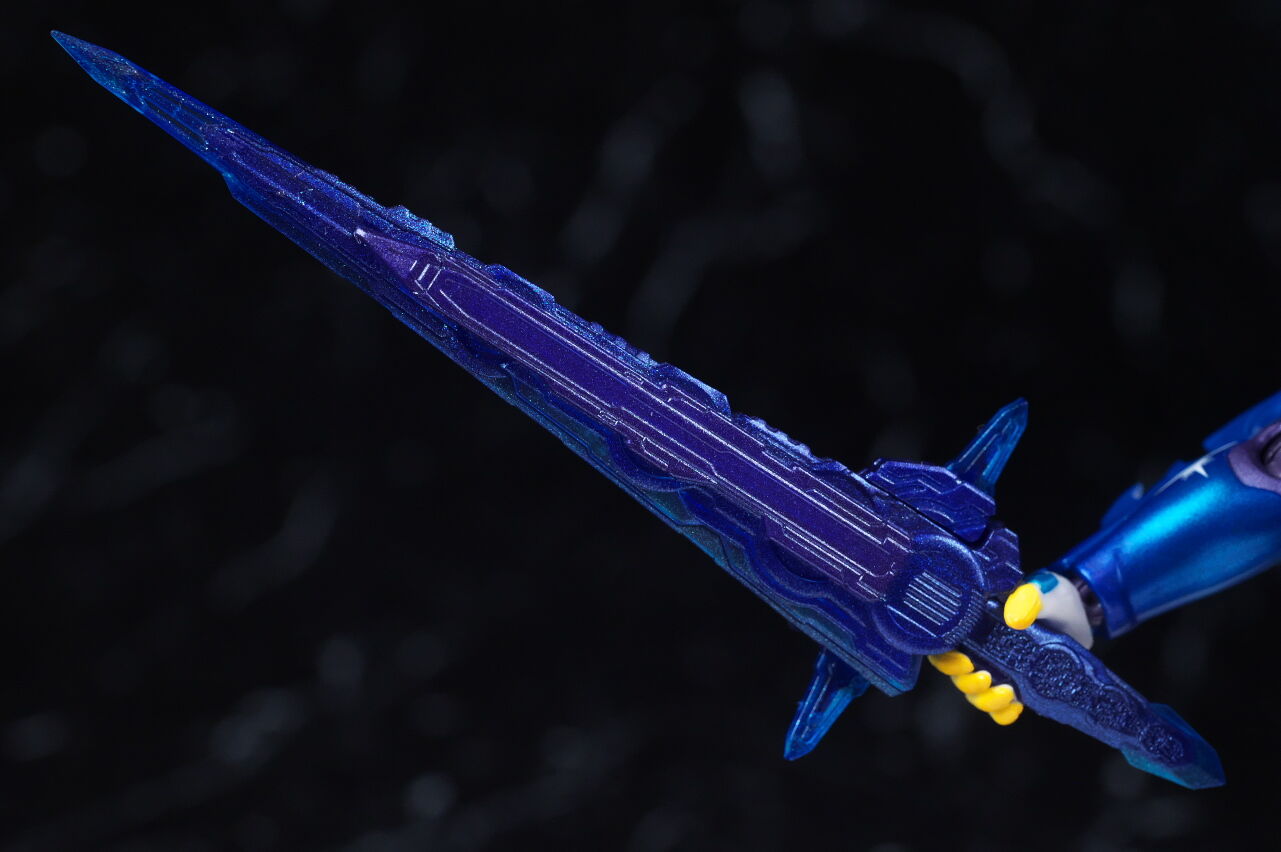 劇中に比べると、全身のグラデーションや星々の模様などある程度簡素にはなっているものの、全身のほとんどが塗装されており、また剣のディテールなどもかなり細かく、ぱっと見の雰囲気はまずまずの格好良さに仕上がってました。