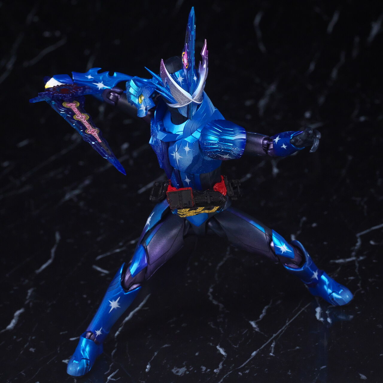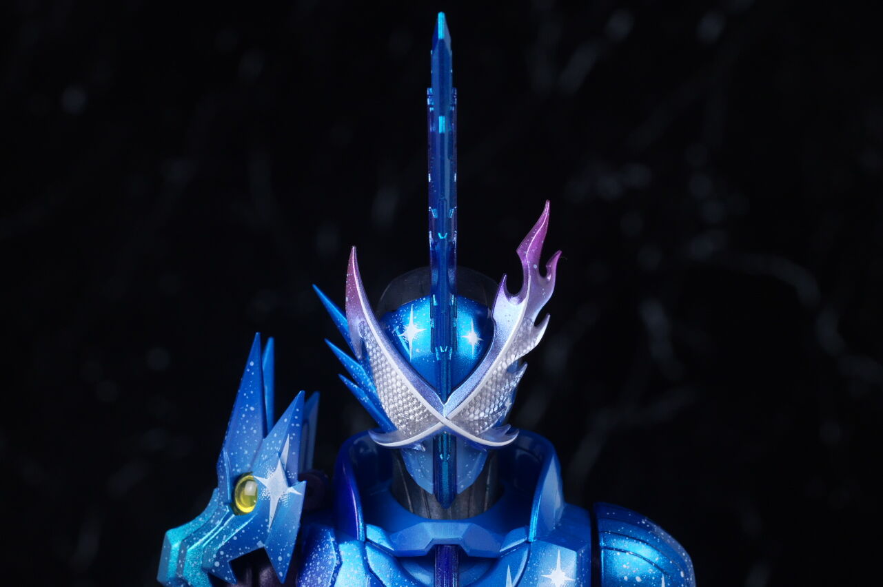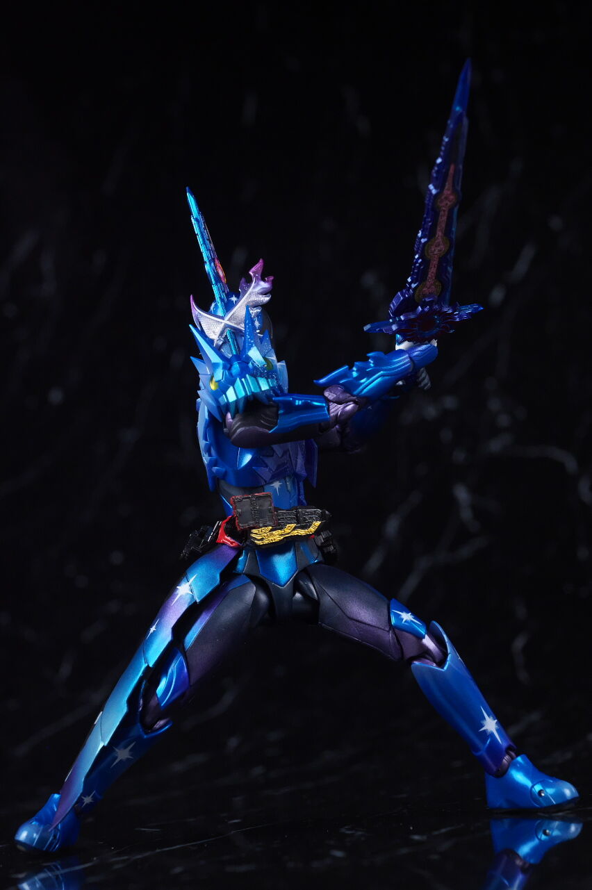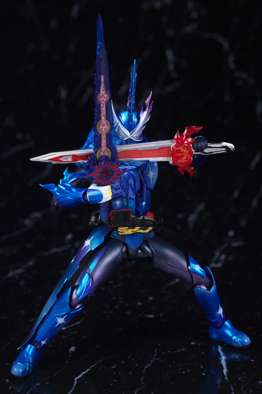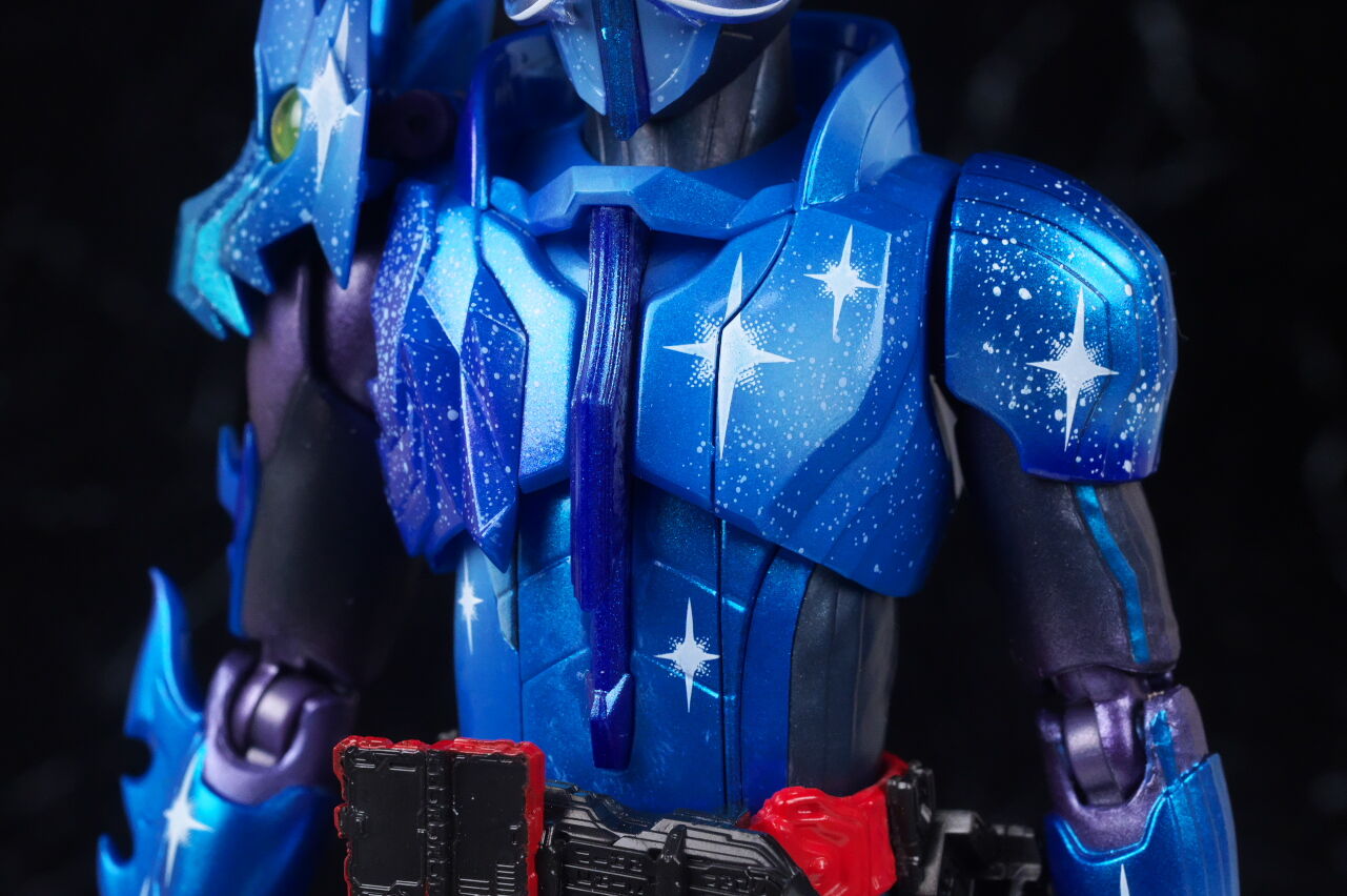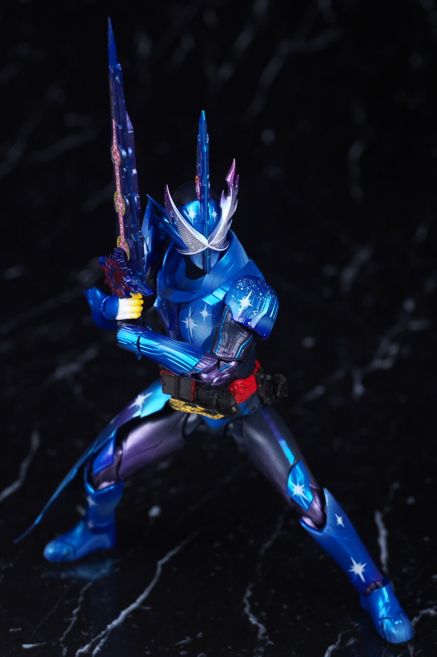 劇中に比べると、全身のグラデーションや星々の模様などある程度簡素にはなっているものの、全身のほとんどが塗装されており、また剣のディテールなどもかなり細かく、ぱっと見の雰囲気はまずまずの格好良さに仕上がってました。