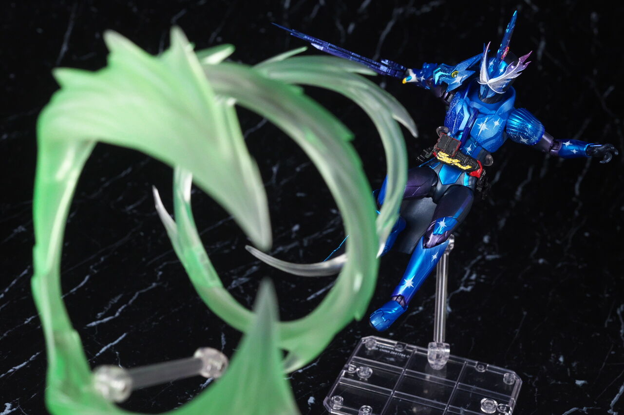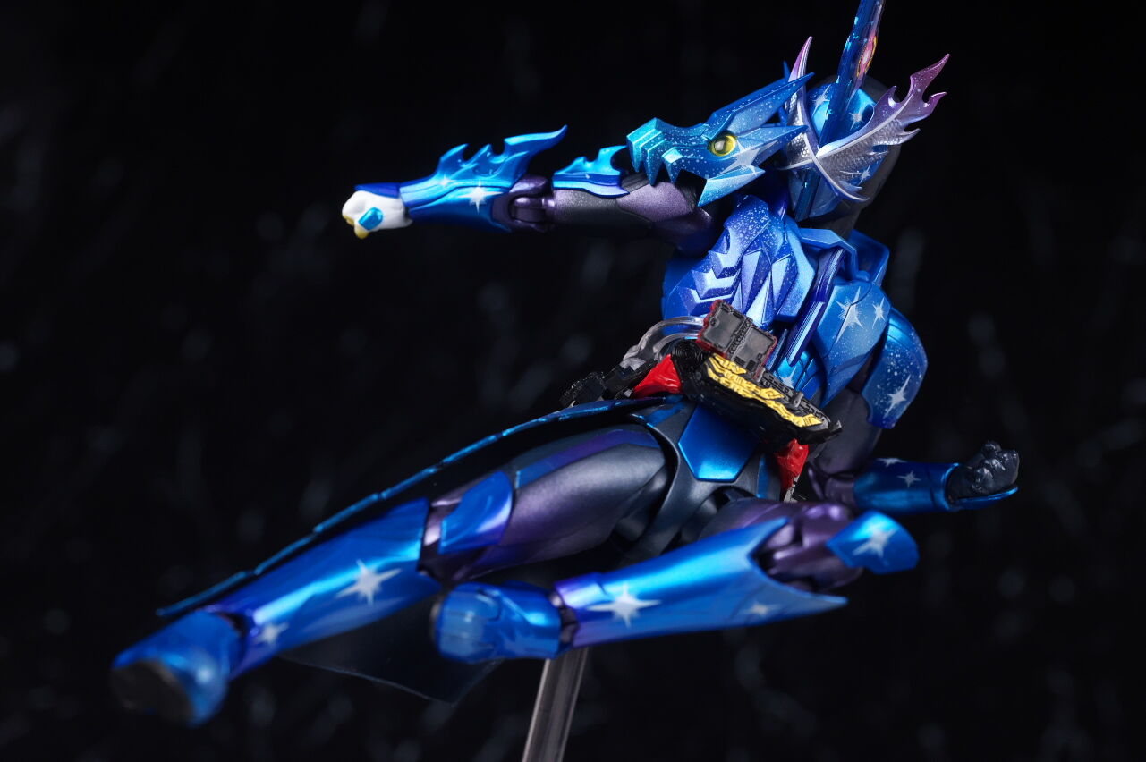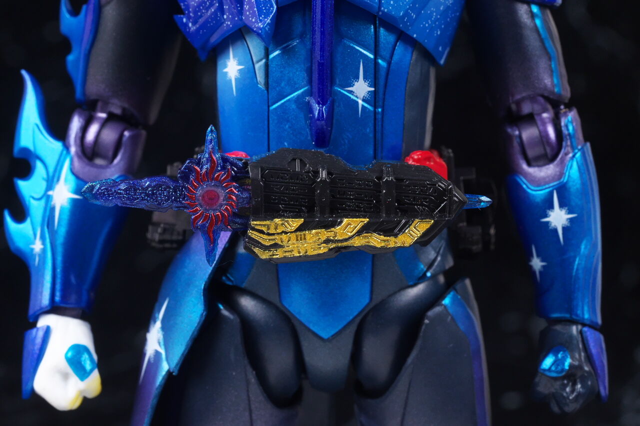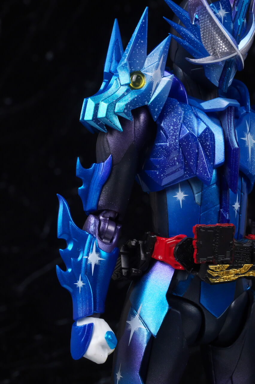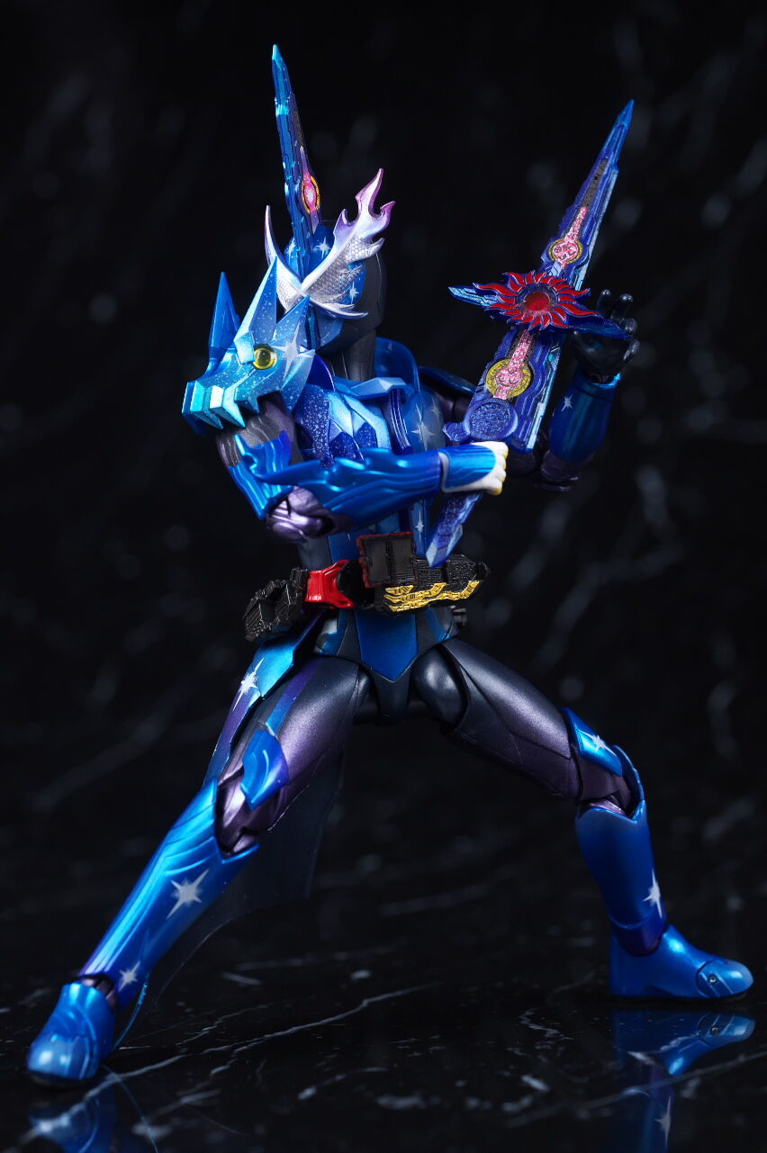 劇中に比べると、全身のグラデーションや星々の模様などある程度簡素にはなっているものの、全身のほとんどが塗装されており、また剣のディテールなどもかなり細かく、ぱっと見の雰囲気はまずまずの格好良さに仕上がってました。