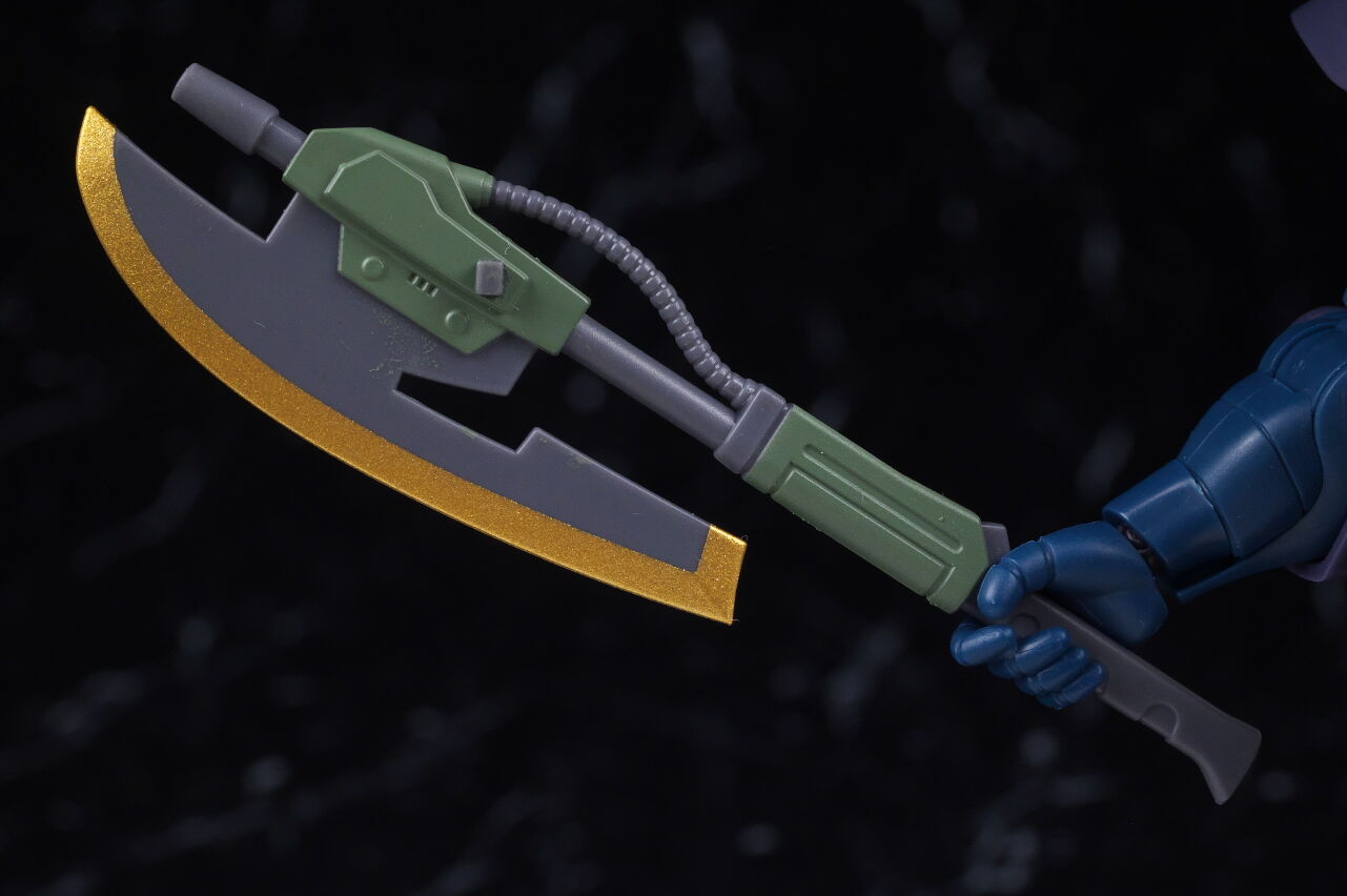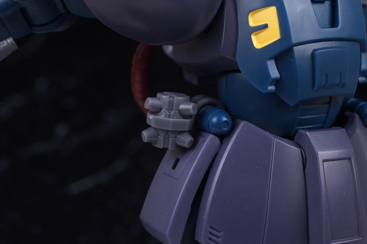 腕や足。この辺も造形は変わらず。肩アーマーの形状が独特で、太い脛や大きい足首などはザクらしいデザイン。