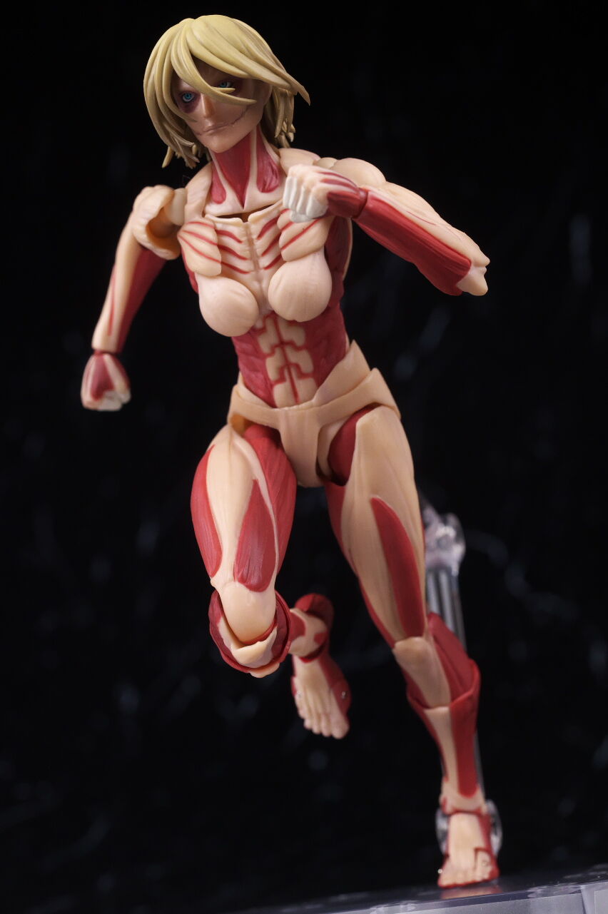 全身。作中通り進撃や鎧に比べて小柄で細身。筋繊維が剥き出しでちょっとグロい感じの見た目も、色など含めて忠実に再現されてました。