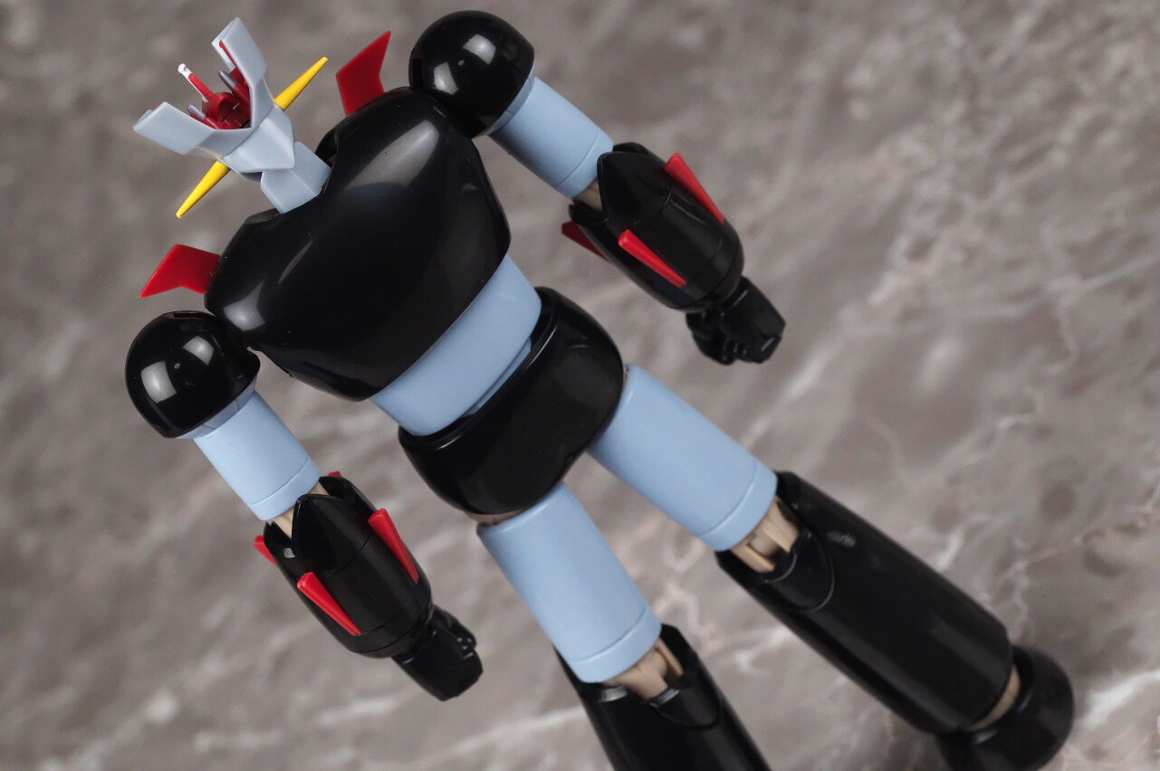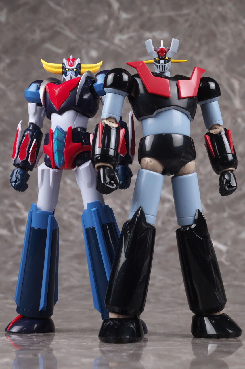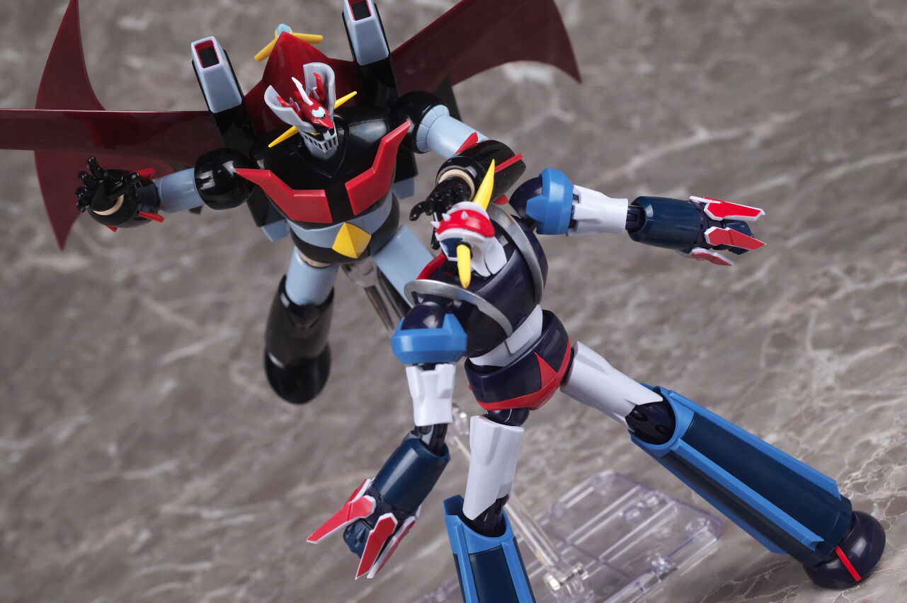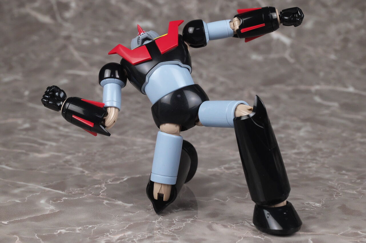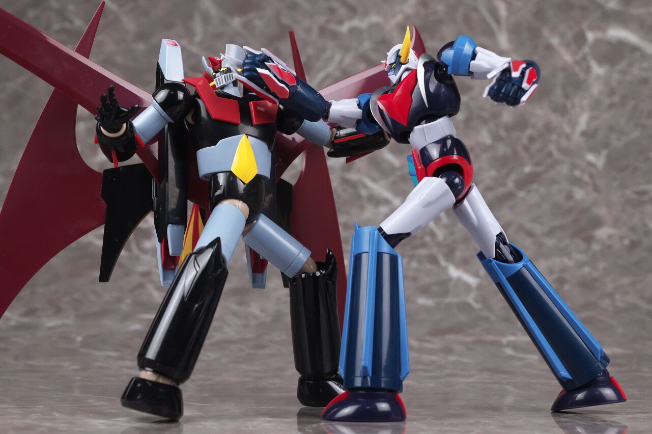 スーパーロボット超合金のマジンガーZとも。マジンガーはこういうメタリック塗装を見慣れているので、今回のグレーは少し