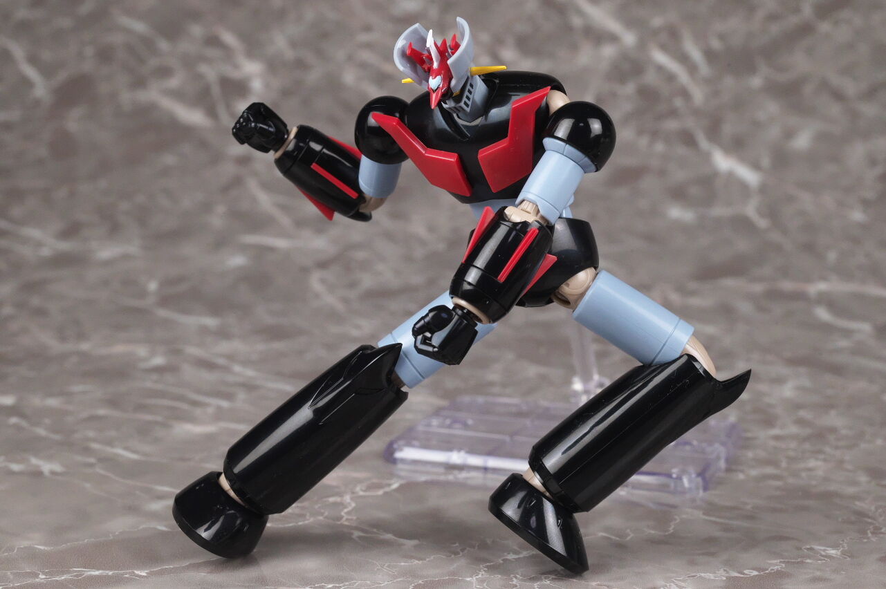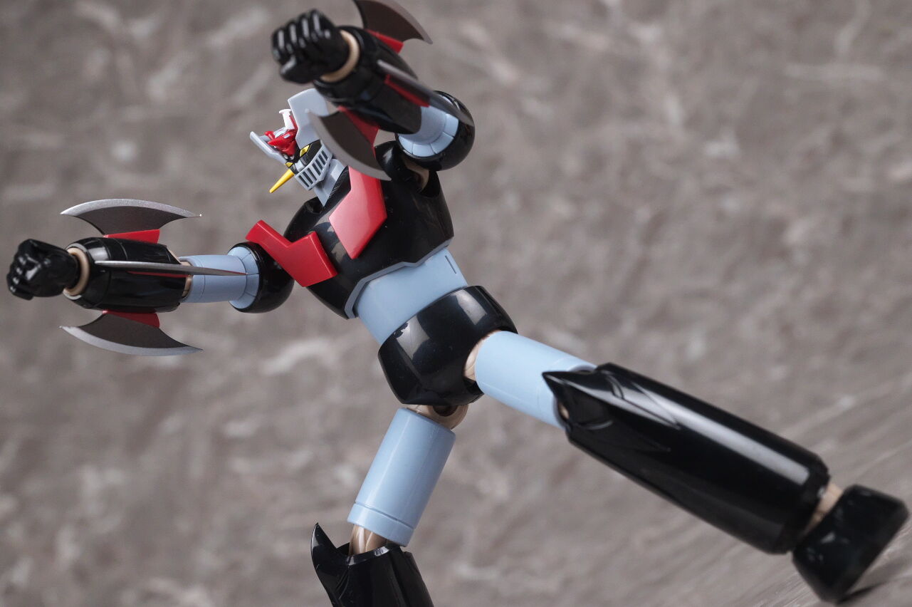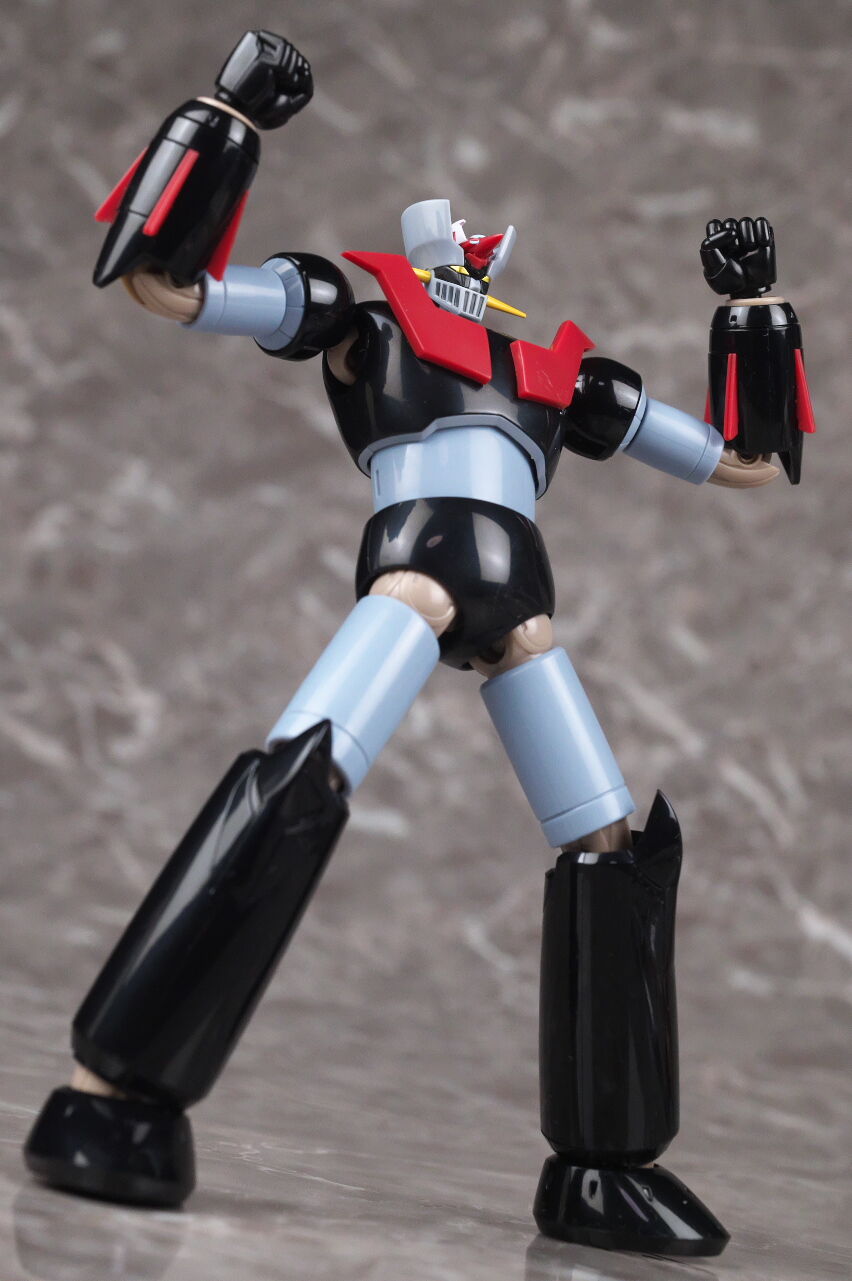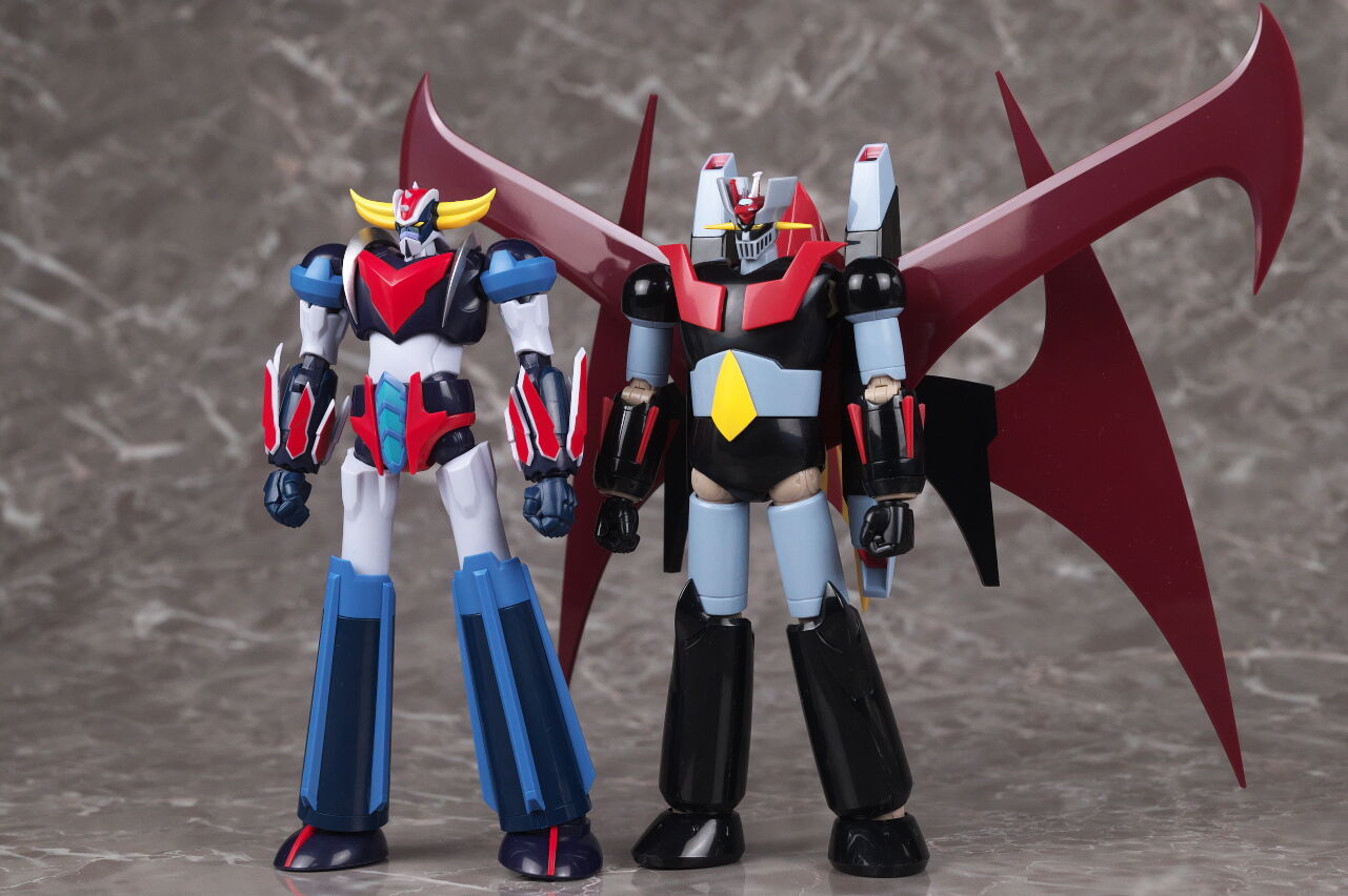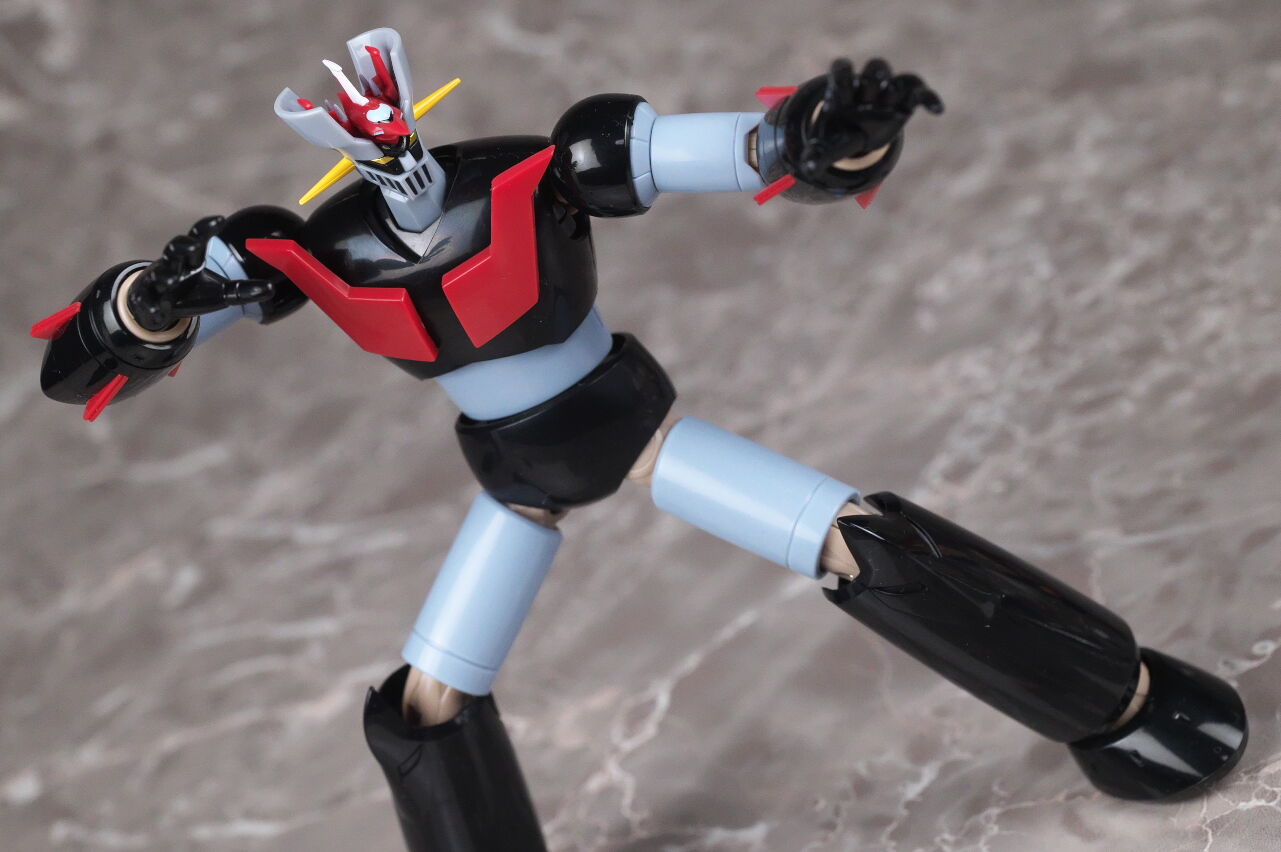 スーパーロボット超合金のマジンガーZとも。マジンガーはこういうメタリック塗装を見慣れているので、今回のグレーは少し