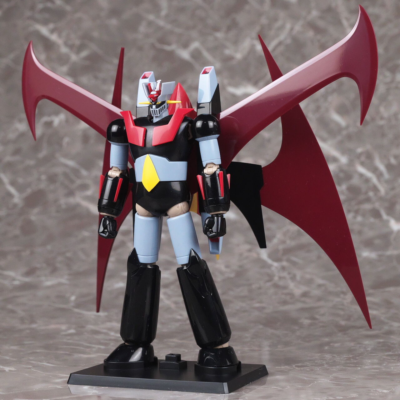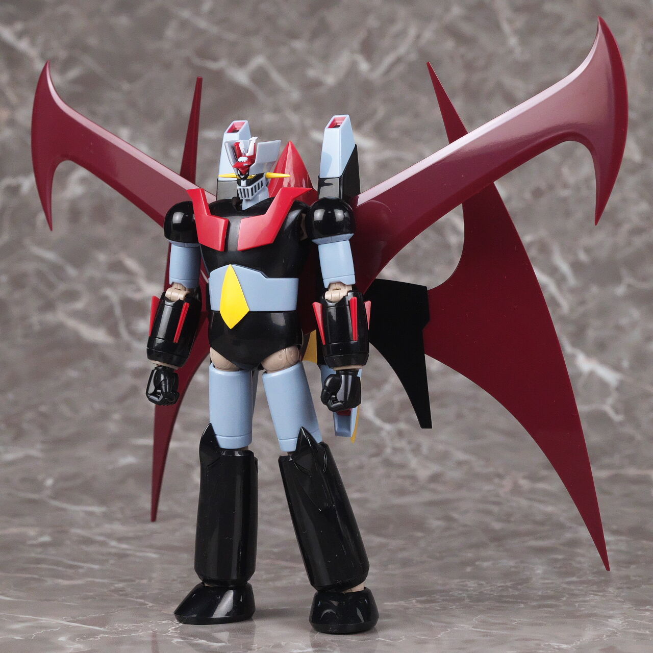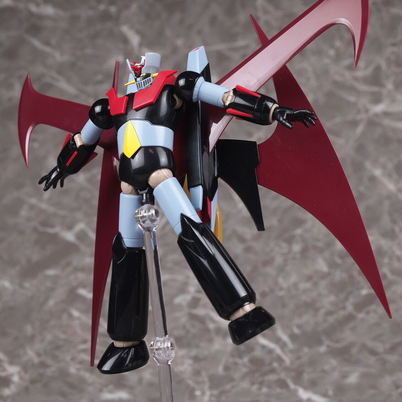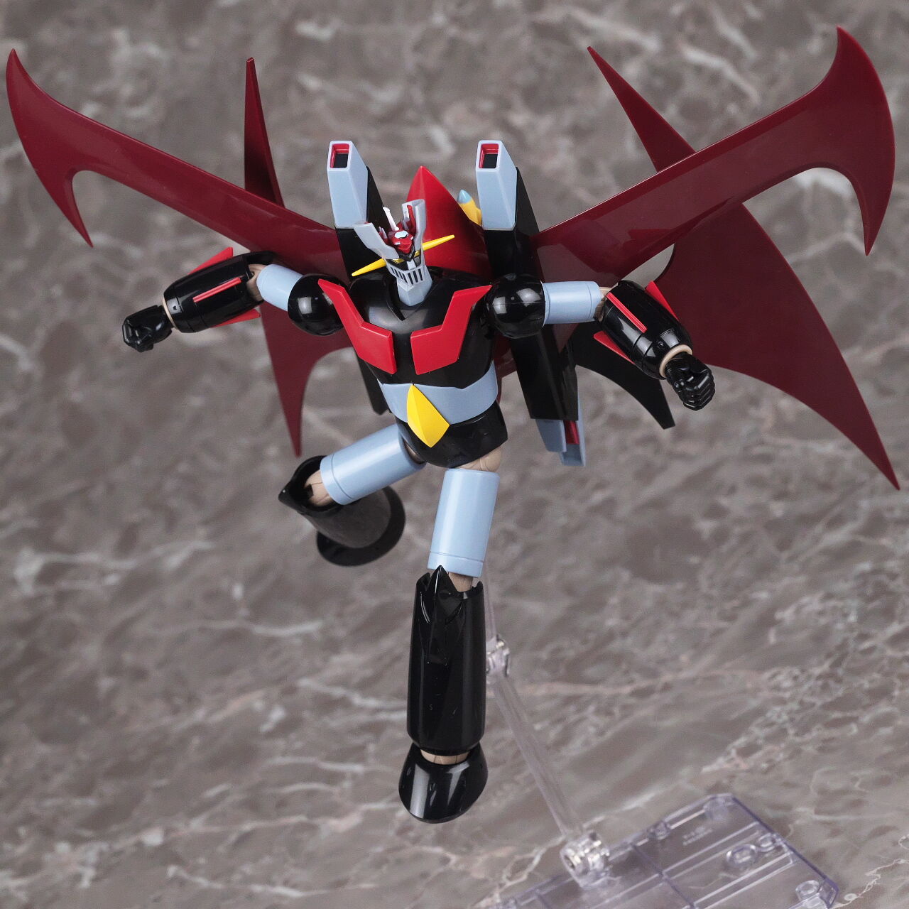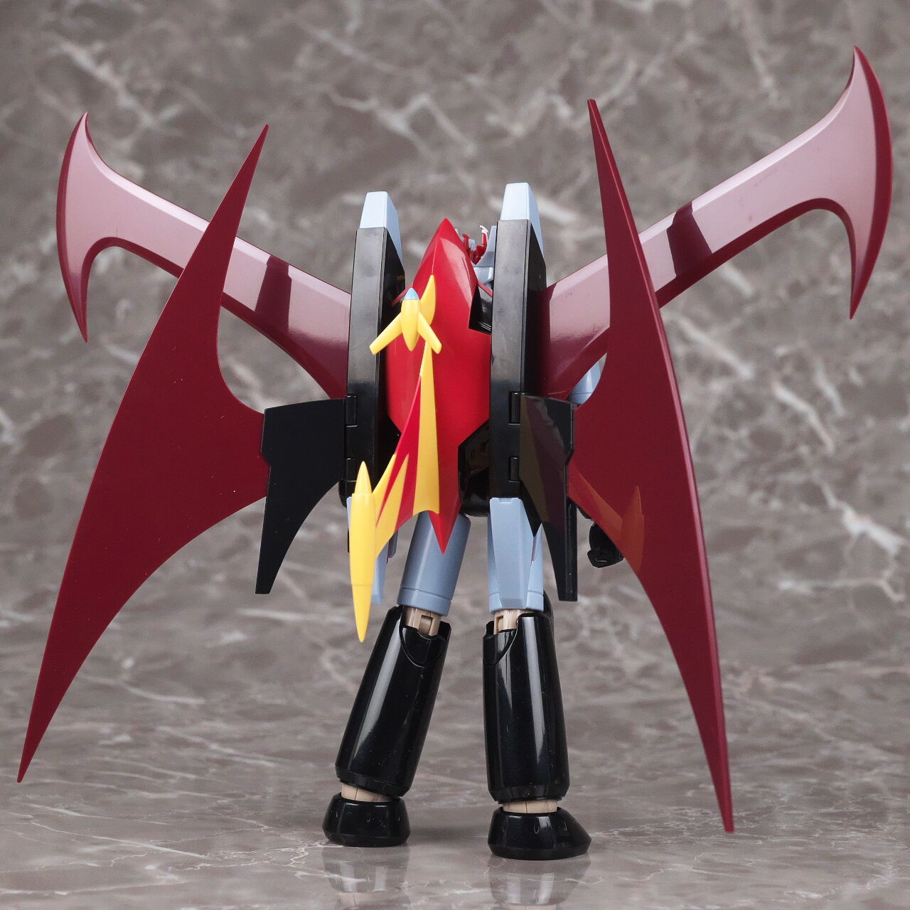 スーパーロボット超合金のマジンガーZとも。マジンガーはこういうメタリック塗装を見慣れているので、今回のグレーは少し