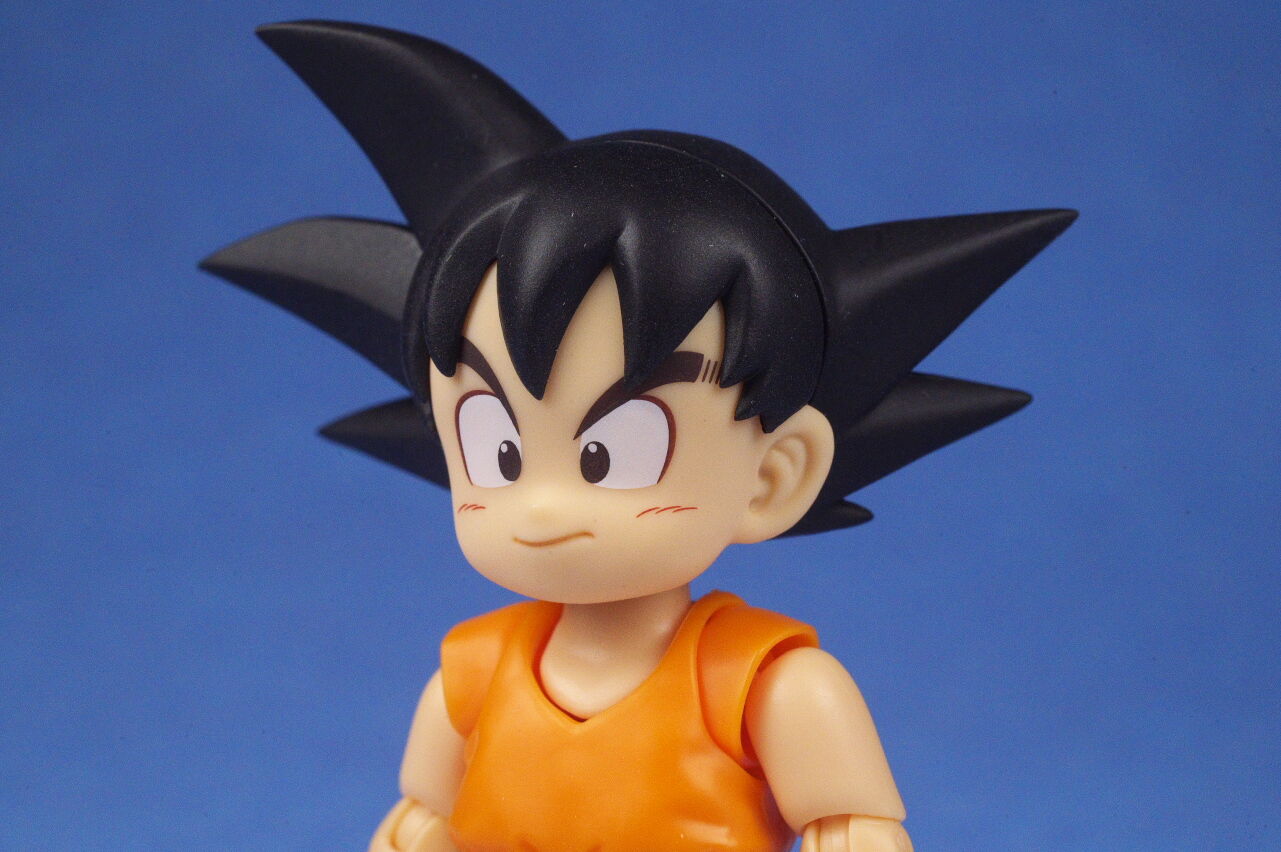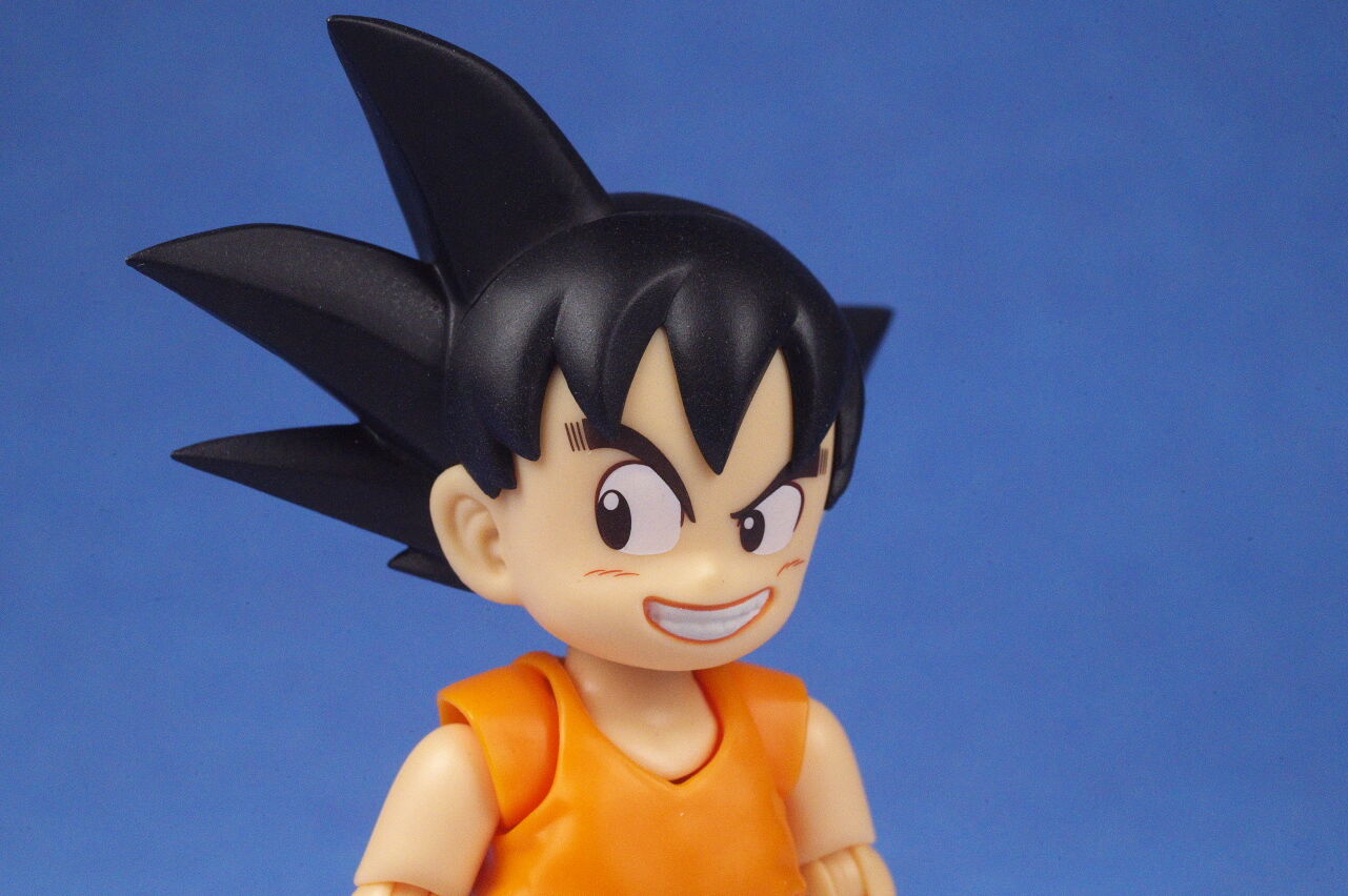 顔。1巻表紙を再現した物なので、一般的な少年期悟空のイメージより可愛らしい顔立ちになってるのが特徴。