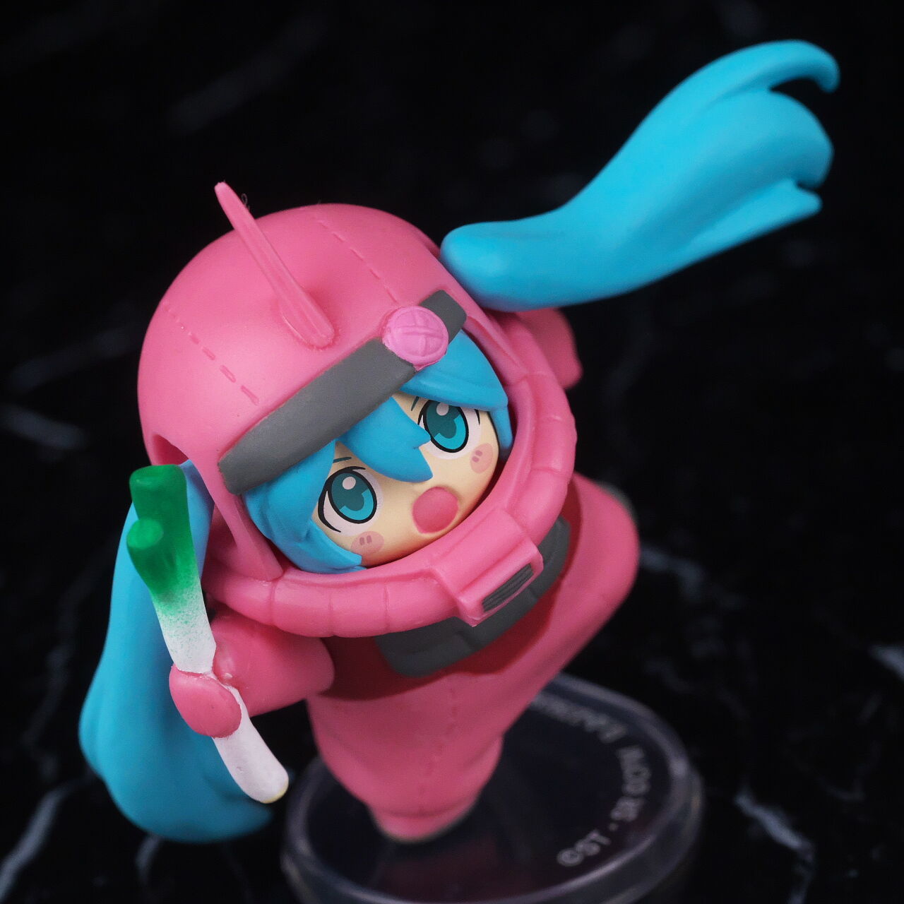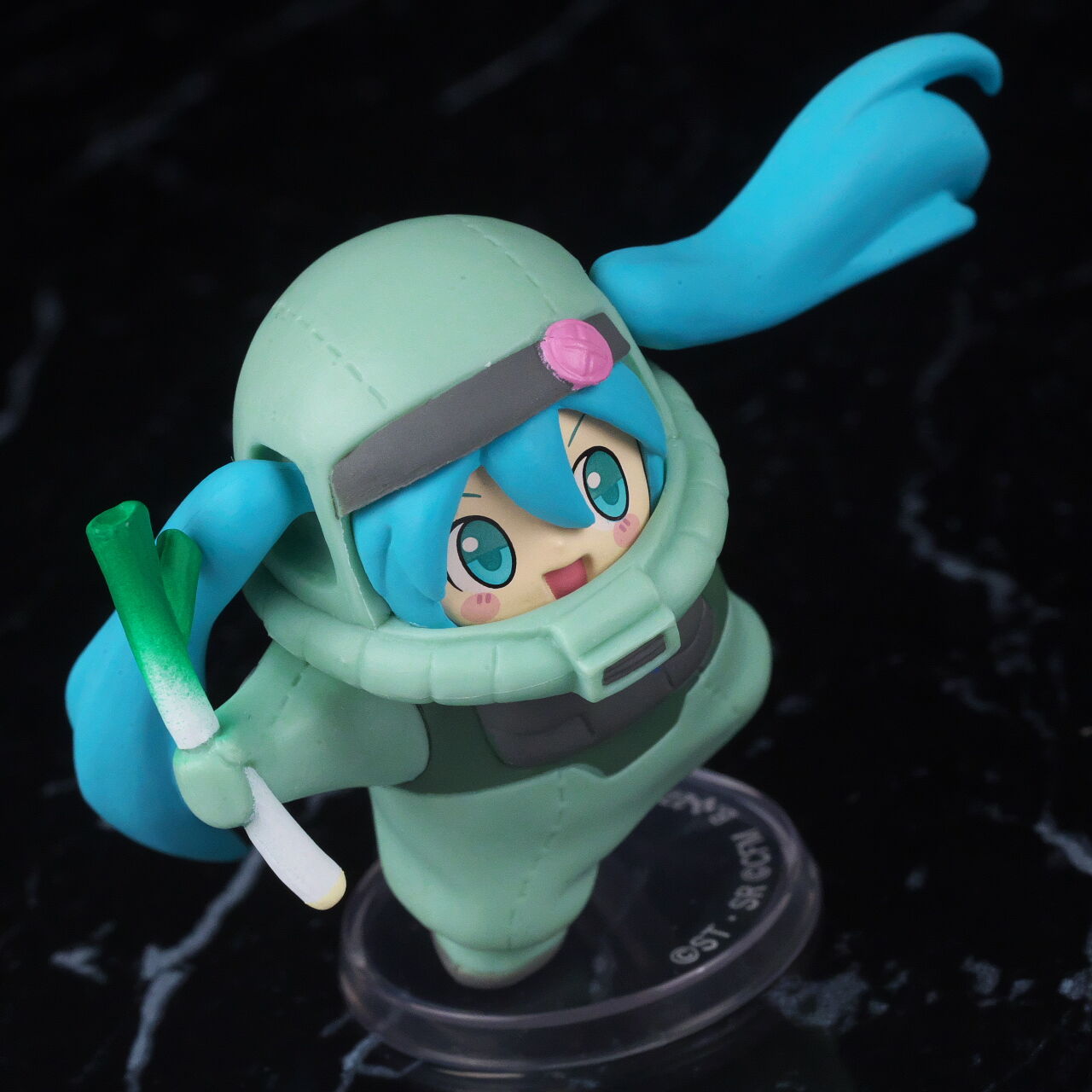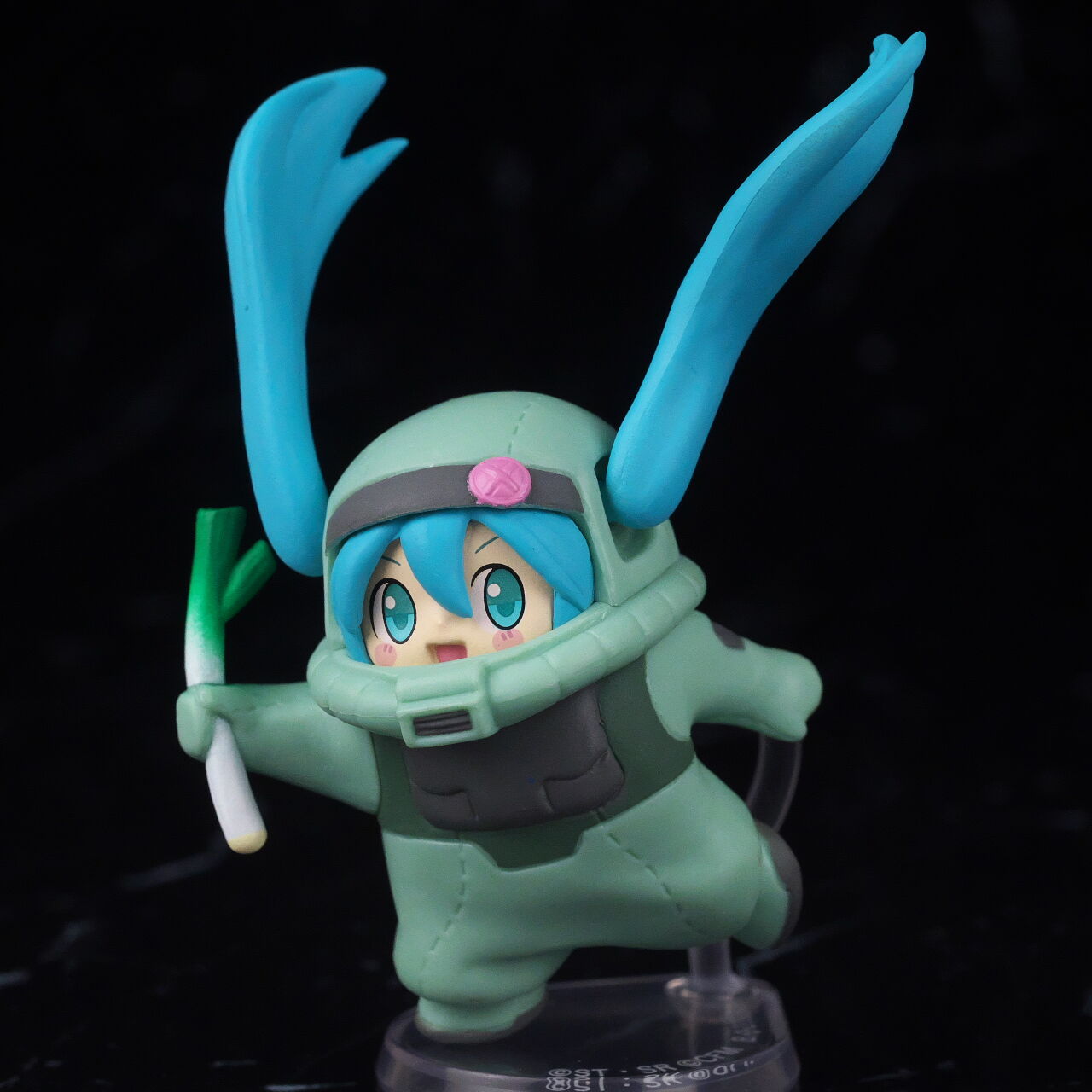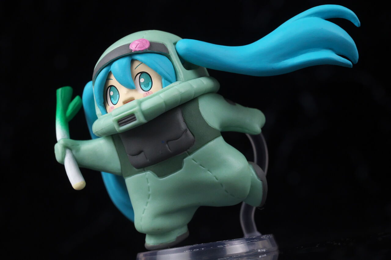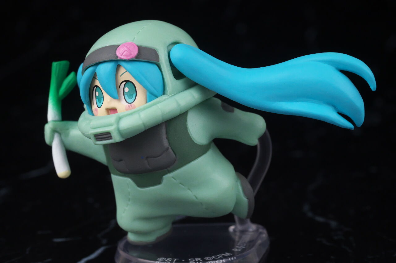 ザクぐるみ[初音ミクVer.]ネギ。「45周年ガンダム×初音ミク スペシャルコラボ」プロジェクトで発売されたガシャポンで価格は1回500円。