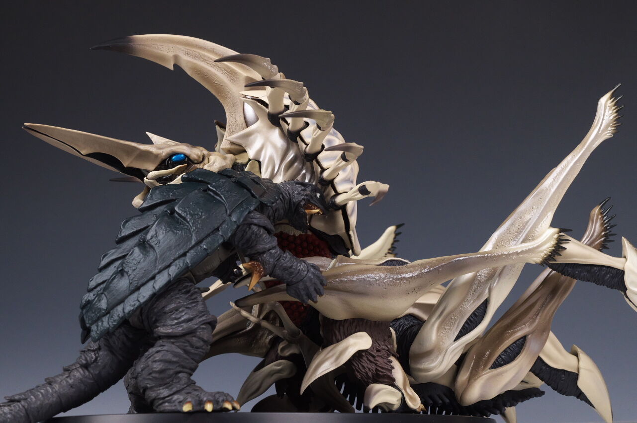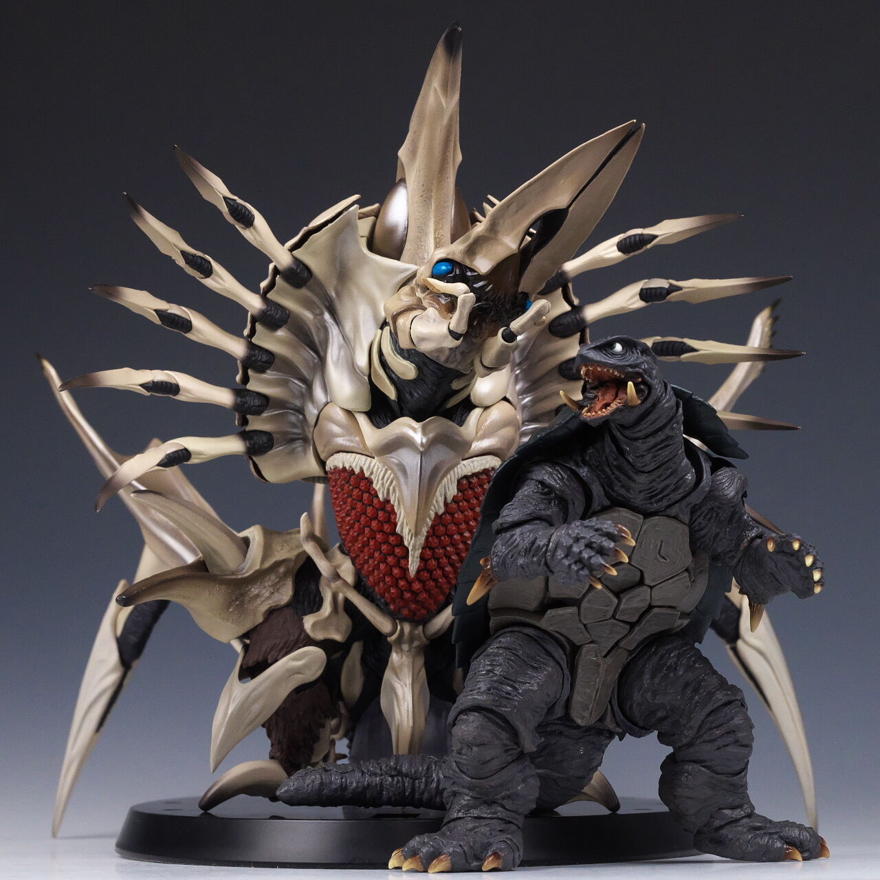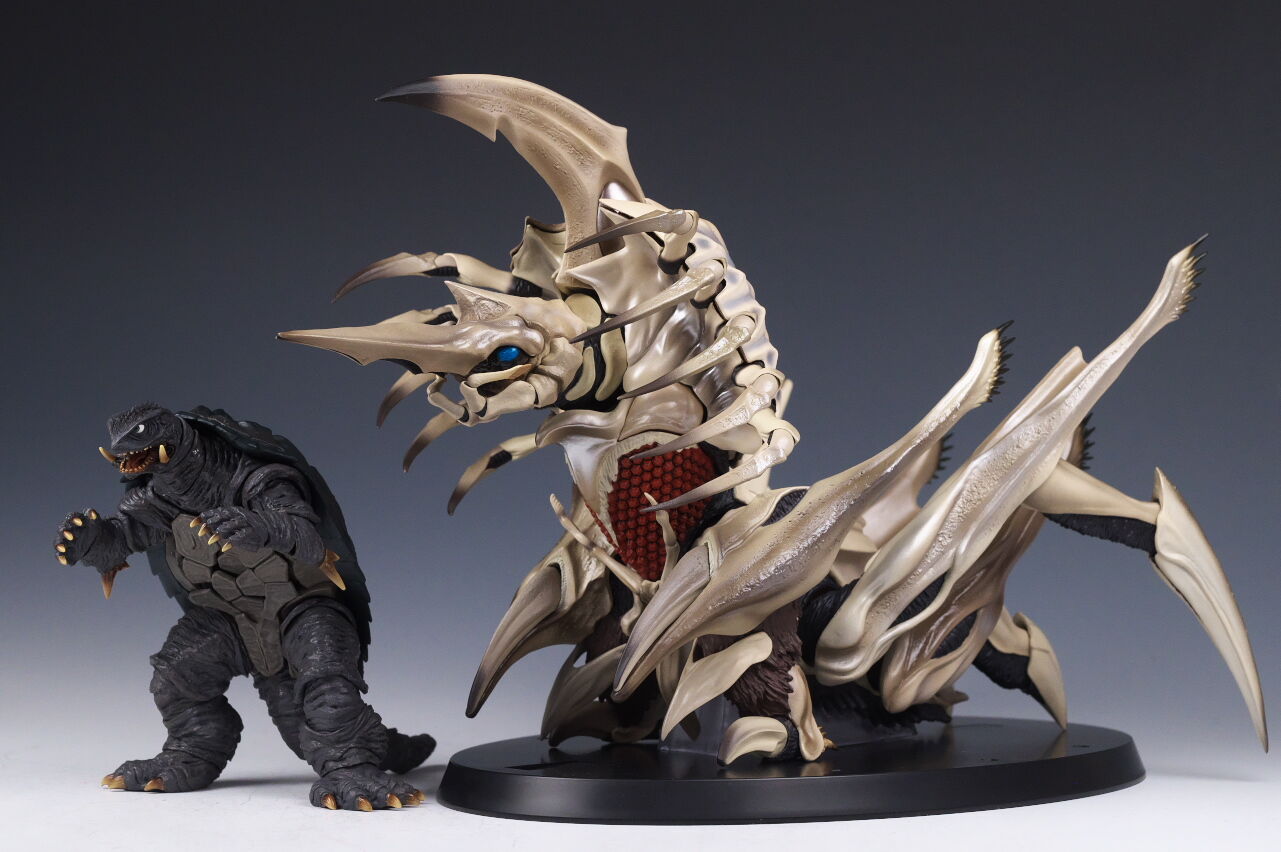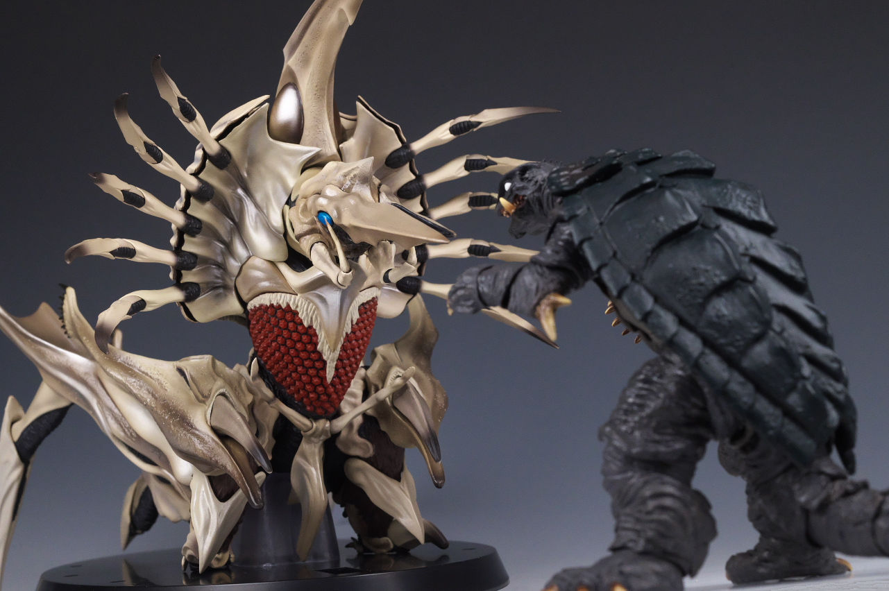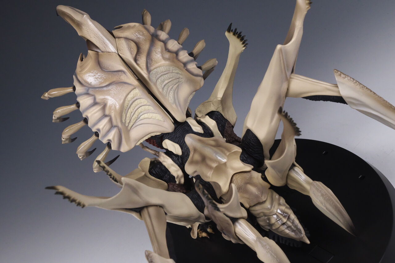 2015年発売のガメラ(1996)から10年近く経ってのまさかの立体化でしたが、そちらと同スケールなのでサイズは非常に大きくSHMシリーズでもトップクラスの迫力で、また昆虫と甲殻類が混ざったような独特なデザインも隅々まで精密に造形され、塗装も色味や質感など生物感がリアルに再現されていて、非常に完成度の高い出来に仕上がってました。