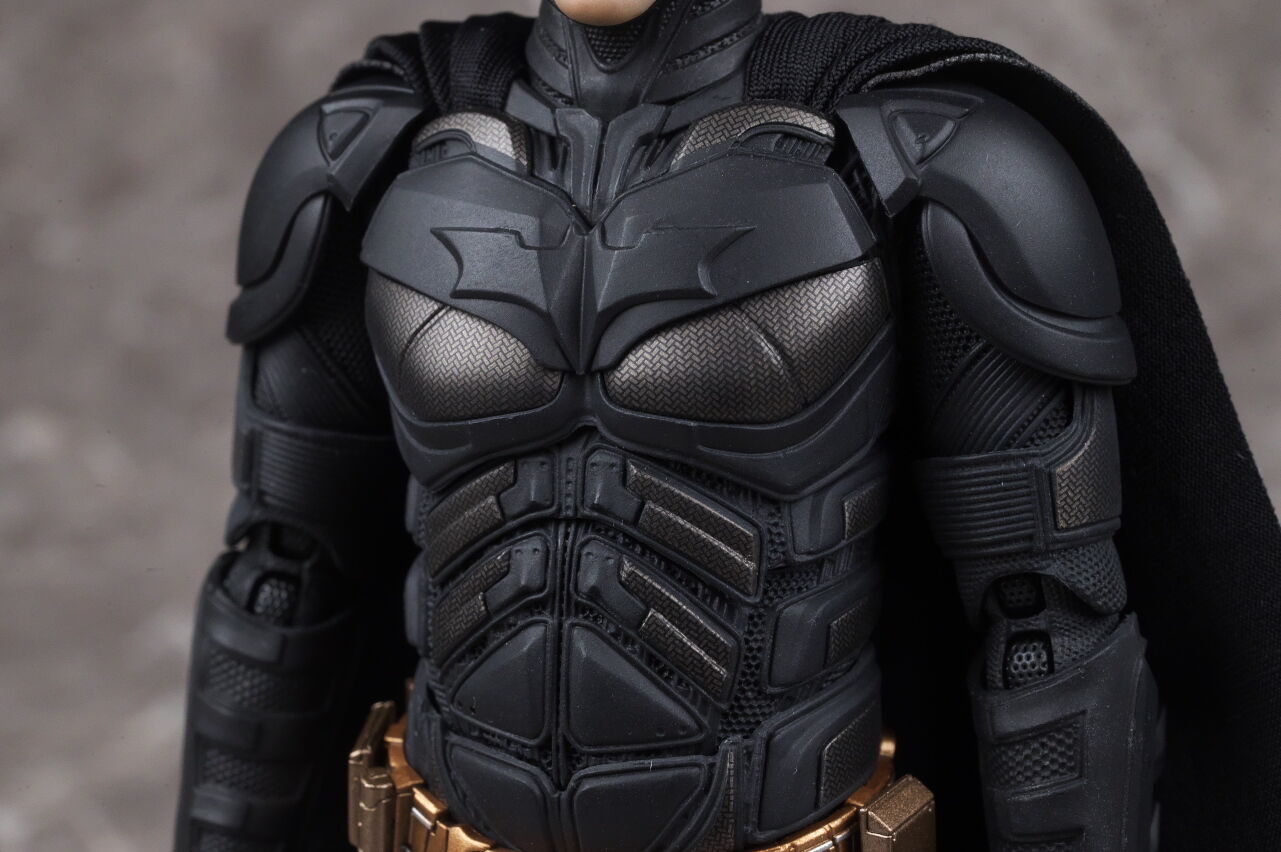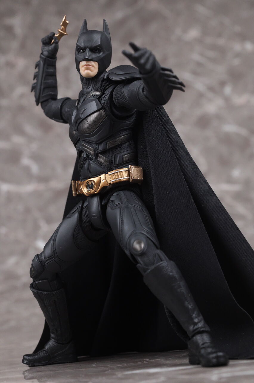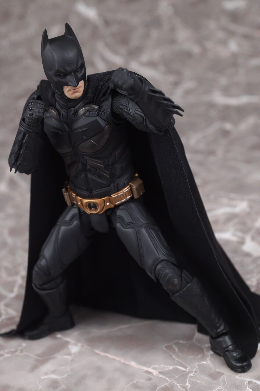 情報通り実物も凄まじい出来で、プロポーションやスーツのディテール、質感、布製マントなど実写のイメージそのままな感じで、付属するクリスチャン・ベールの頭部も1/12とは思えないリアルさに仕上がっており、また可動域も十分かつ、付属品や台座も凝っていて、価格は13000円程でしたが、十分納得のいく出来で満足度はかなり高かったです。