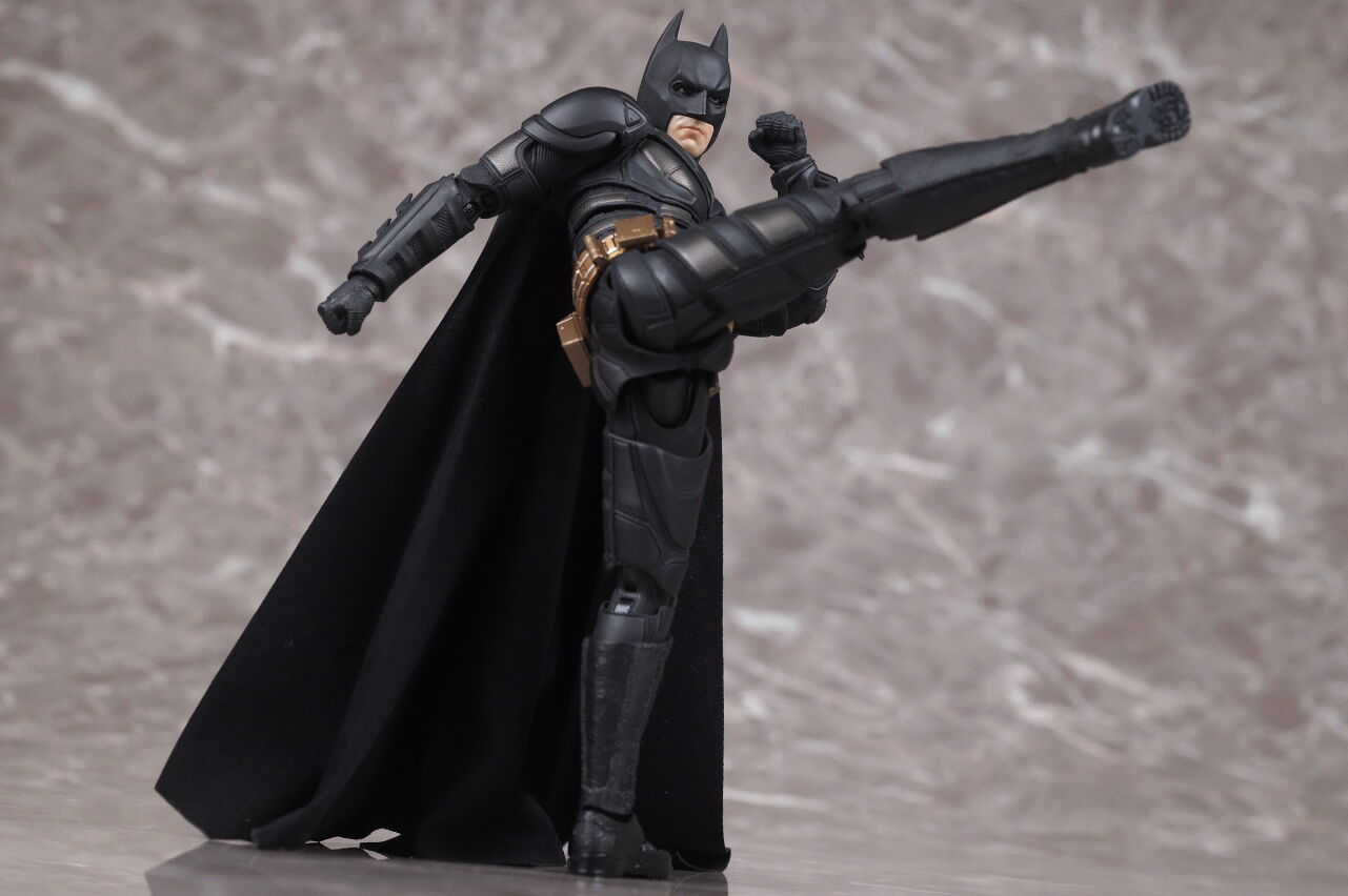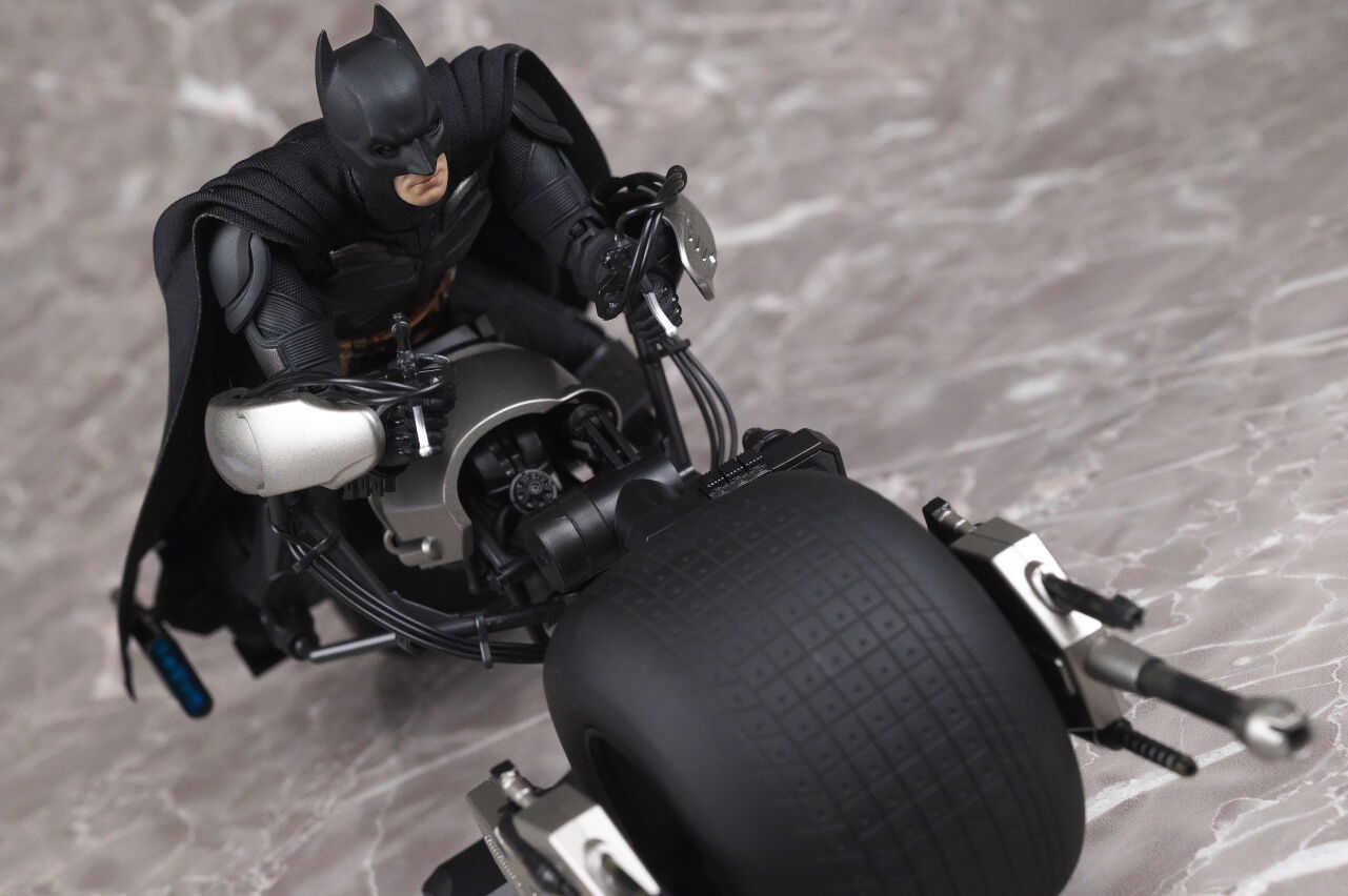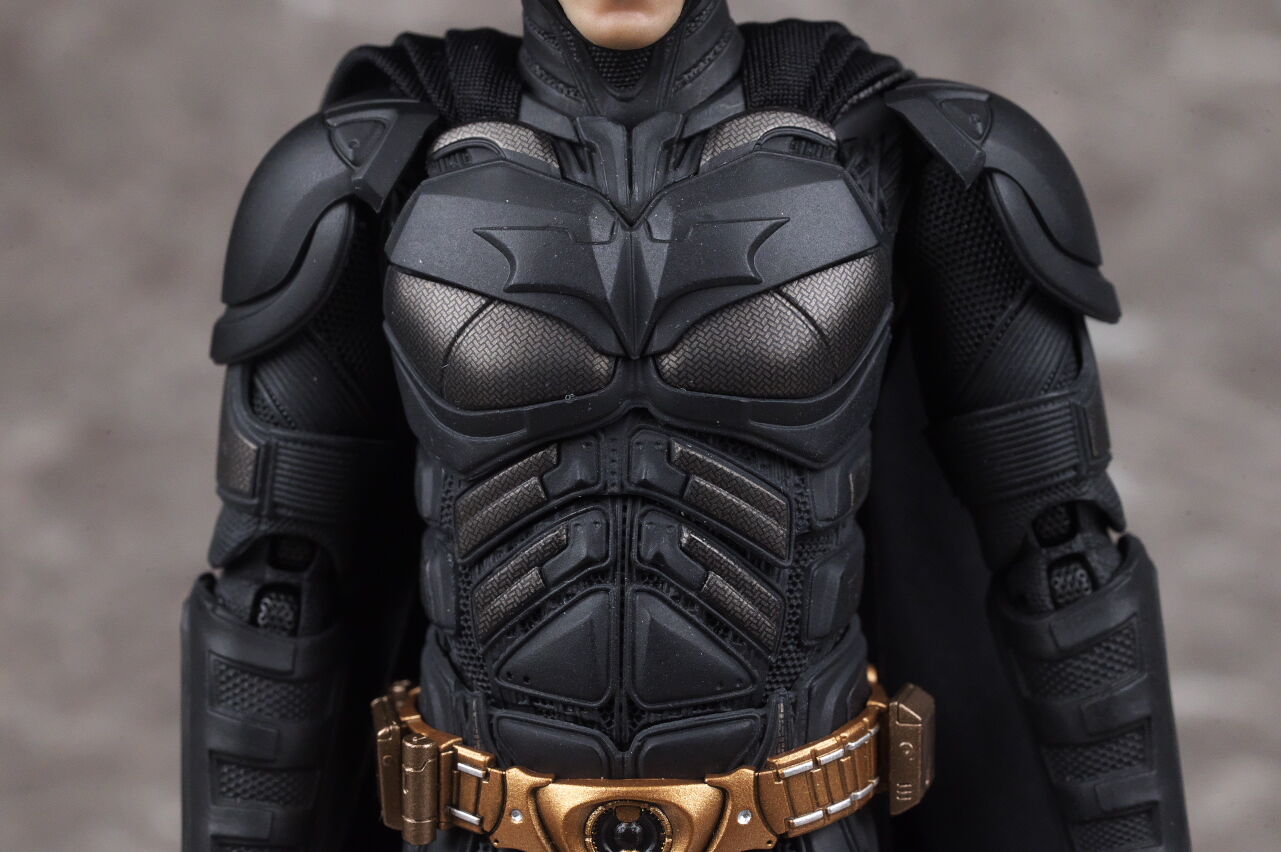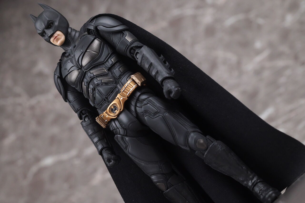 情報通り実物も凄まじい出来で、プロポーションやスーツのディテール、質感、布製マントなど実写のイメージそのままな感じで、付属するクリスチャン・ベールの頭部も1/12とは思えないリアルさに仕上がっており、また可動域も十分かつ、付属品や台座も凝っていて、価格は13000円程でしたが、十分納得のいく出来で満足度はかなり高かったです。