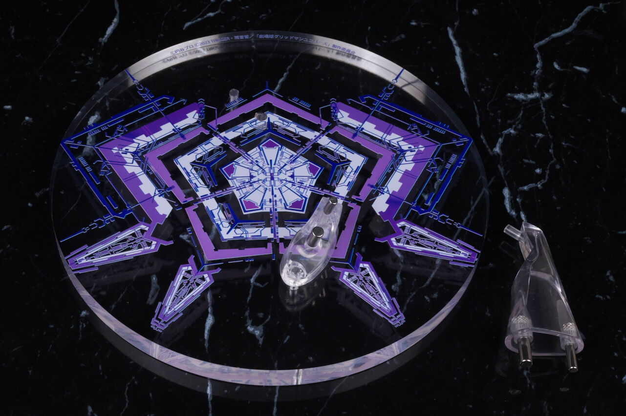 普通の丸型の台座も付属。こちらは厚めのアクリル製で登場シーンのエフェクトがプリント。