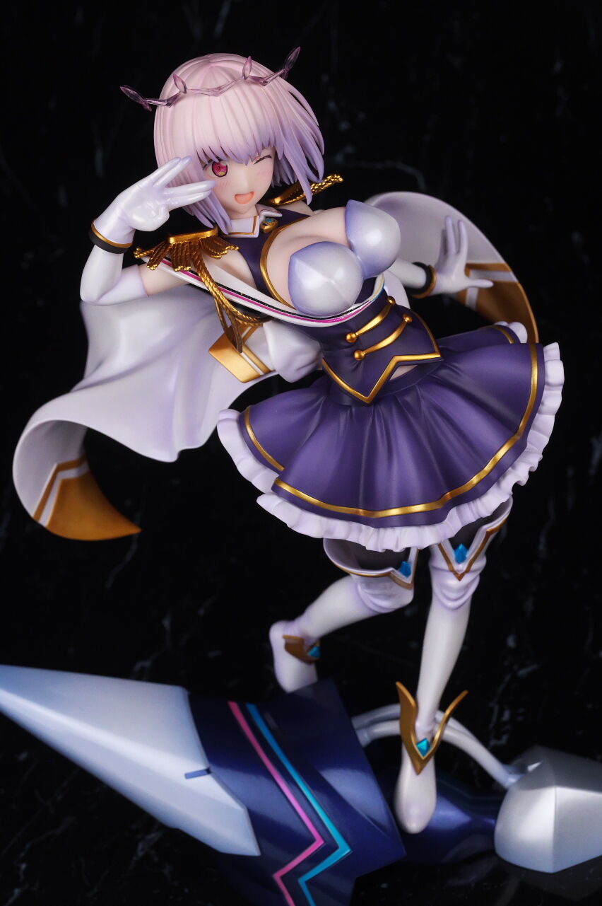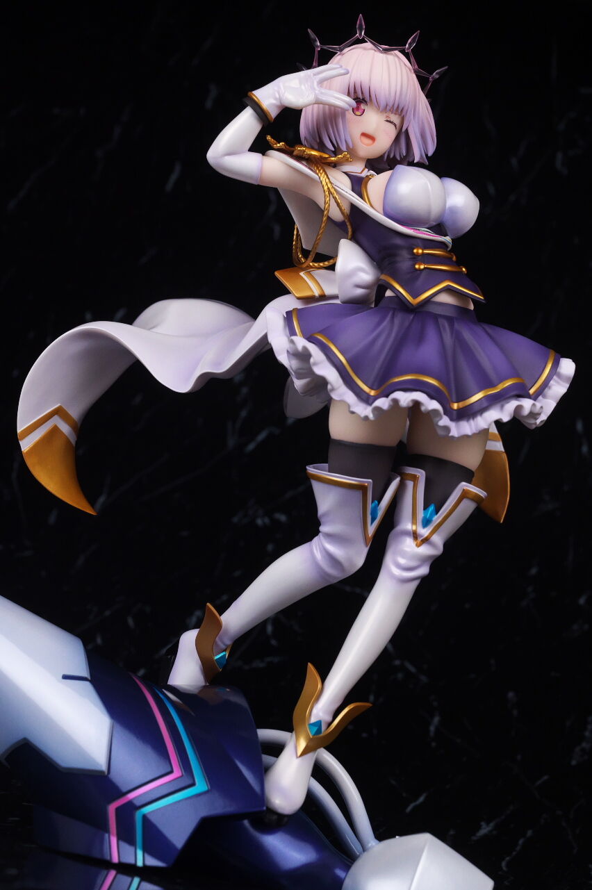 髪造形もシャープかつ、薄紫の淡い色使いなどもイメージ通り。頭のエフェクトはクリアパーツで再現。乗せてるだけなので、外して飾ることも可能。なお通常版は両目を開けて口を閉じた微笑み顔で、限定版と表情を交換することも可能。