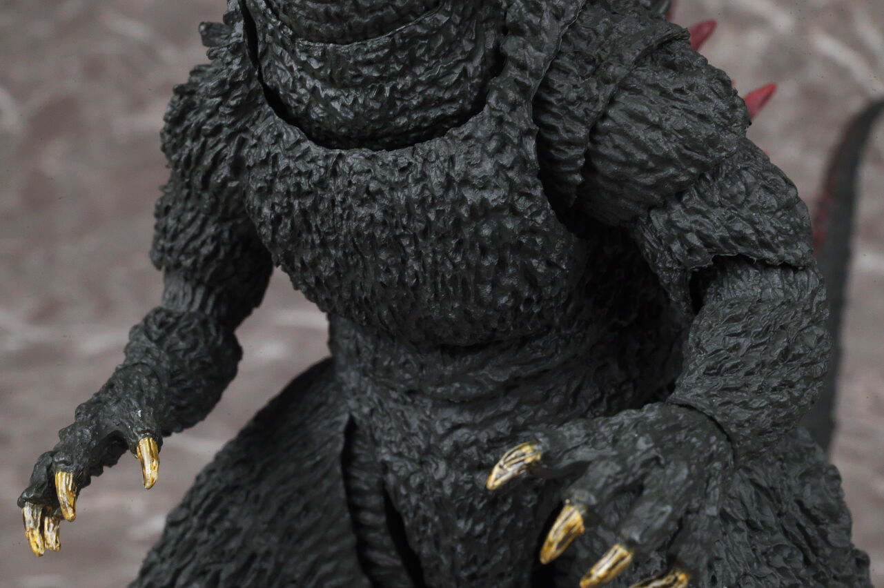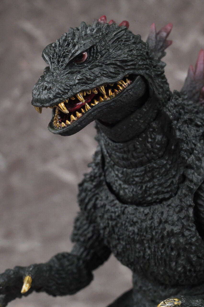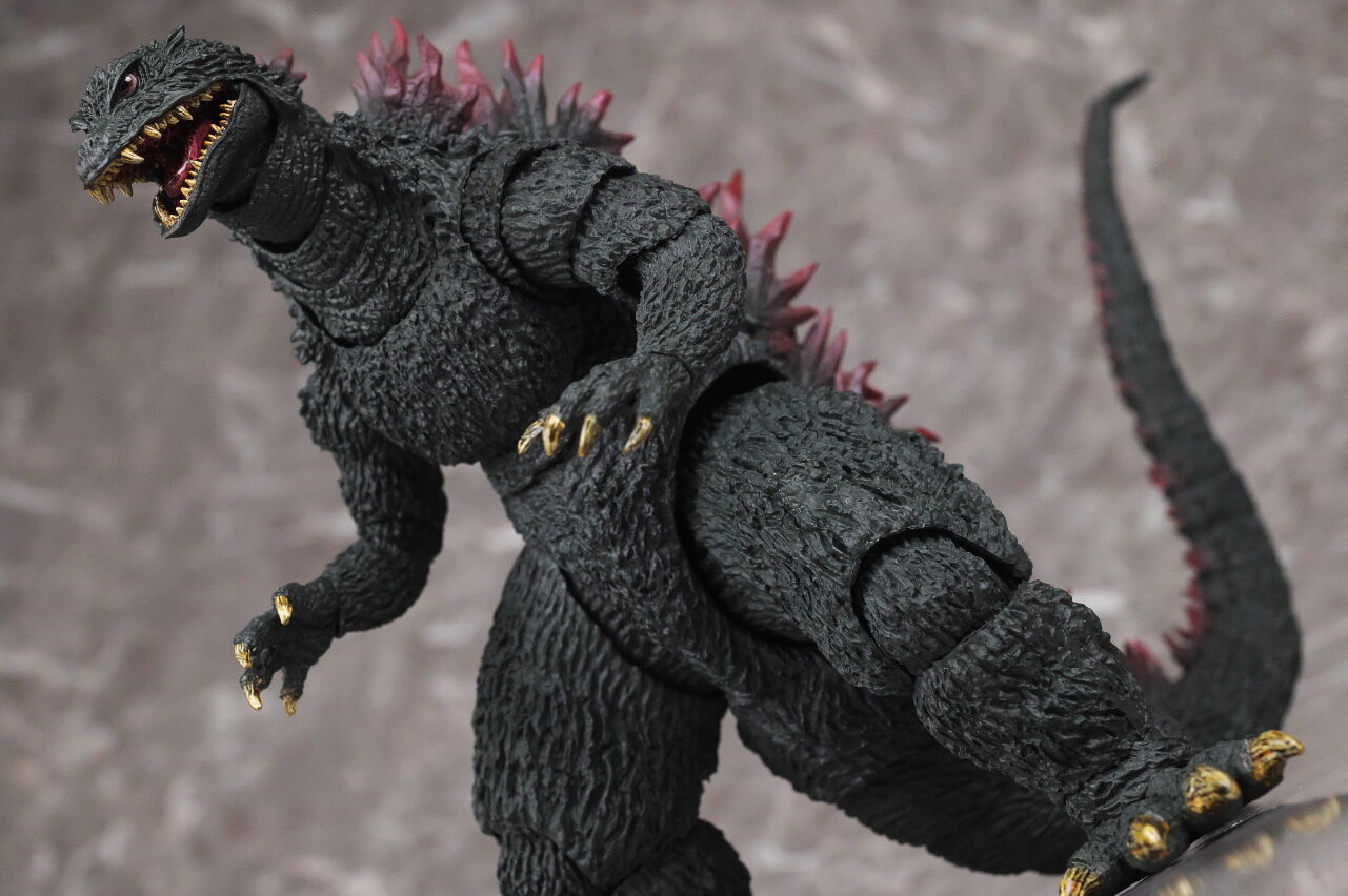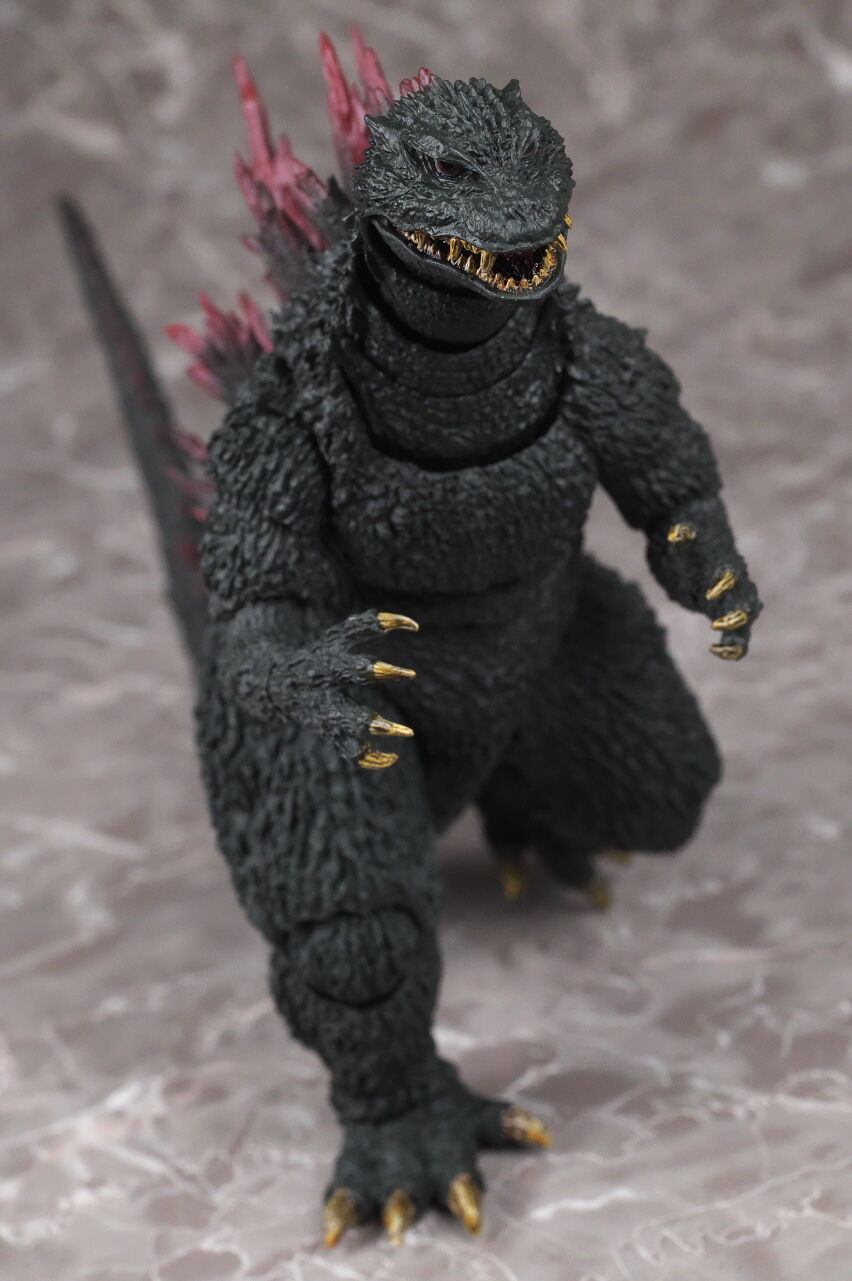 造形は完全新規なので、プロポーションや顔立ちなど非常に劇中に近く、皮膚の隅々まで細かく造形塗装されており、また今回は可動も更に改良されていて、同じゴジラ2000でも10年以上前に発売されたミレニアムよりかなり進化を感じられる出来になってました。
