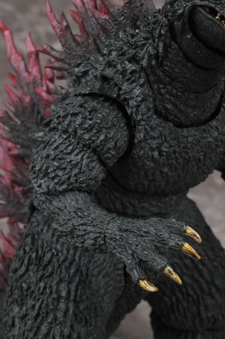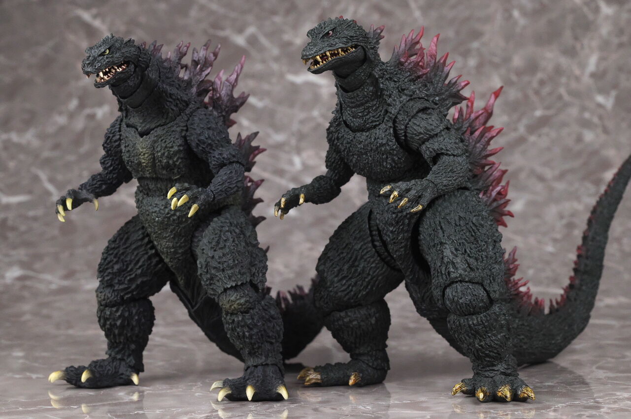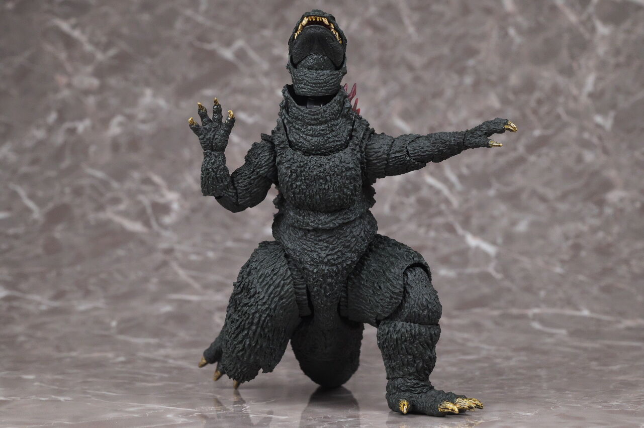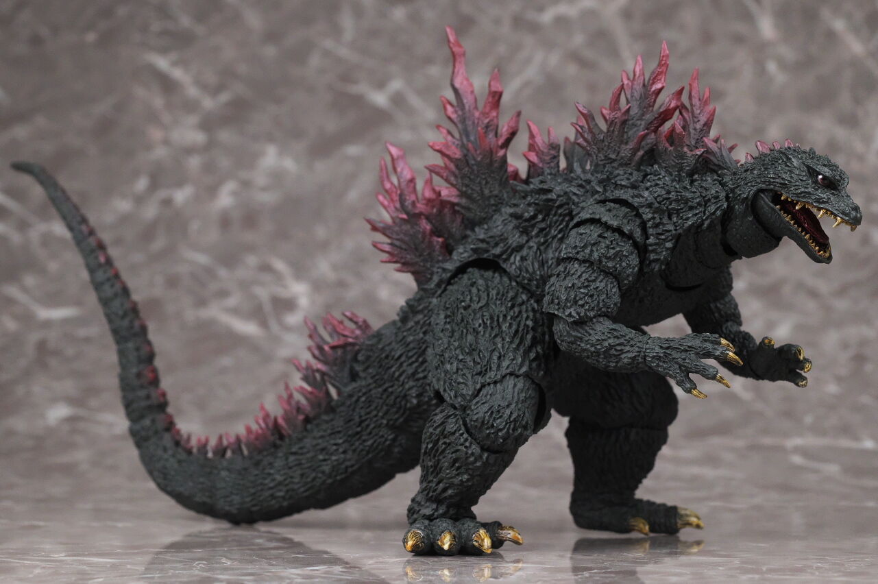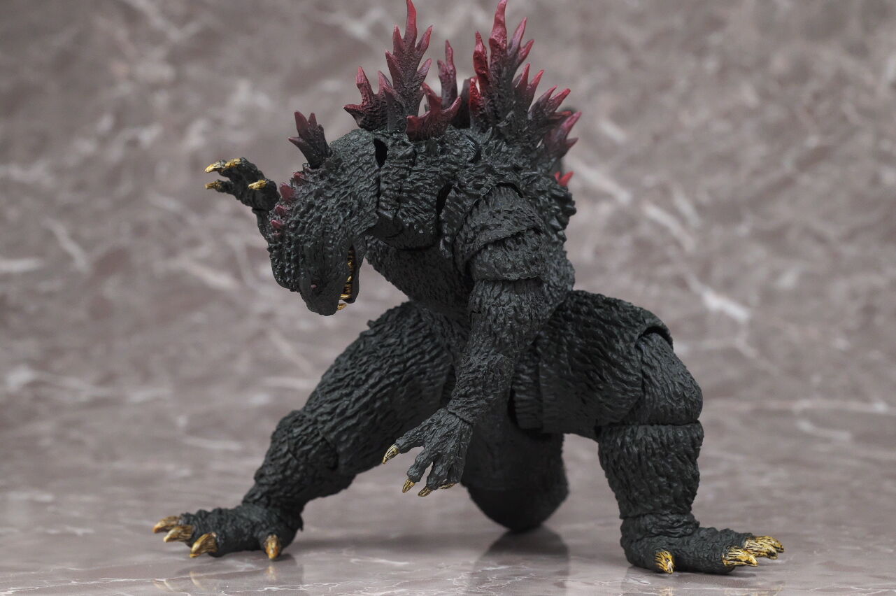 造形は完全新規なので、プロポーションや顔立ちなど非常に劇中に近く、皮膚の隅々まで細かく造形塗装されており、また今回は可動も更に改良されていて、同じゴジラ2000でも10年以上前に発売されたミレニアムよりかなり進化を感じられる出来になってました。