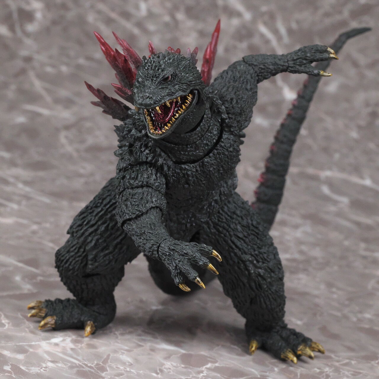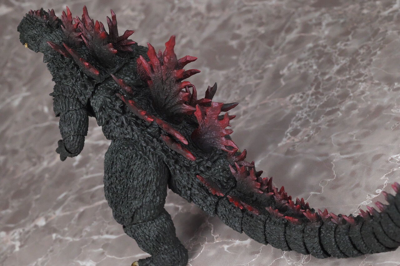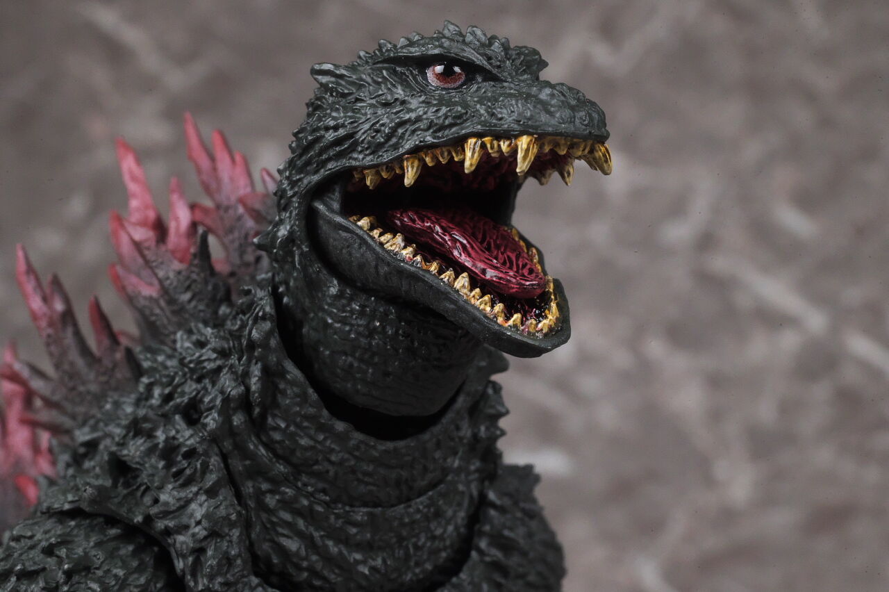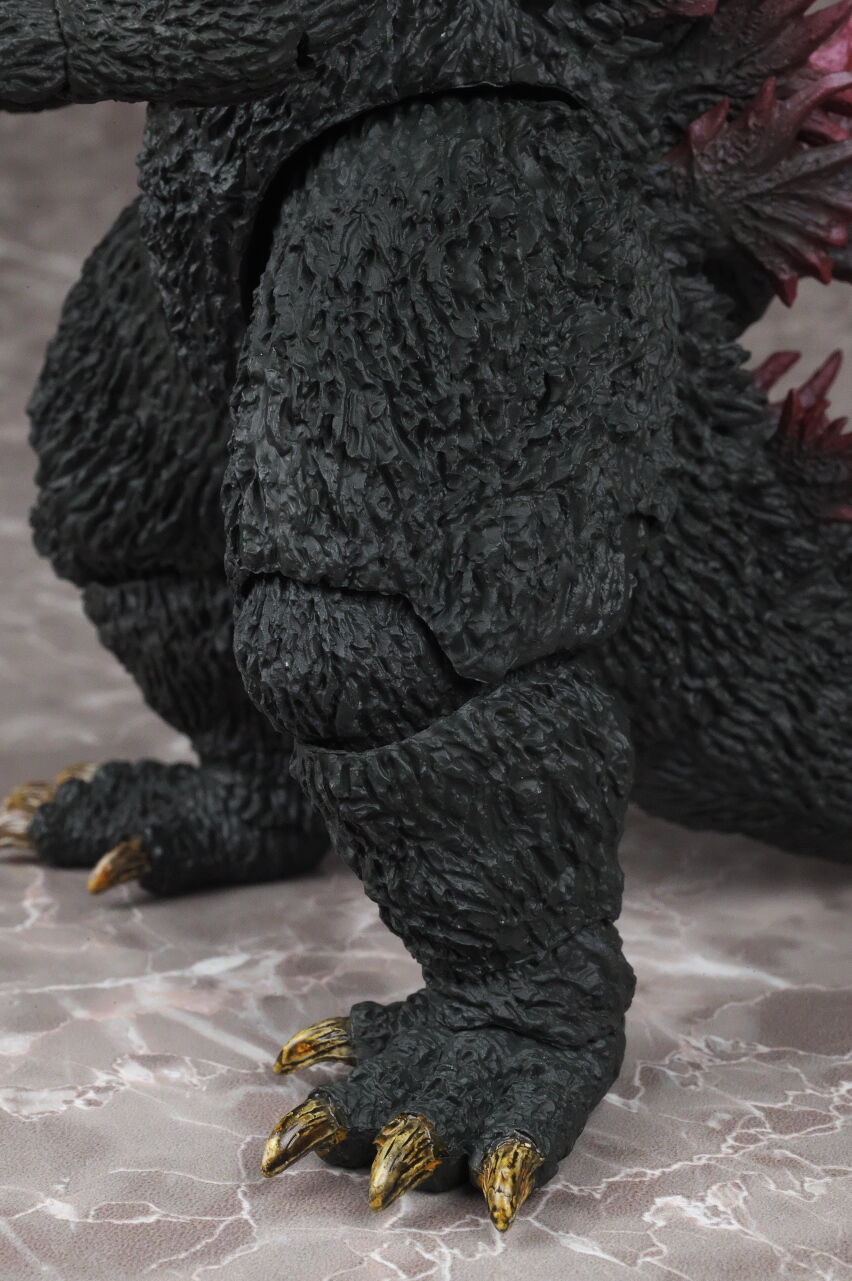 造形は完全新規なので、プロポーションや顔立ちなど非常に劇中に近く、皮膚の隅々まで細かく造形塗装されており、また今回は可動も更に改良されていて、同じゴジラ2000でも10年以上前に発売されたミレニアムよりかなり進化を感じられる出来になってました。