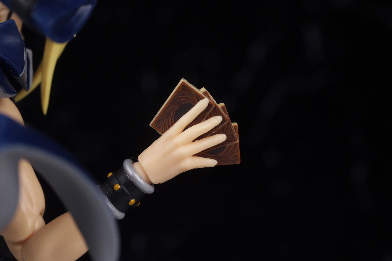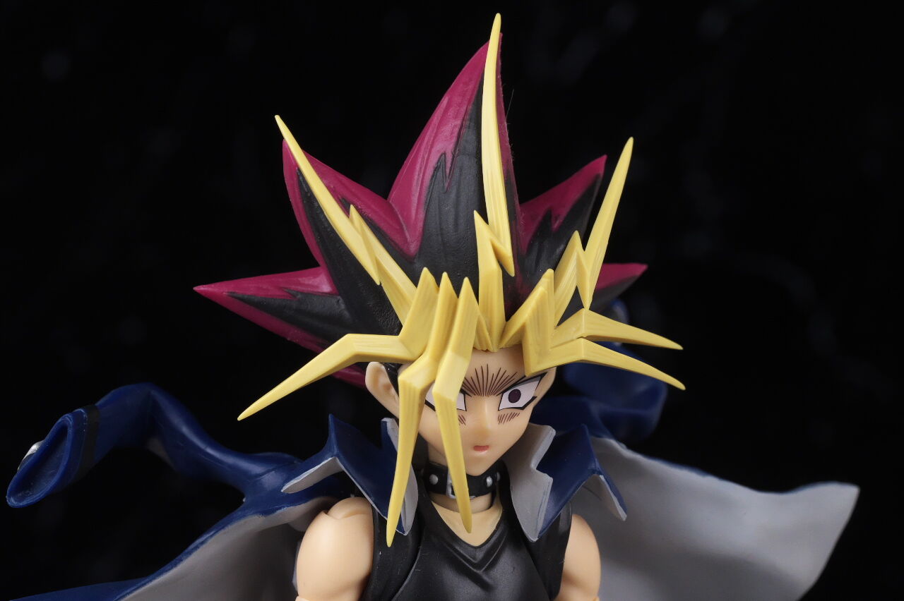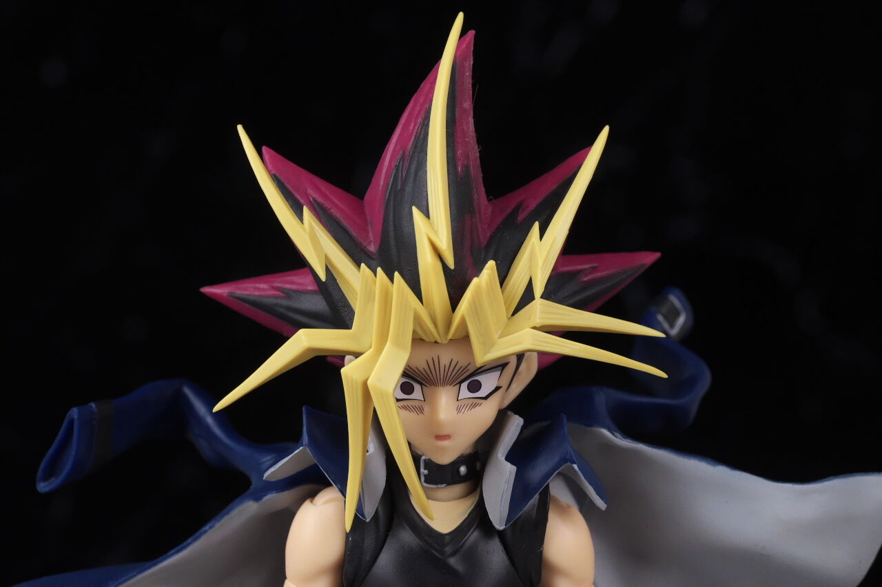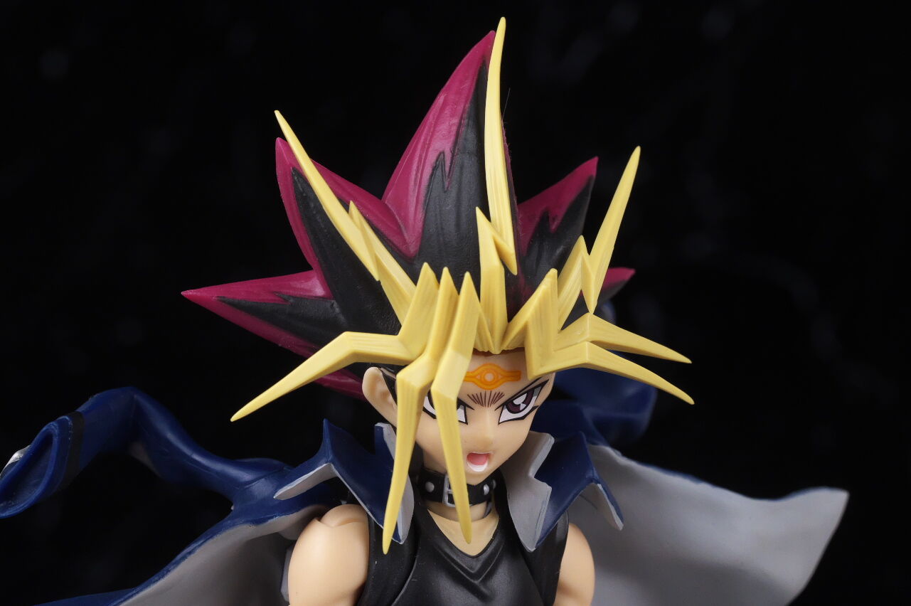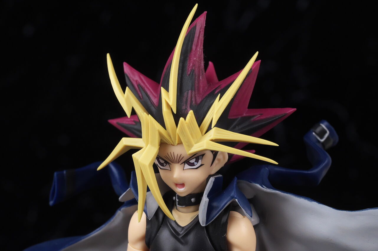 闇遊戯らしいクールな微笑み顔。通常顔同様こちらも出来は良好。マント程ではないものの、前髪が普段より若干外れやすかった点は少し気になりました。