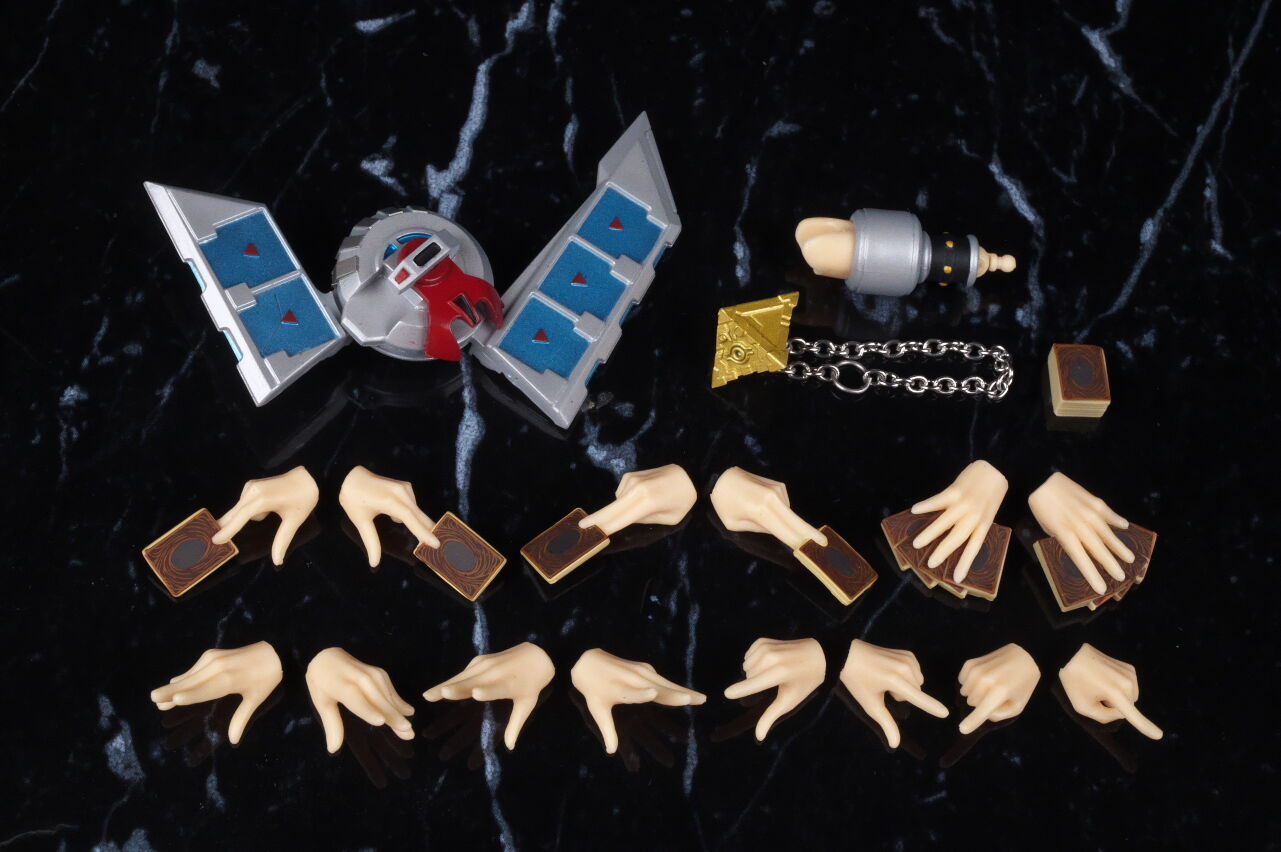 デュエルディスクの可動ギミックも再現されており、またデッキも別パーツで抜き差しが可能。
