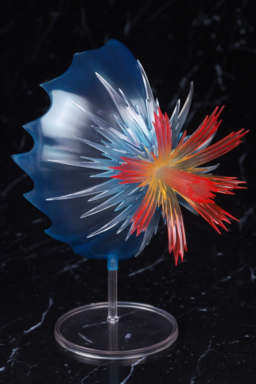 「聖なるバリア-ミラーフォース-」エフェクトパーツ。こちらは3パーツのエフェクトを組み立て、専用台座で浮かせて使用。