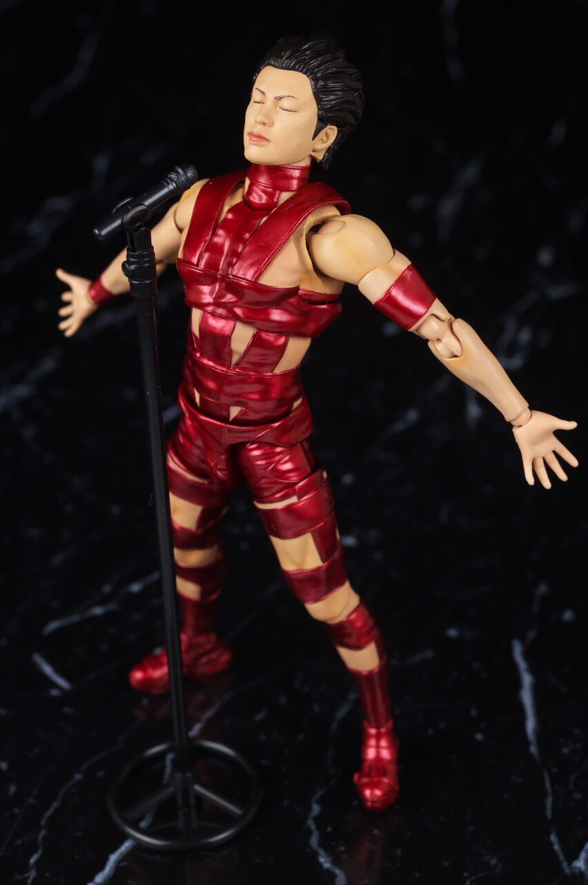 ノーマル版と変わっているのは髪と衣装の色、星型ステージが無くなりマイクスタンドが追加された点のみなので、大きな違いは無いですが、衣装がメタリックレッドになったことで見た目の派手さが増しており、以前と同じく可動なども良好、関節がギチギチな点と退色の不安はちょっと気になりますが、概ね満足のいく出来になってました。