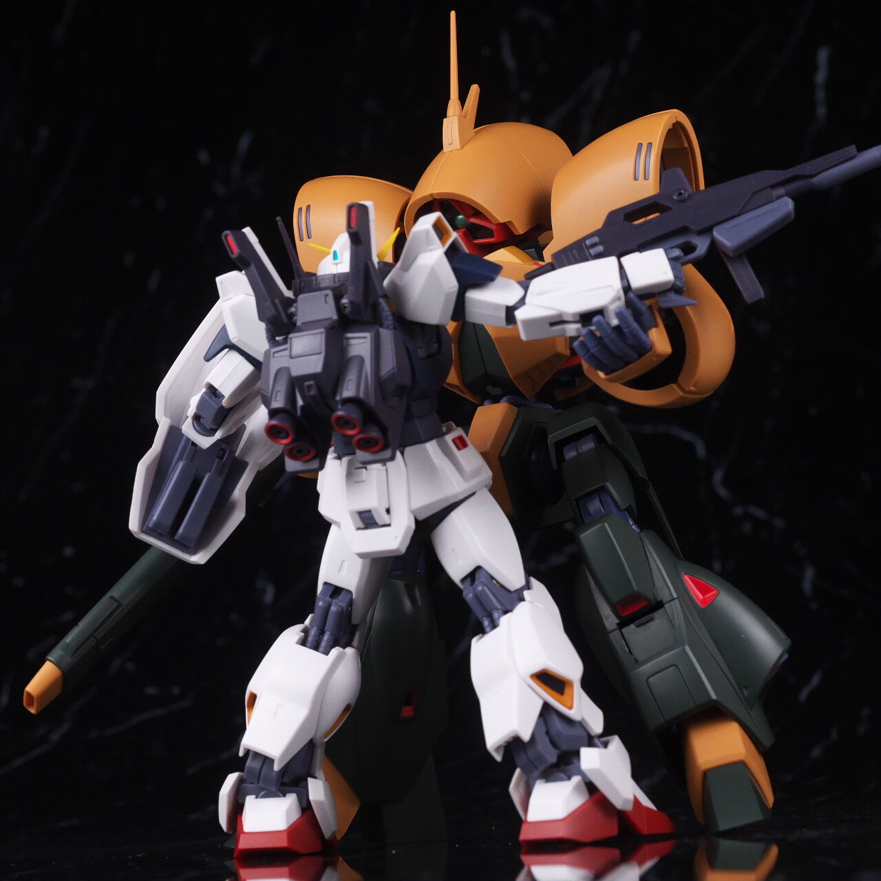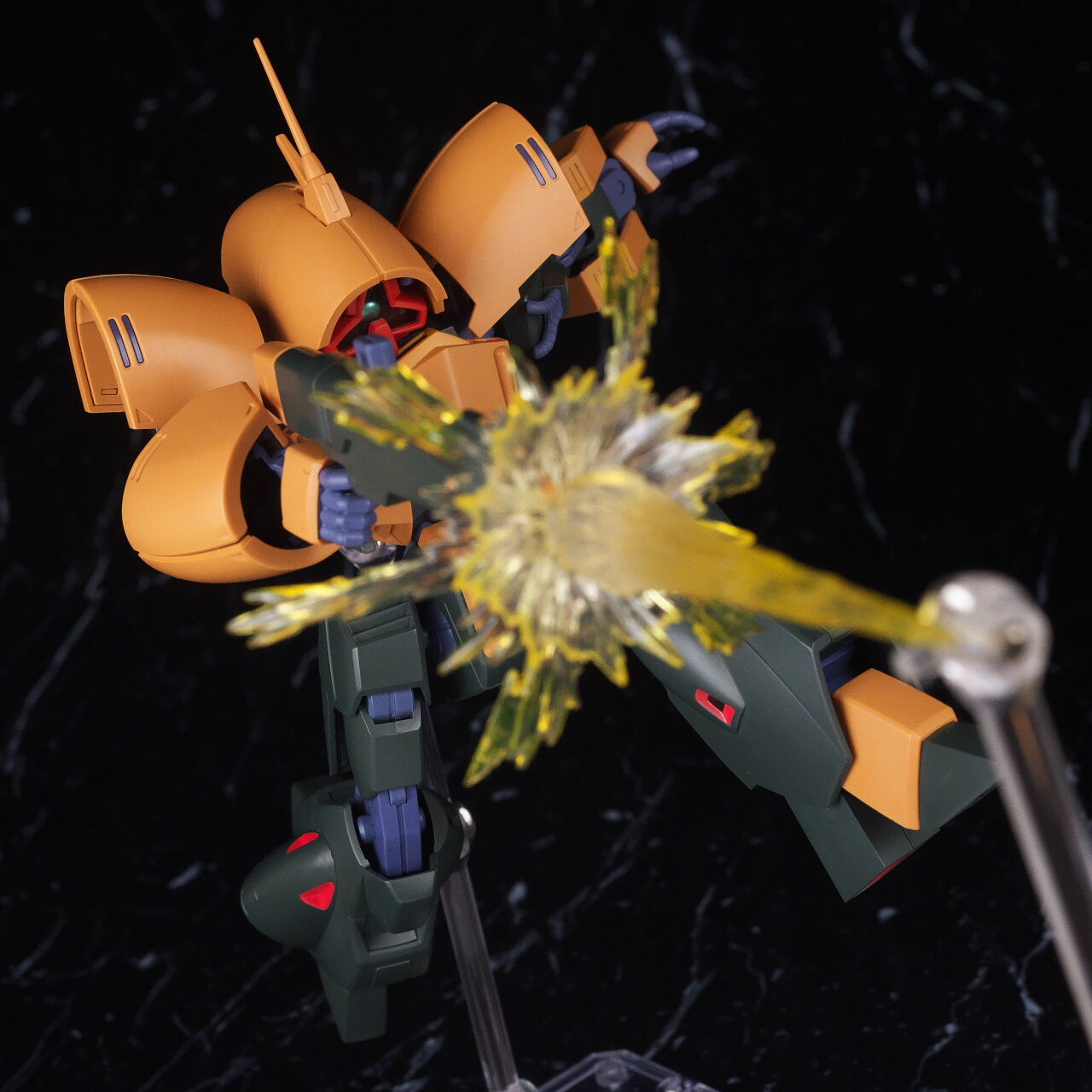 ライフルは大きめですが、関節がしっかりしているので肩が負けたりはなかったです。他商品のバーニアエフェクトなども使用可。