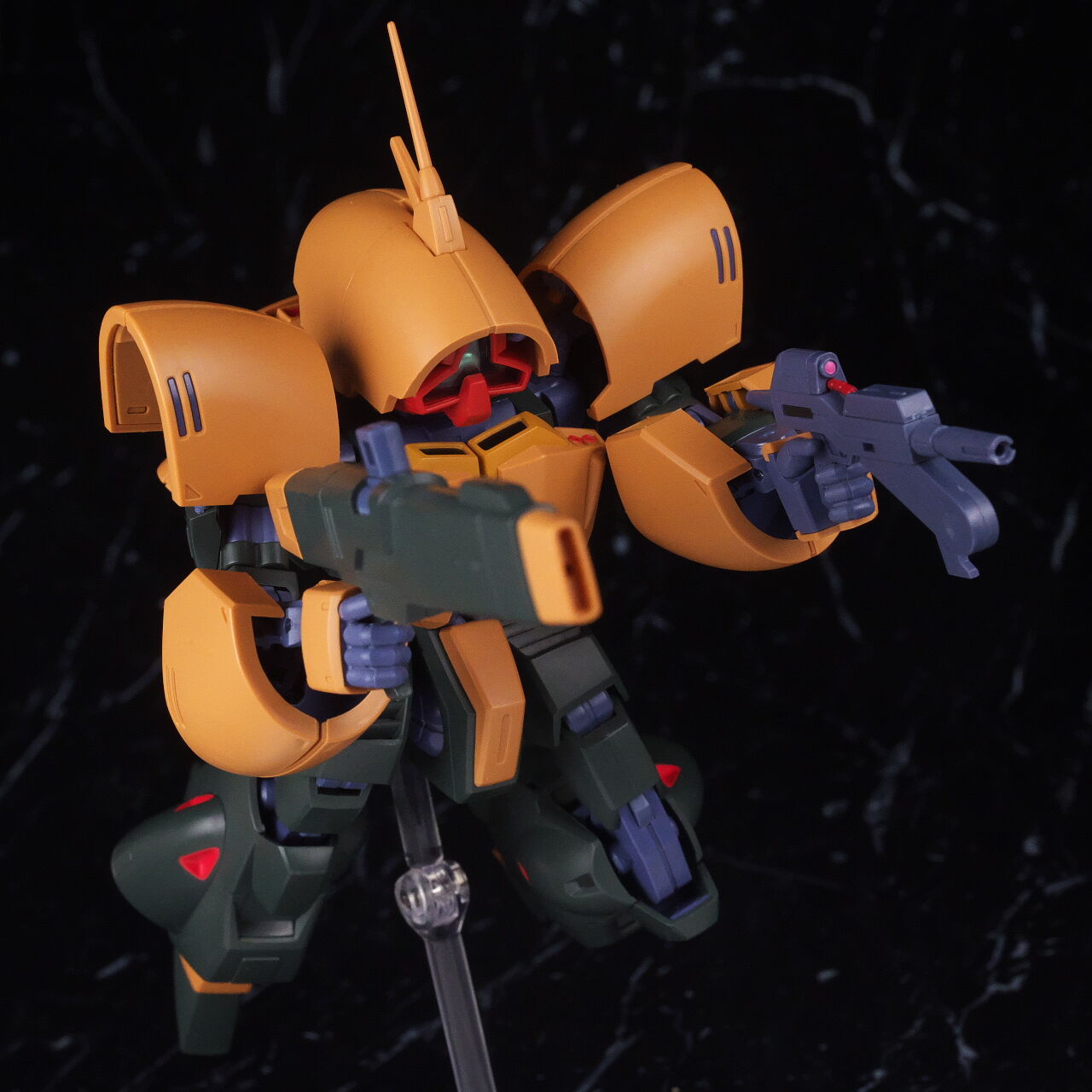 可動は可変機ながら首腰ともにしっかりスイング出来、肩も水平近くまで上げることが可能。膝肘も十分曲げることが可能でした。