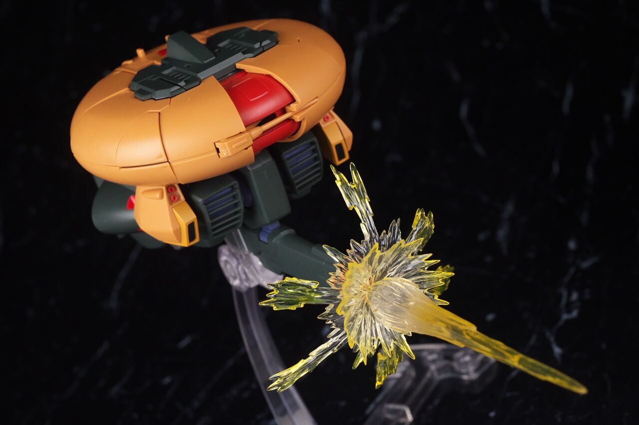 MA形態全体。コンパクトだからか作中に合わせてか箱にはこちらの状態で入ってました。作中通りサイズは結構大きく、円盤のフォルムなども綺麗で、イメージ通りの造形。