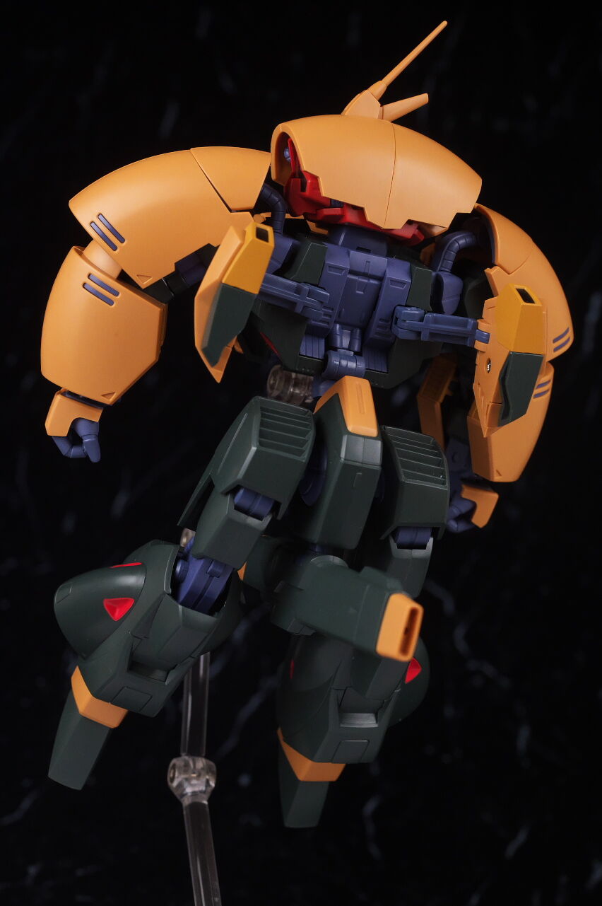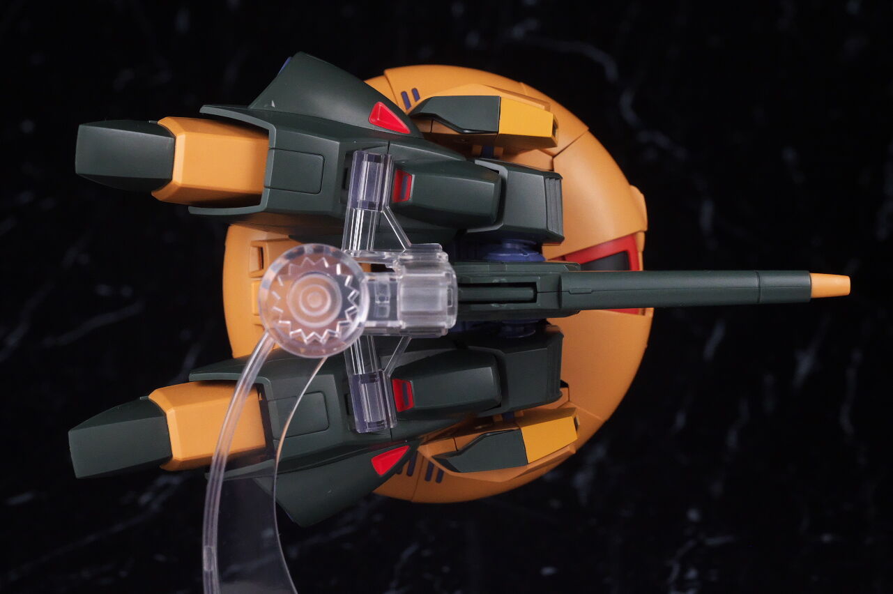 裏側。劇中でも裏側がよく映ってましたが、こちらも頭部など綺麗に収納されていて違和感のない見た目でした。スタンドジョイントは脛のカバーを開いて差し込むMA形態専用の物が付属し、安定した展示が可能。