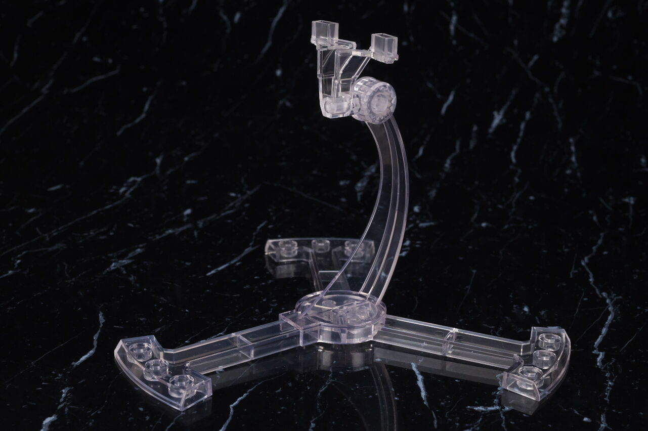 台座は専用の物が付属。支柱の本体接続部は数段階の角度調節が可能で、台座の穴には魂ステージの支柱を差し込み可能。