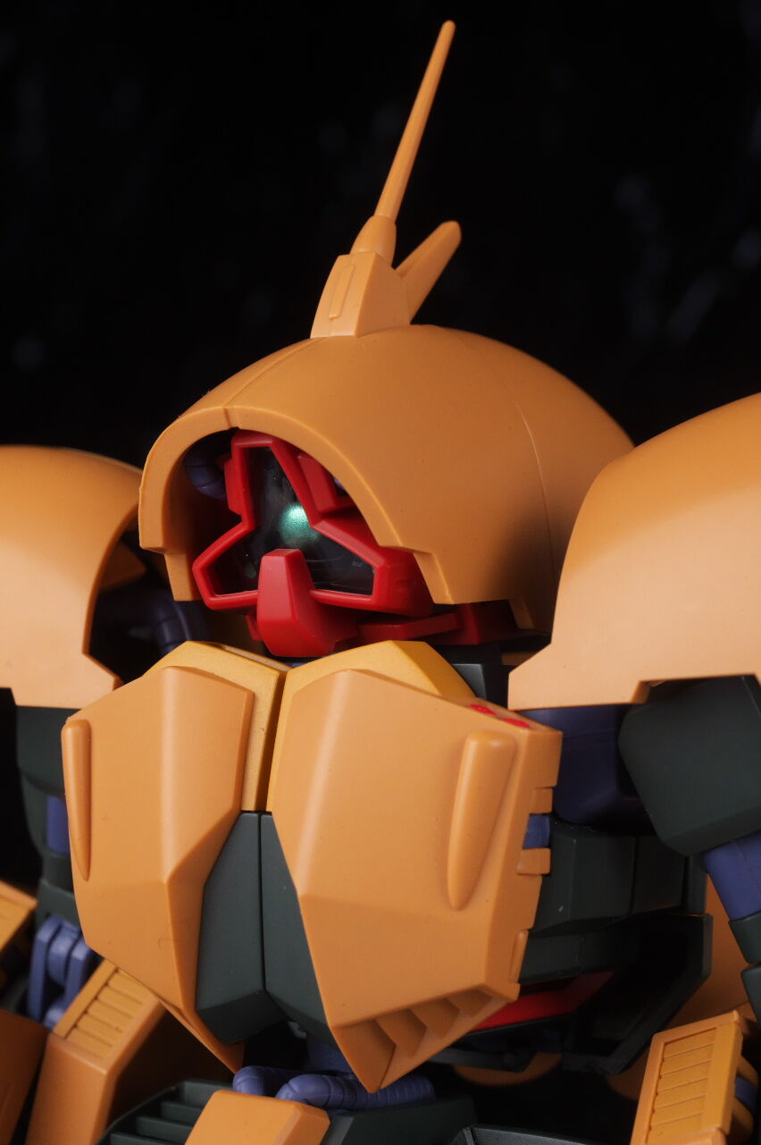 モノアイはいつも通りメタリック塗装で、劇場版で描写された3点のサブモノアイも再現。