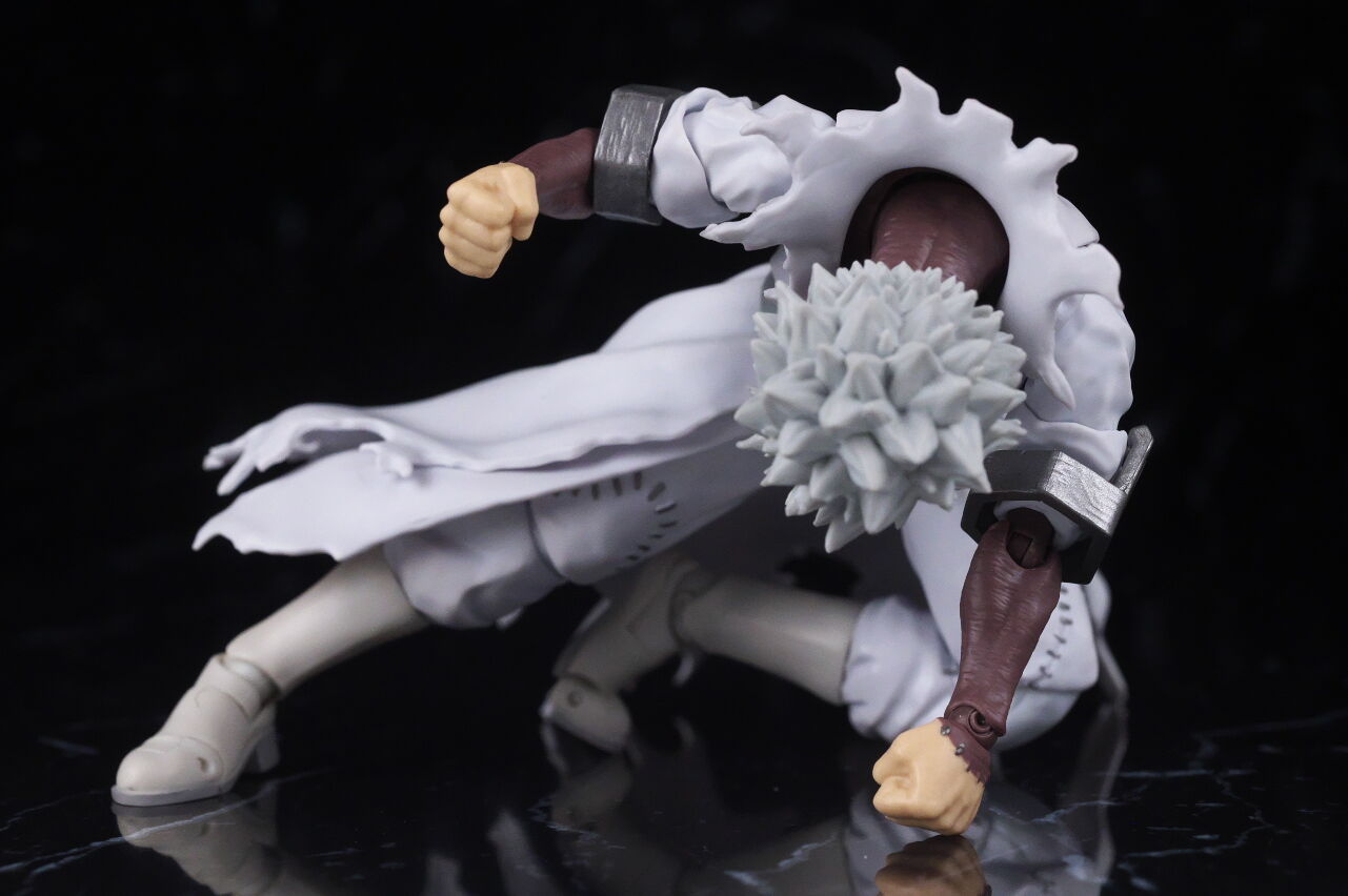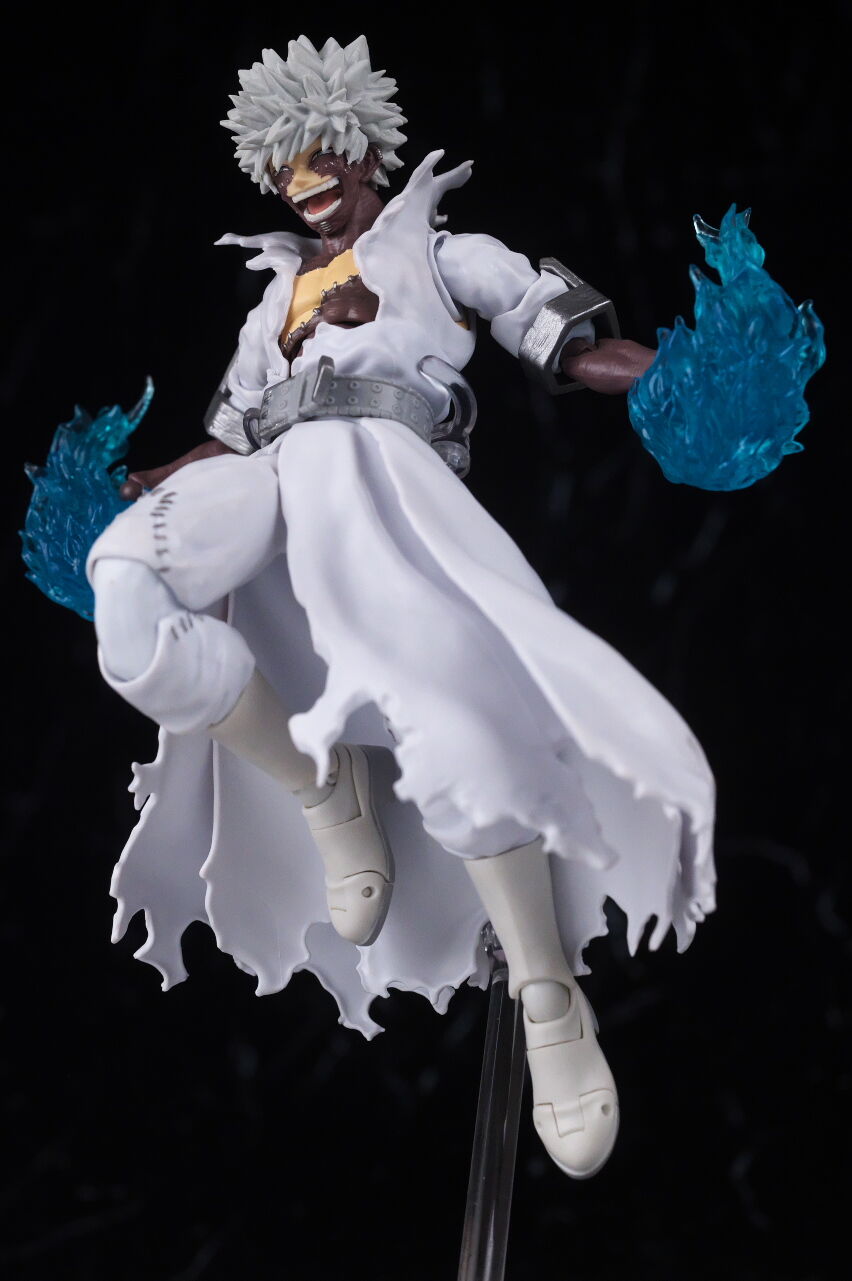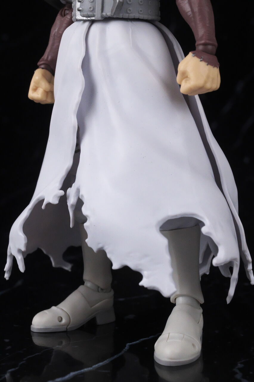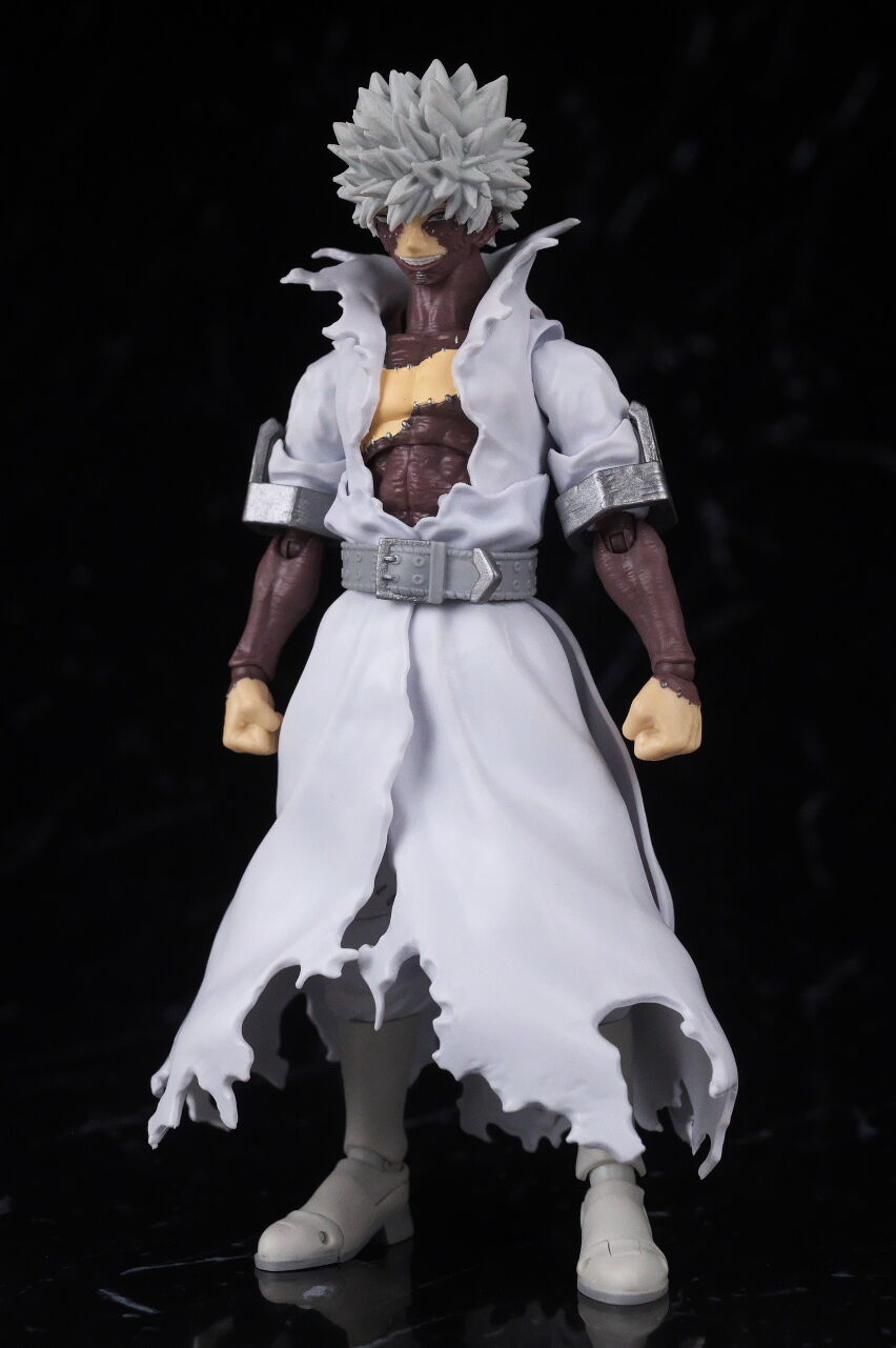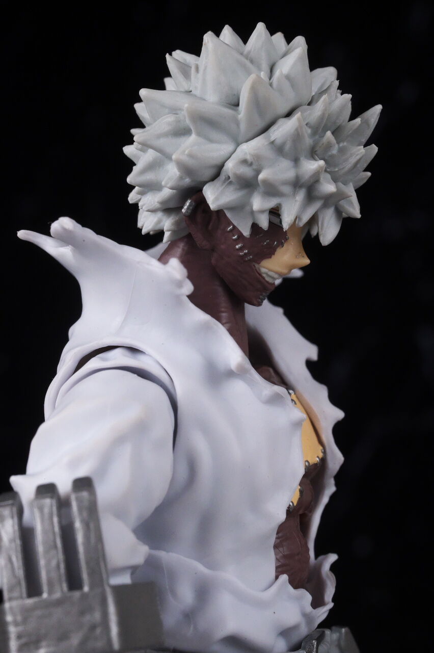 全身。初のヴィラン側のキャラですが、これまでのヒロアカシリーズ同様最終決戦時の姿で、白髪と死装束風の真っ白なコートで立体化。プロポーションもこれまで同様作中イメージ通りで衣装なども精密に造形。