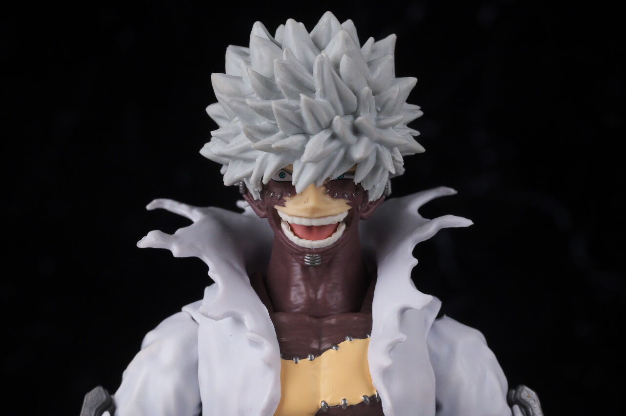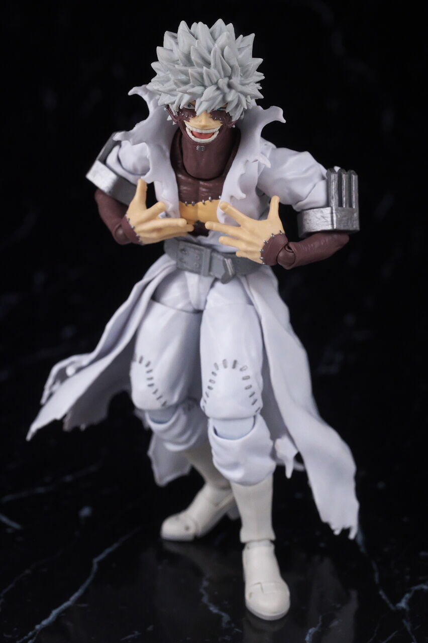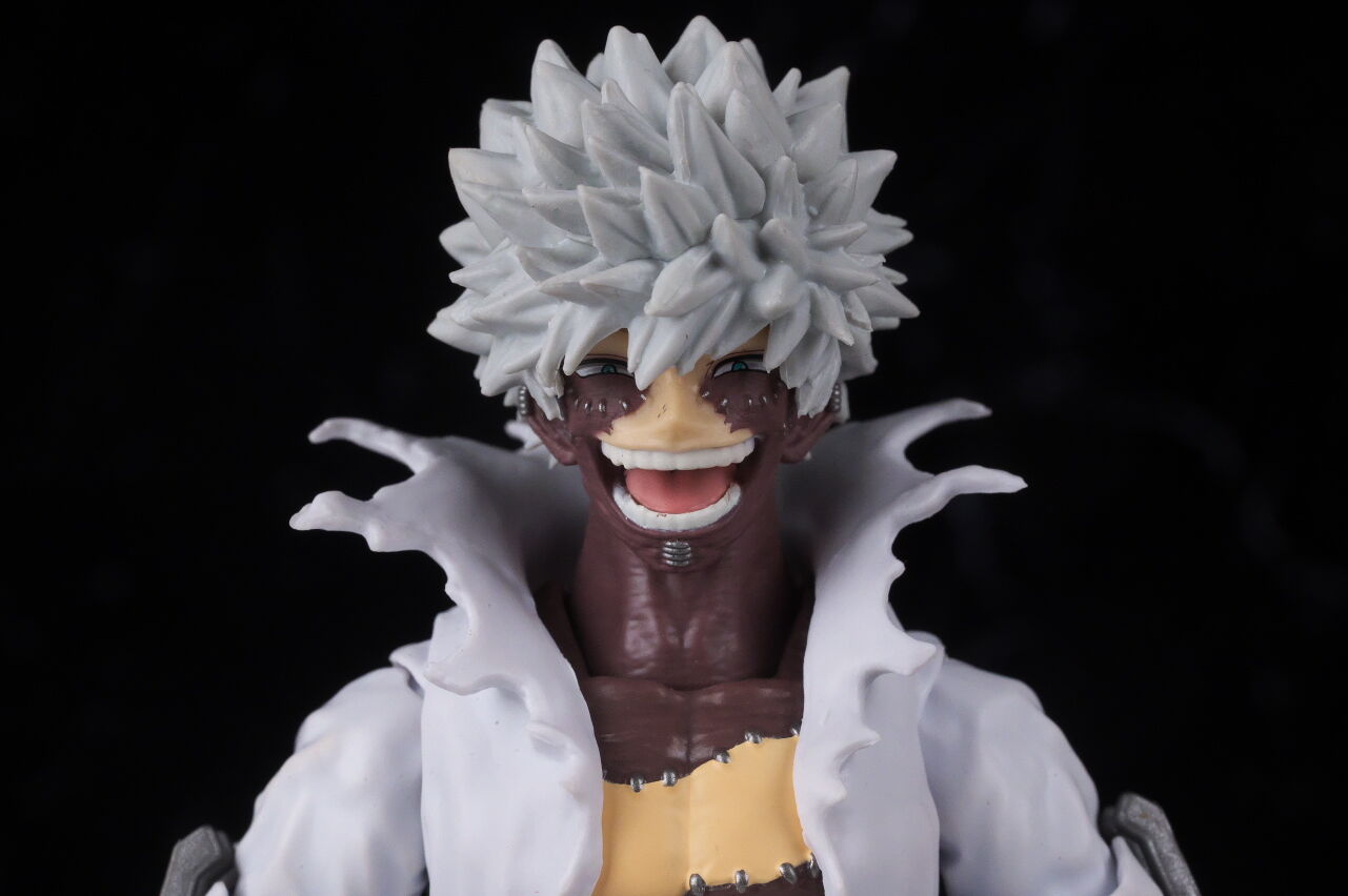 首が少し長い体型や火傷痕、ホッチキス、ボロボロのコートなど非常に見た目の個性が強いキャラですが、造形塗装など全て忠実に再現されており、歪んだ感じの笑顔などもイメージ通りで、これまでのヒロアカシリーズ同様完成度の高い出来に仕上がってました。