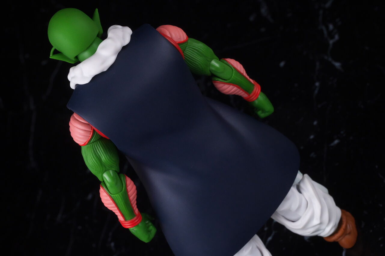 交換用のストールが付属し、戦闘時の上着を脱いだ状態も再現可。色も-誇り高きナメック星人-のピッコロと同じで横線の部分はピンクでした。