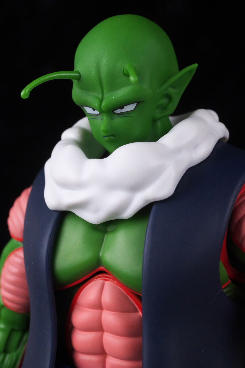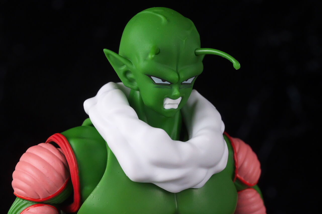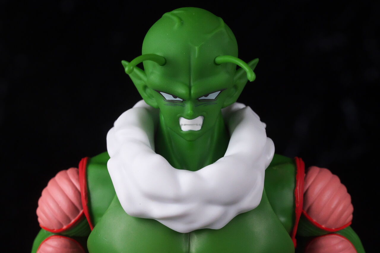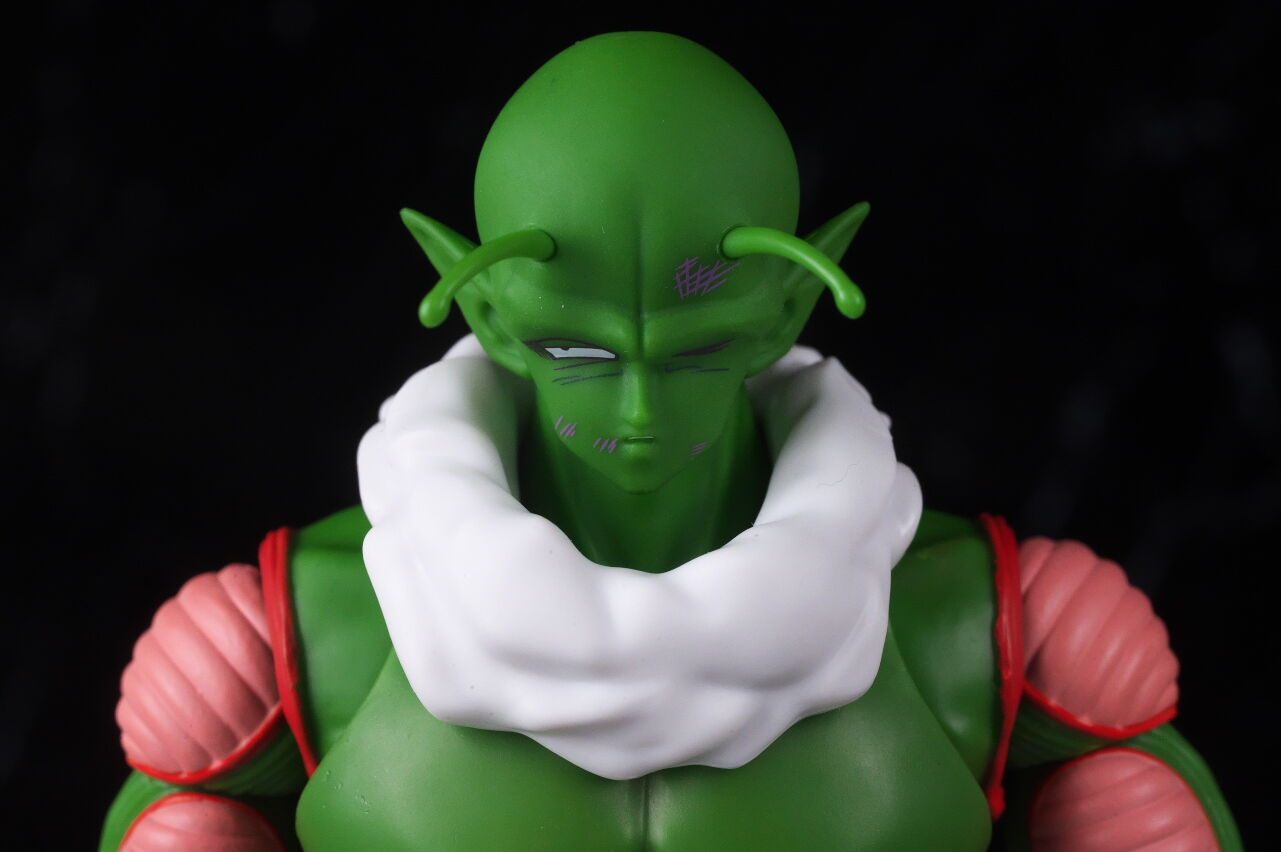 顔。最近の技術での新規造形なだけあって顔の再現度は非常に高く、ピッコロに似ていながらも若干異なる顔立ちが原作通り再現されてました。