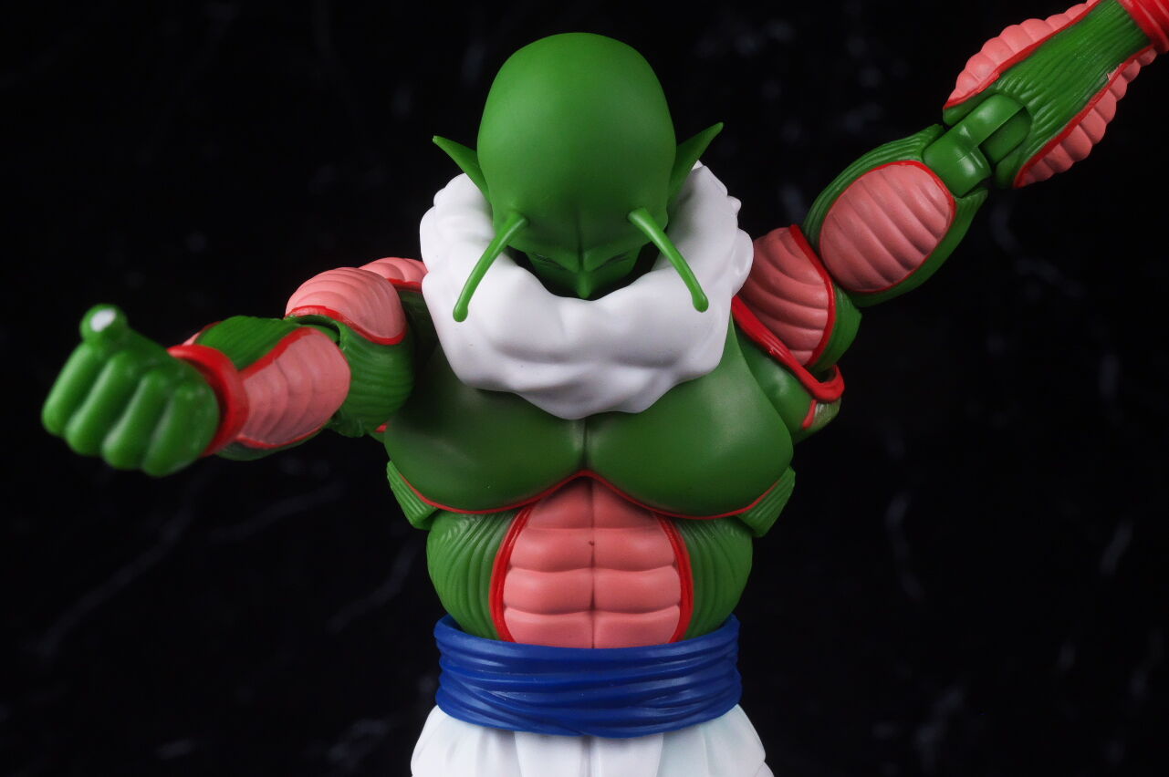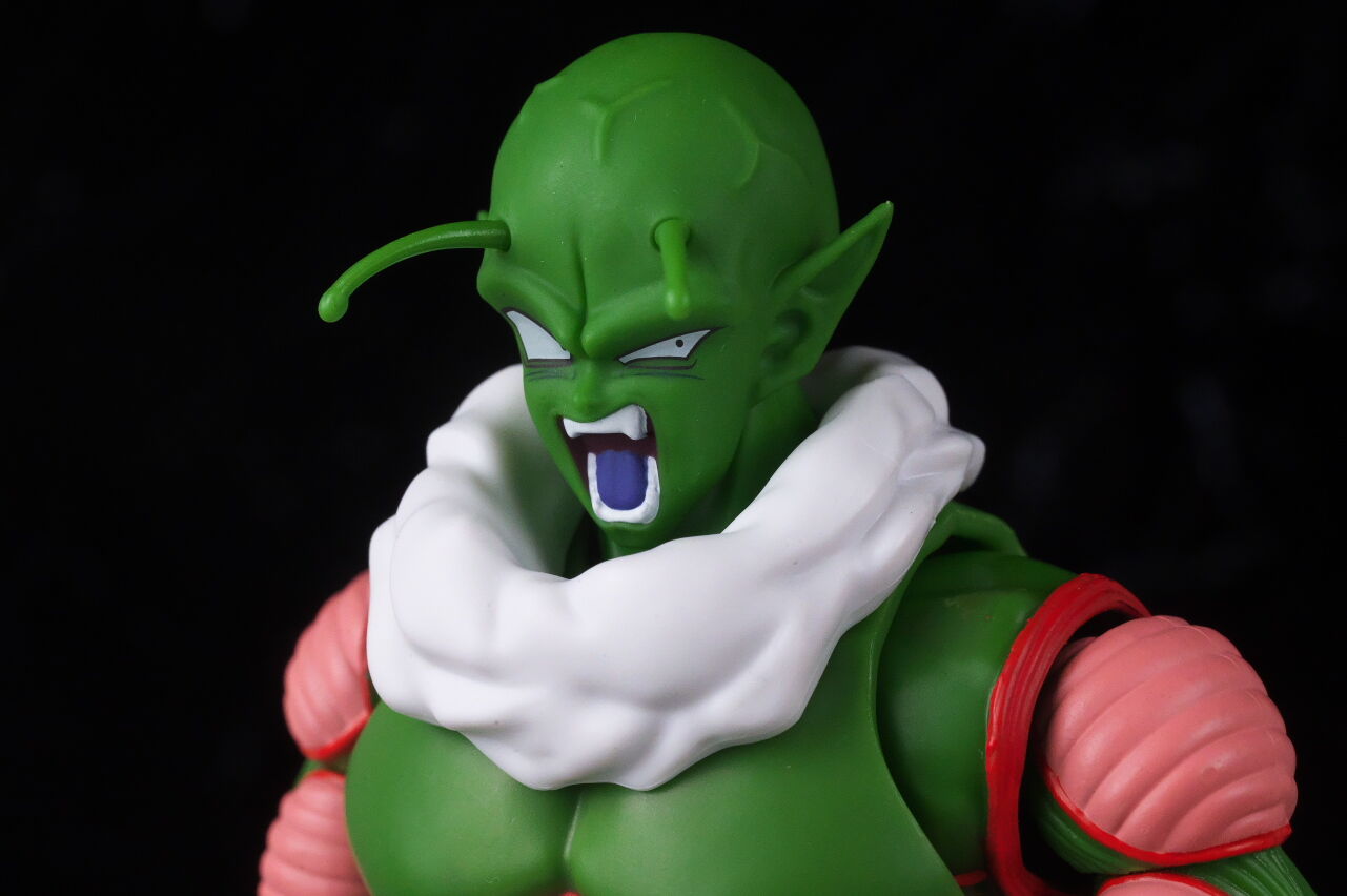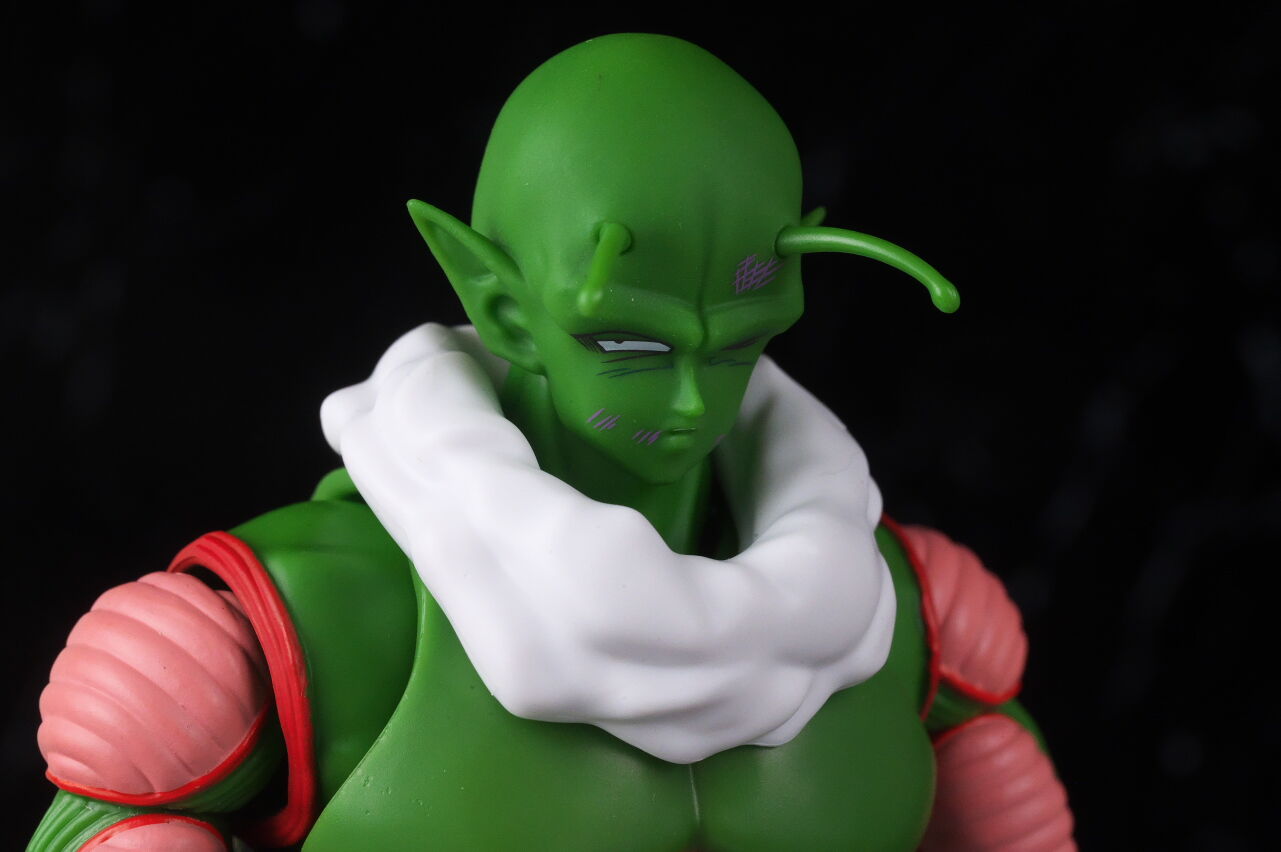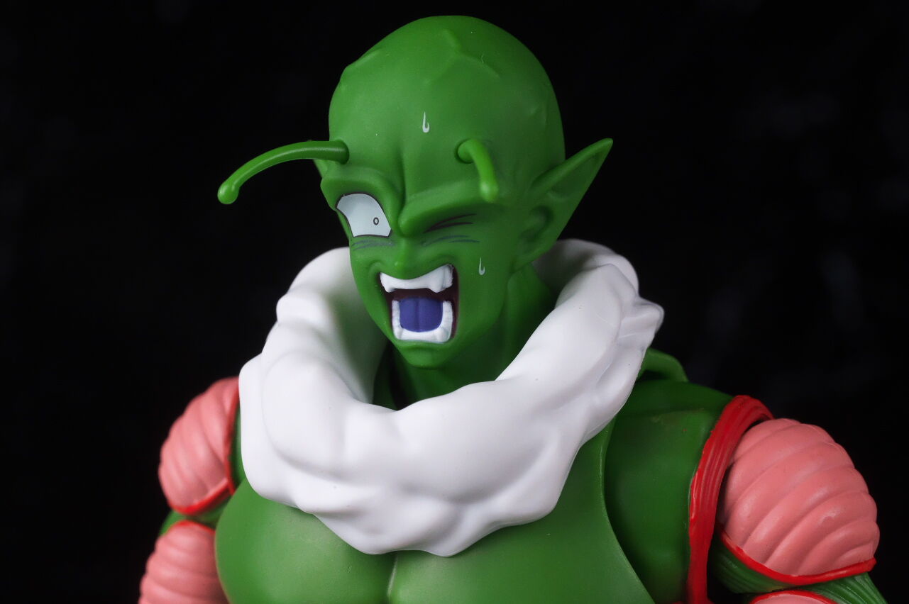 顔。最近の技術での新規造形なだけあって顔の再現度は非常に高く、ピッコロに似ていながらも若干異なる顔立ちが原作通り再現されてました。