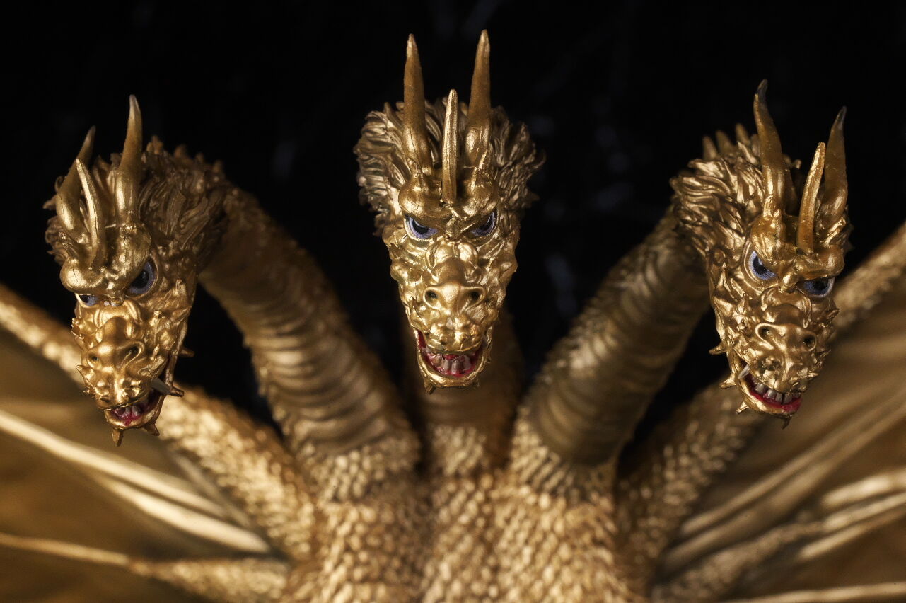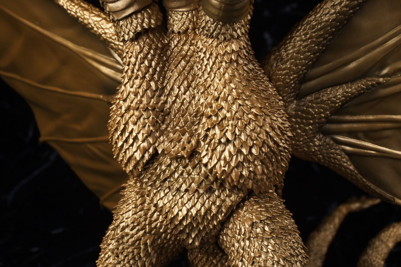 全身。1972年公開「地球攻撃命令 ゴジラ対ガイガン」に登場するバージョンのキングギドラで造形は新規。