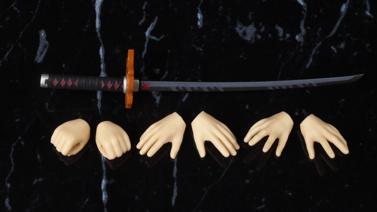 全身。造形は基本的に以前のノーマル版と同じ。無限城仕様ということで表情パーツが新しくなり、刀の鍔は煉獄杏寿郎の物のみになってました。