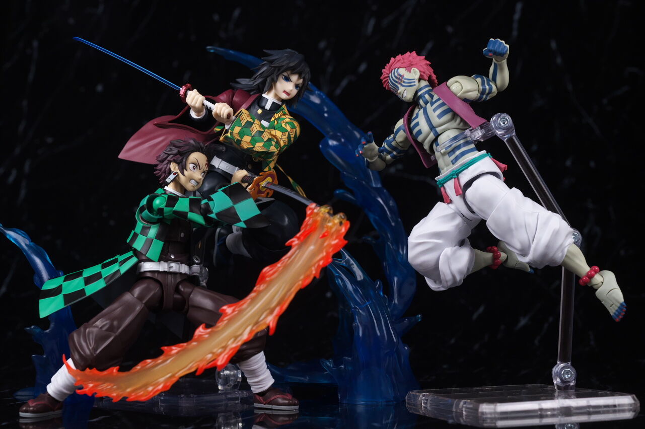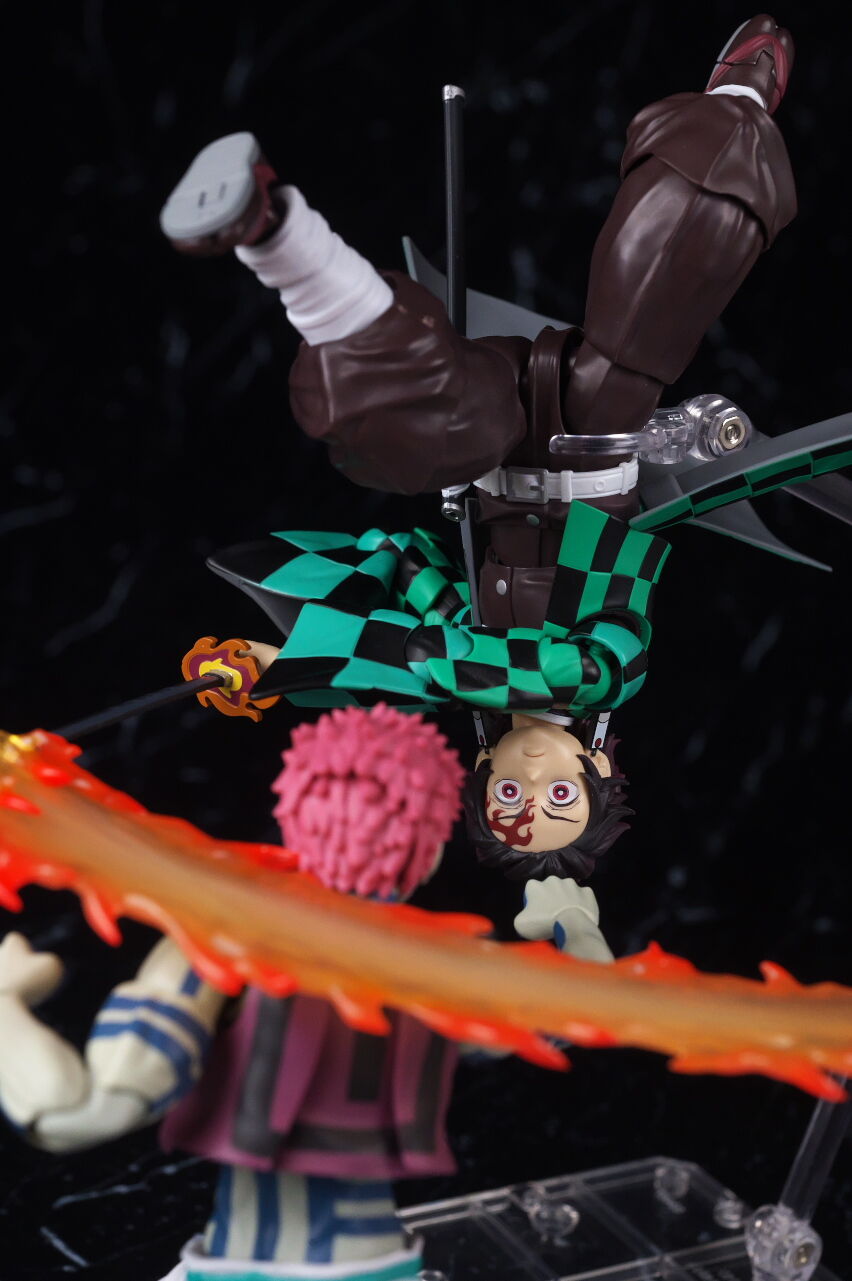 無限城背景シートを使って。こちらも面白い付属品ですが、SHFの箱サイズなので高さがあまり無い点がちょっと残念でした。