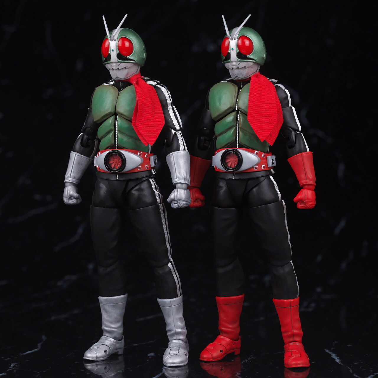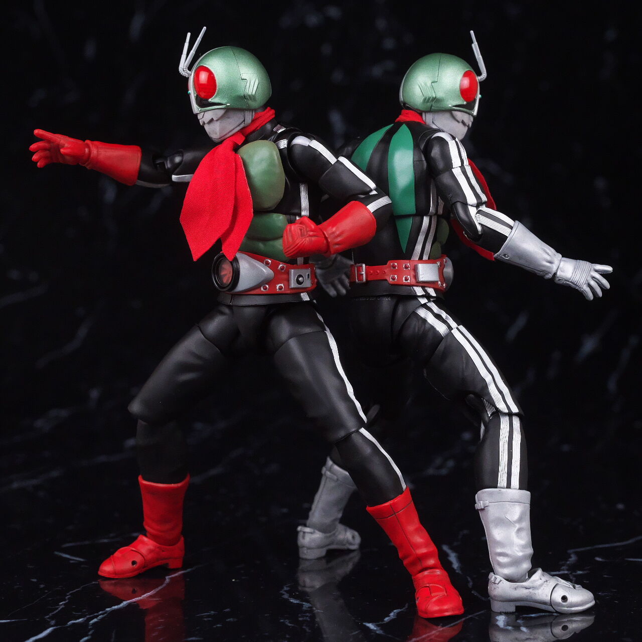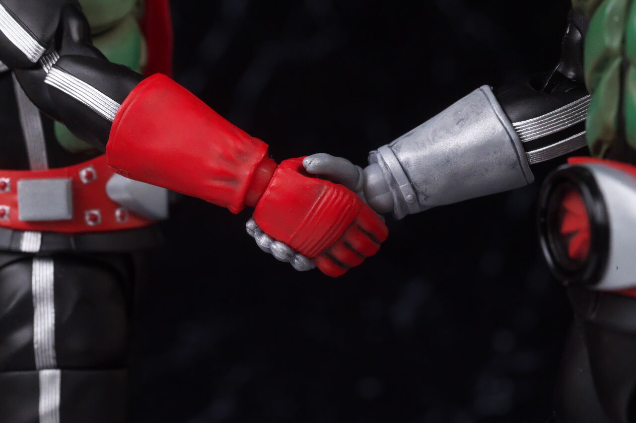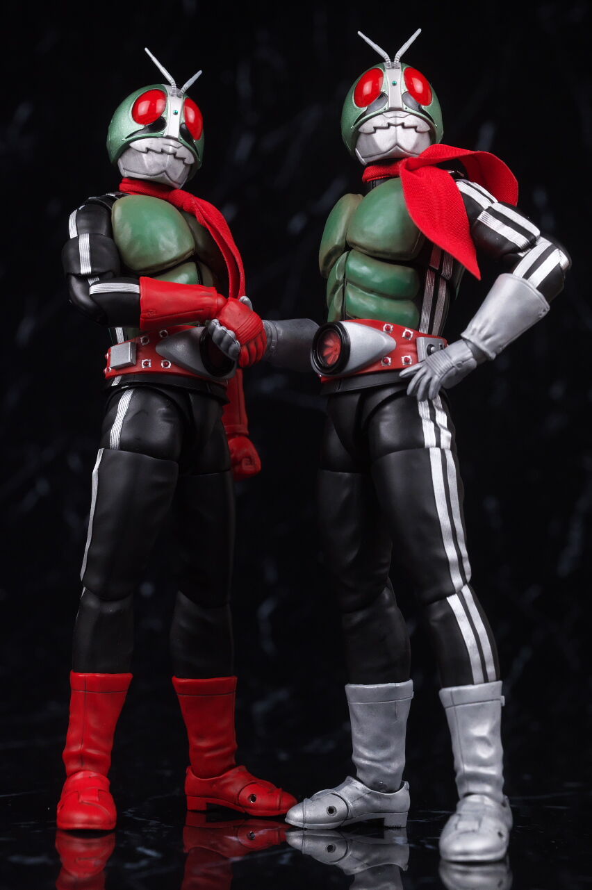 栄光の昭和ライダーエディション同士で新1号と。複眼の色味や胸部装甲の塗装など共通の見た目に。