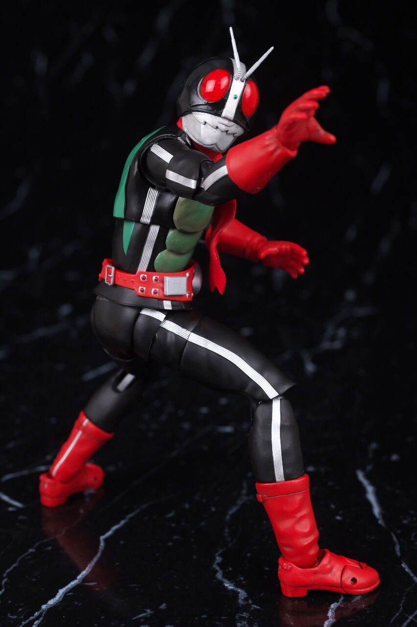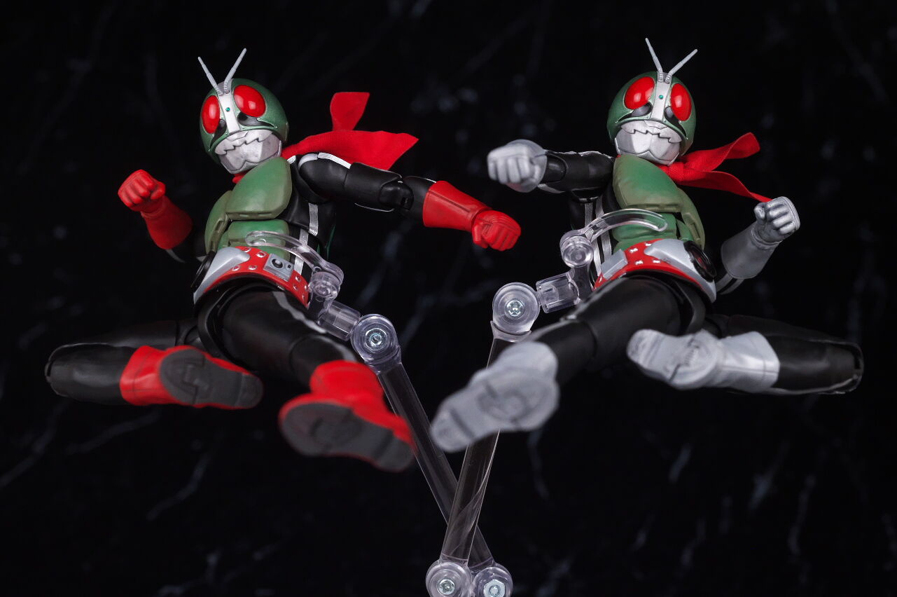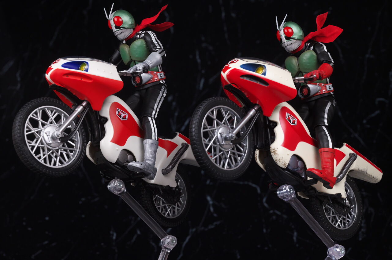 変更された塗装は新1号の時と同じで、より劇中に近い色や汚しになっていて、以前よりリアルさがアップしており、マフラーがワイヤー入りの布製になったことにより、そちらの見栄えも向上、客演時の黒マスクも色味などイメージ通りで、可動なども問題なく、今回も満足度の高い内容になってました。