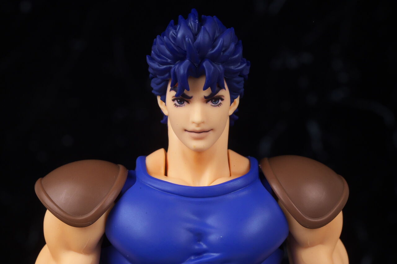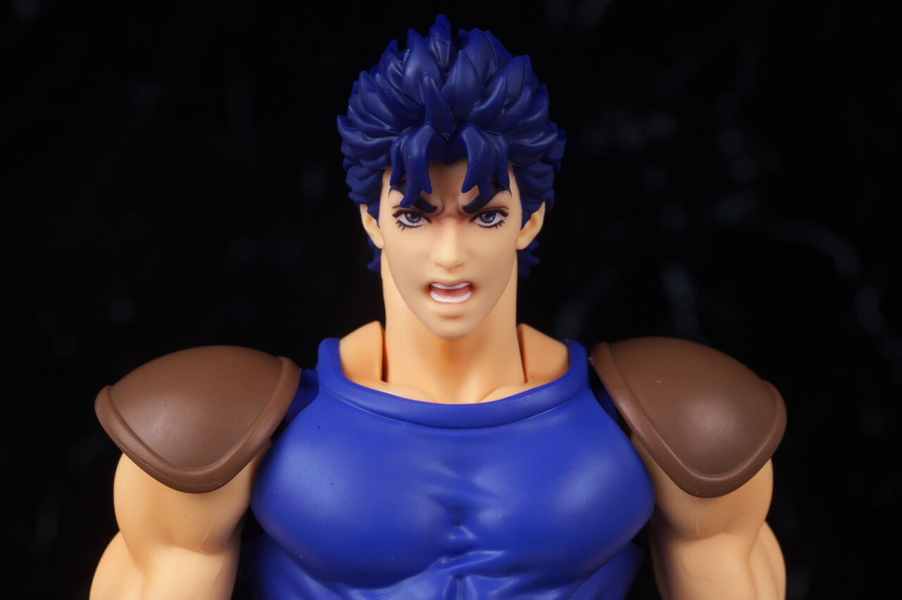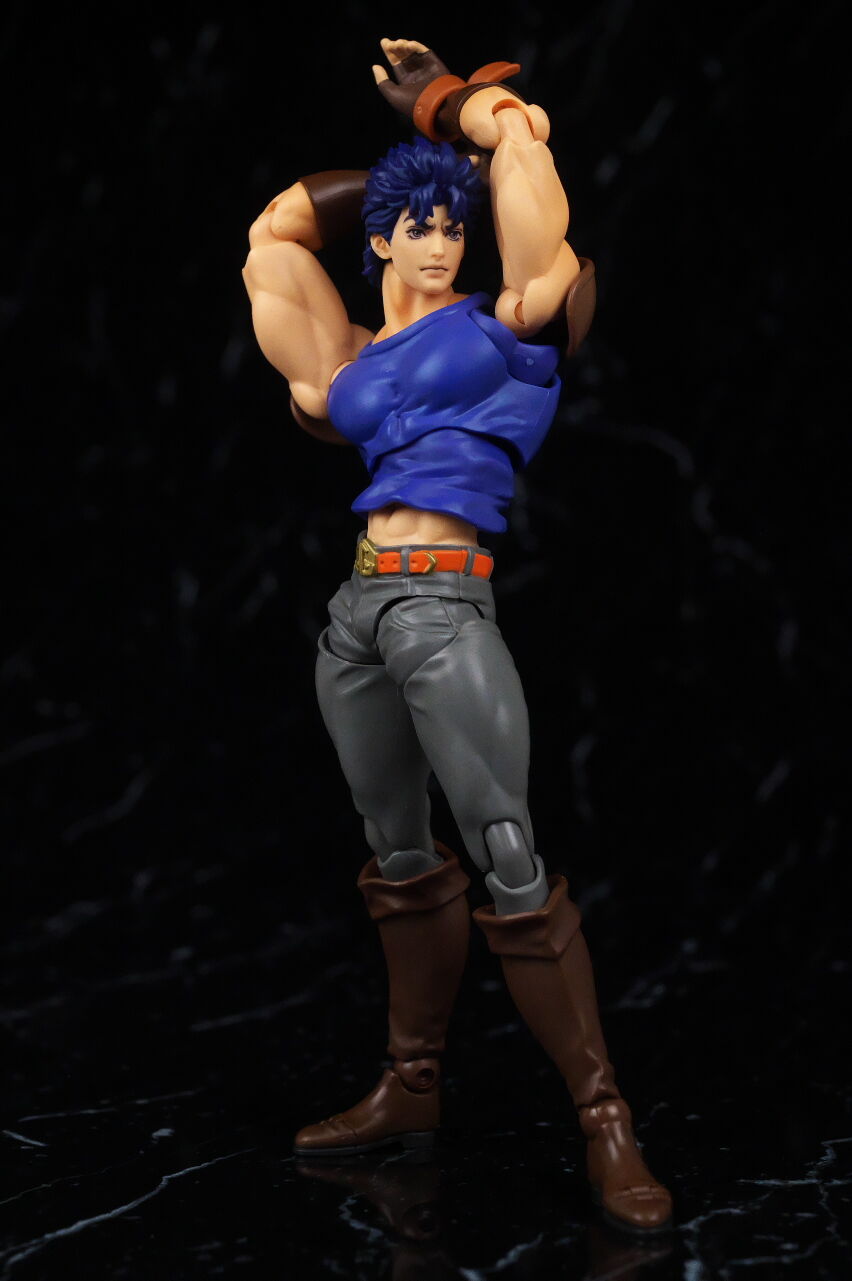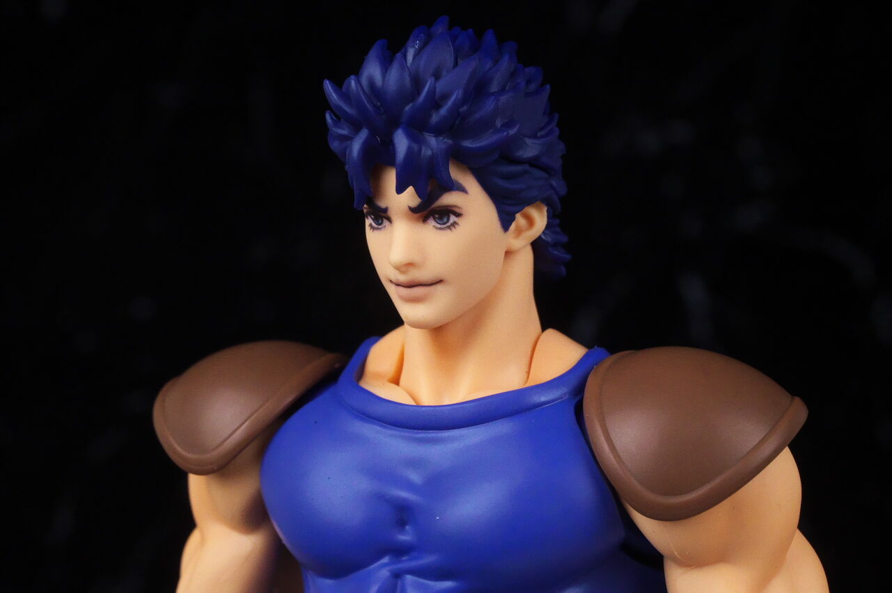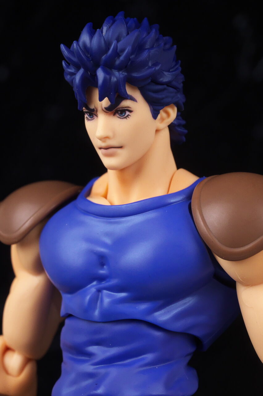 ジョジョのアクションフィギュアは超像可動が確固たる地位を築いているので、今更SHFという感じは少しありましたが、SHFの方はアニメ版デザインになっていて、超像とはコンセプトが違っており、アニメ版アクションフィギュアとして見ると、四肢は若干細いものの、プロポーションは概ね自然なバランスで、顔の再現度も高く、全体の塗装や質感も良好で、よく出来てました。