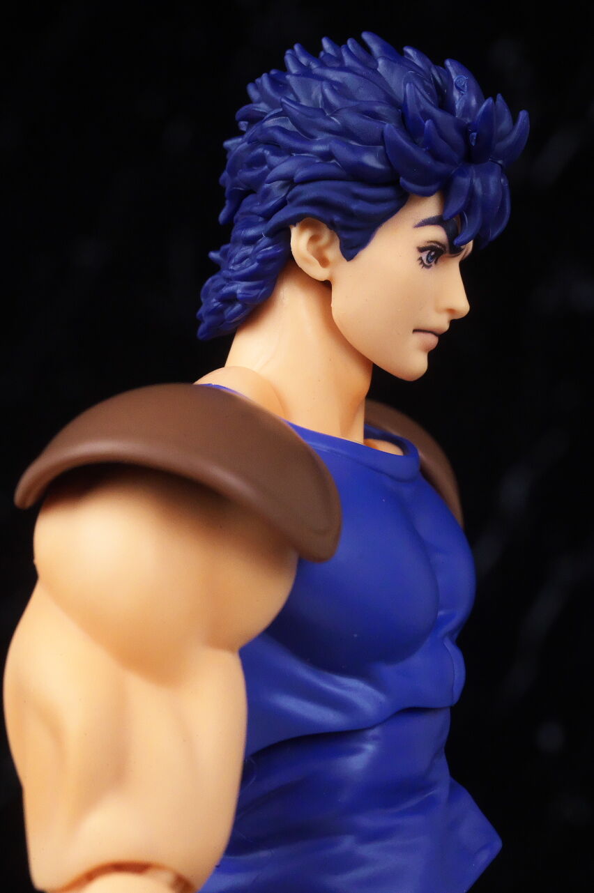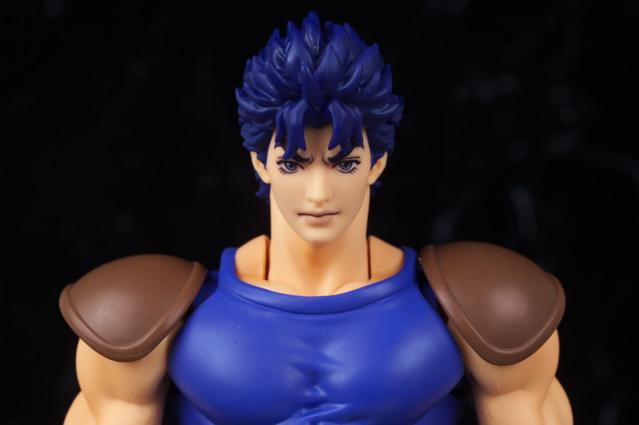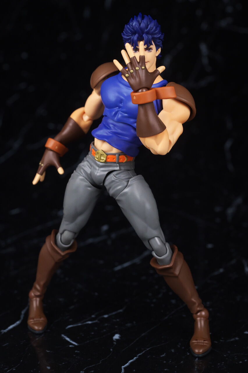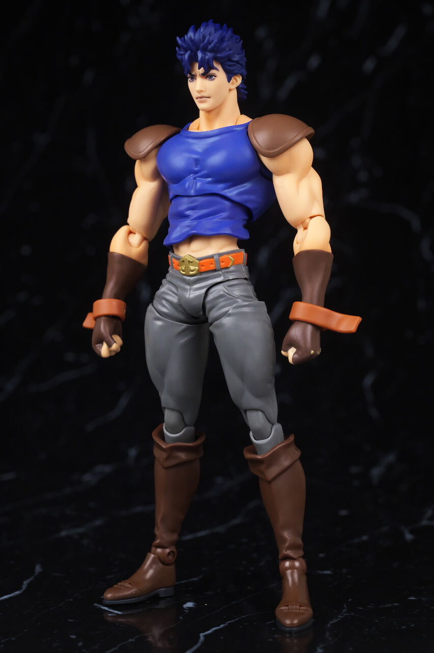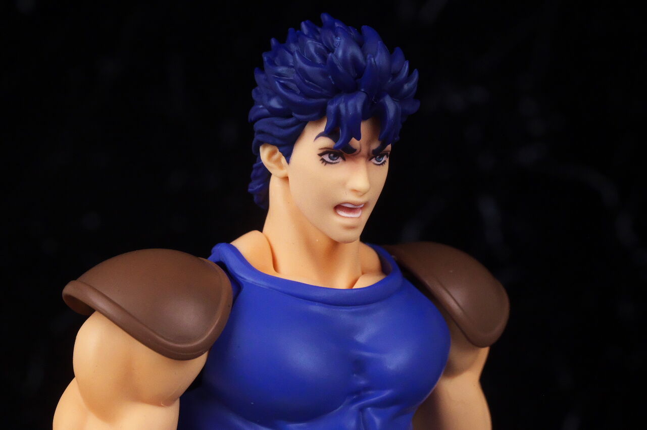 ジョジョのアクションフィギュアは超像可動が確固たる地位を築いているので、今更SHFという感じは少しありましたが、SHFの方はアニメ版デザインになっていて、超像とはコンセプトが違っており、アニメ版アクションフィギュアとして見ると、四肢は若干細いものの、プロポーションは概ね自然なバランスで、顔の再現度も高く、全体の塗装や質感も良好で、よく出来てました。