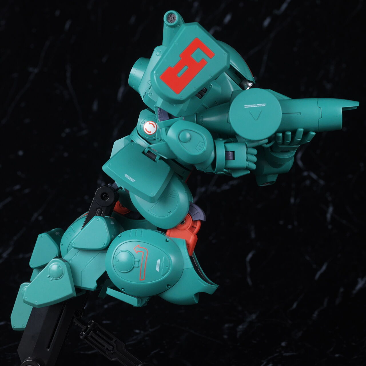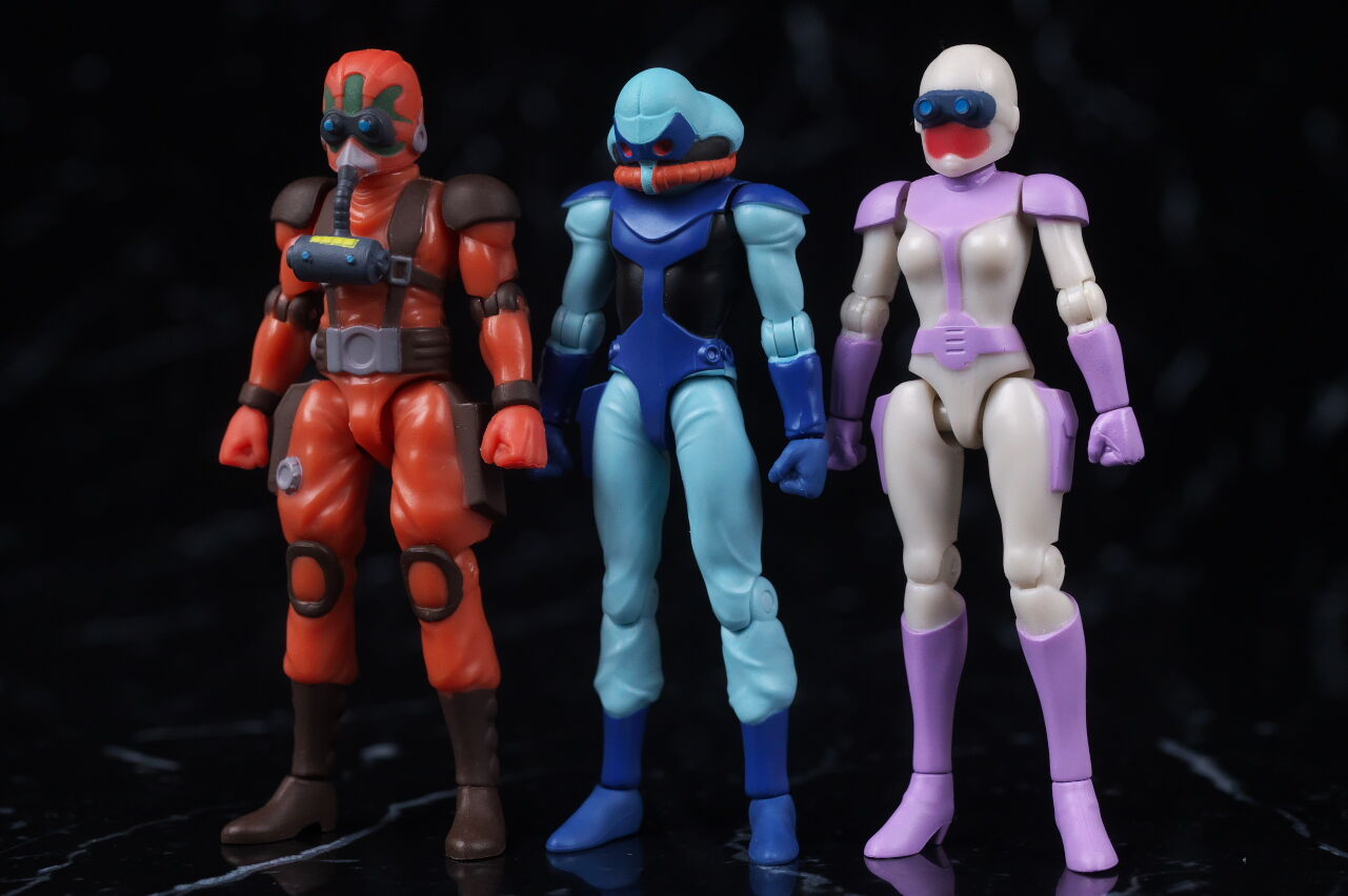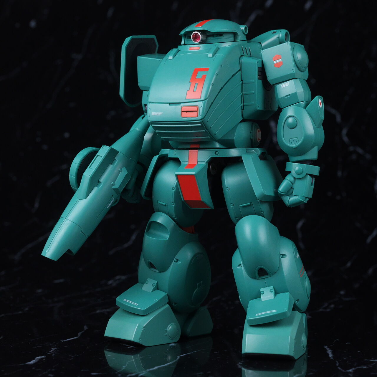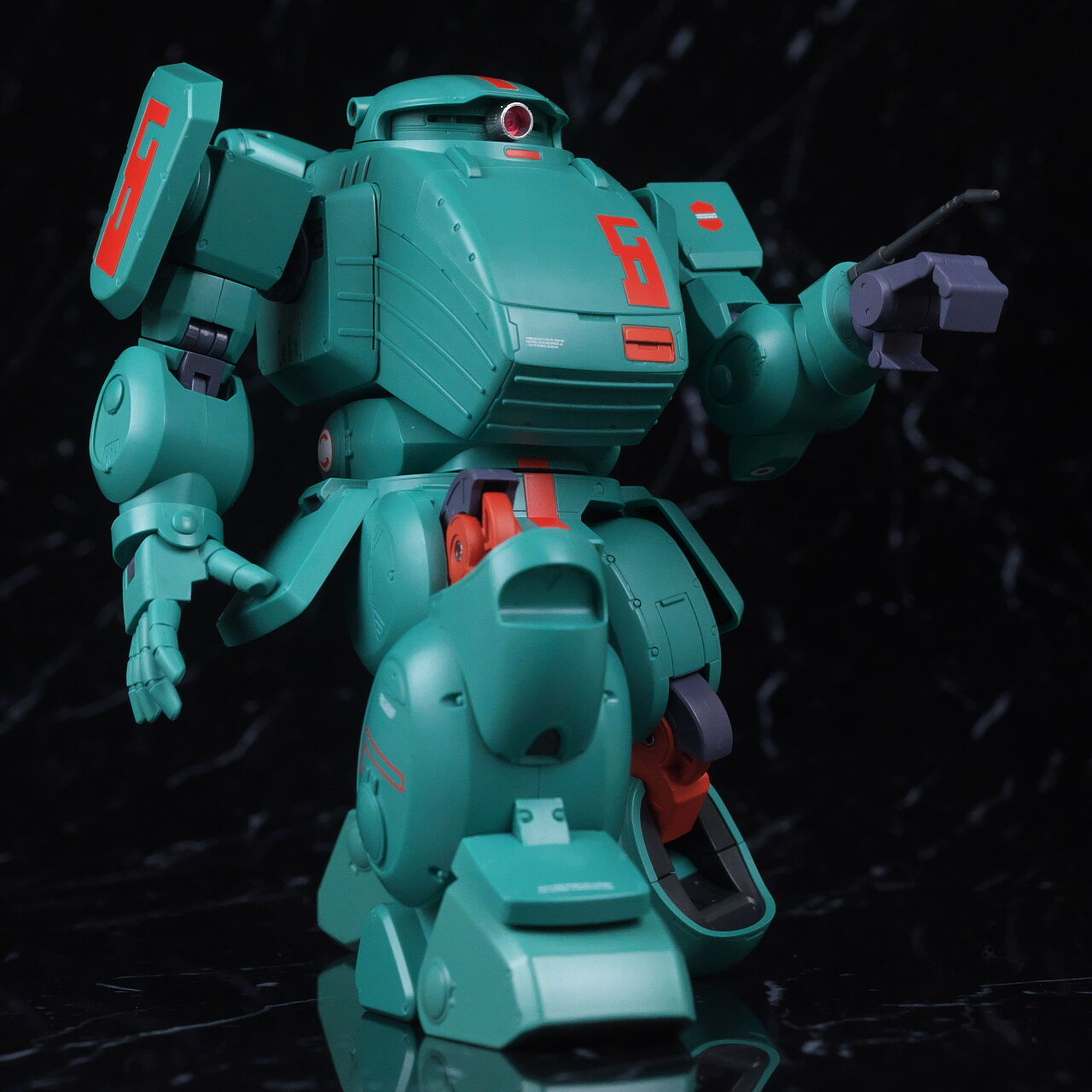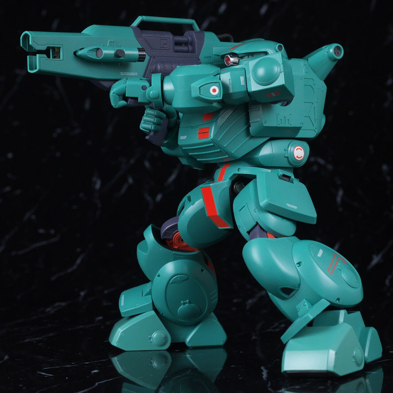 スコープドッグより一回り大きく太い体型や、エメラルドグリーンの機体色など劇中のイメージ通り再現されており、可動も武器が両手持ち出来るように、肩がスライドしたり引き出せたりなどかなり作り込まれていて、いつも通りコクピットハッチの開閉やパイロットフィギュア、降着ポーズの再現なども抜かりなく、完成度の高い出来に仕上がってました。