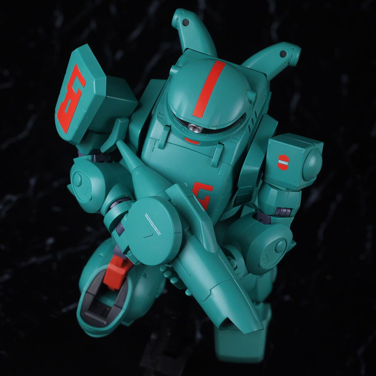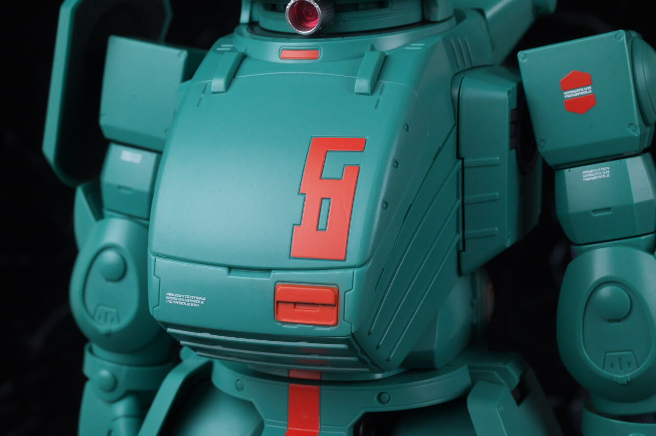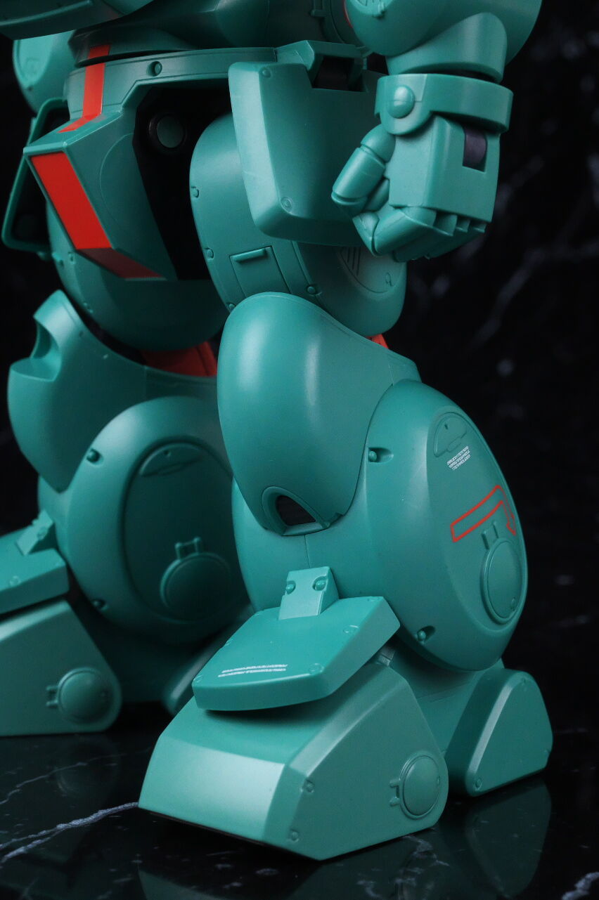 全身。名前の通りファットな体型が劇中のイメージ通り再現されており、全体的にスコープドッグより一回り大きめ。エメラルドグリーンの機体色もイメージ通り再現されてました。