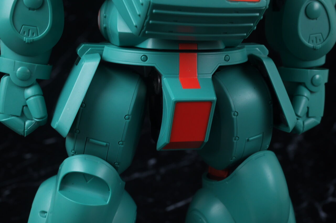 各部位など。頭部が短い分、胴体はスコープドッグより長めで、幅も厚みもかなりある太っちょ体型。サイズが大きめなので若干ディテールアップされてますが、平坦な部分も多く劇中のイメージ通りのシンプルさでした。