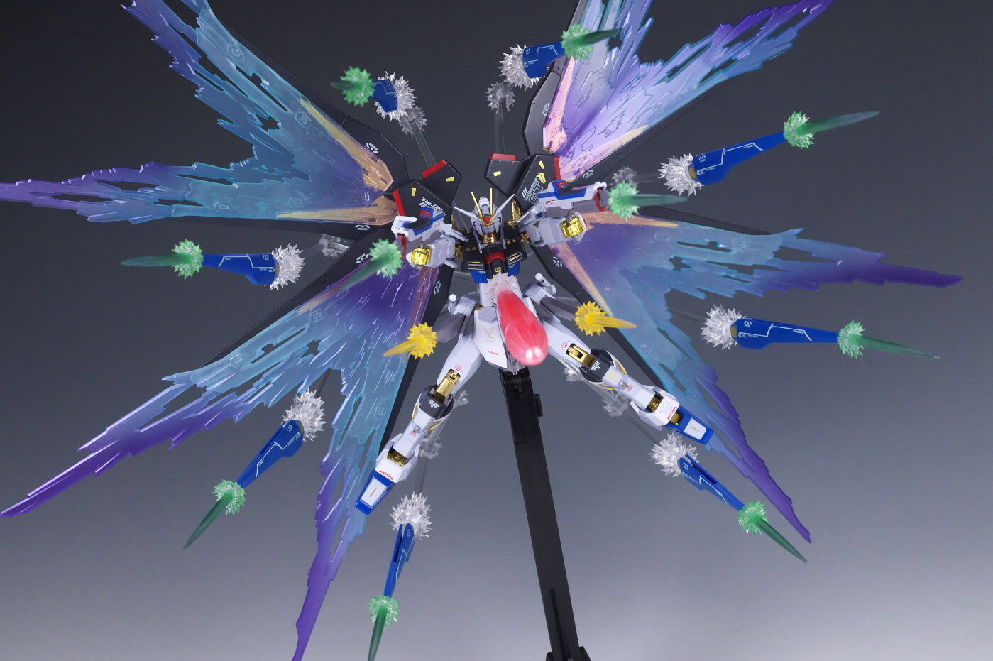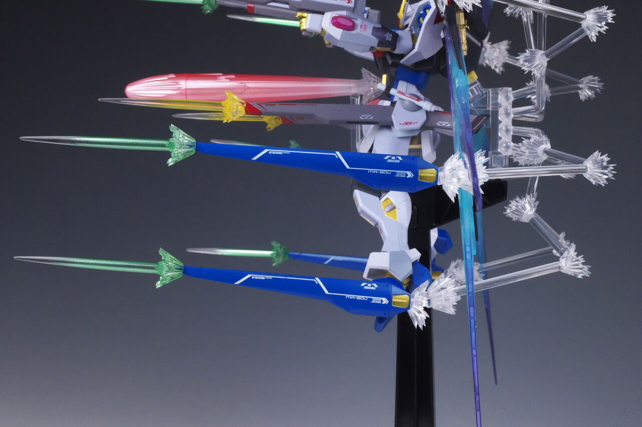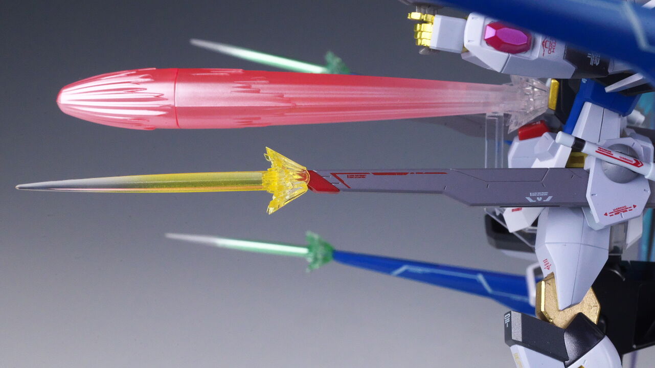 デスティニーでもそうだったので、光の翼の色が変わっているのは想定通りでしたが、各ビームエフェクトにも塗装が追加されてることは考えていなかったので良かったです。