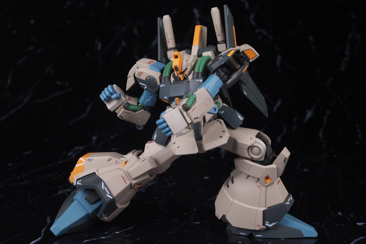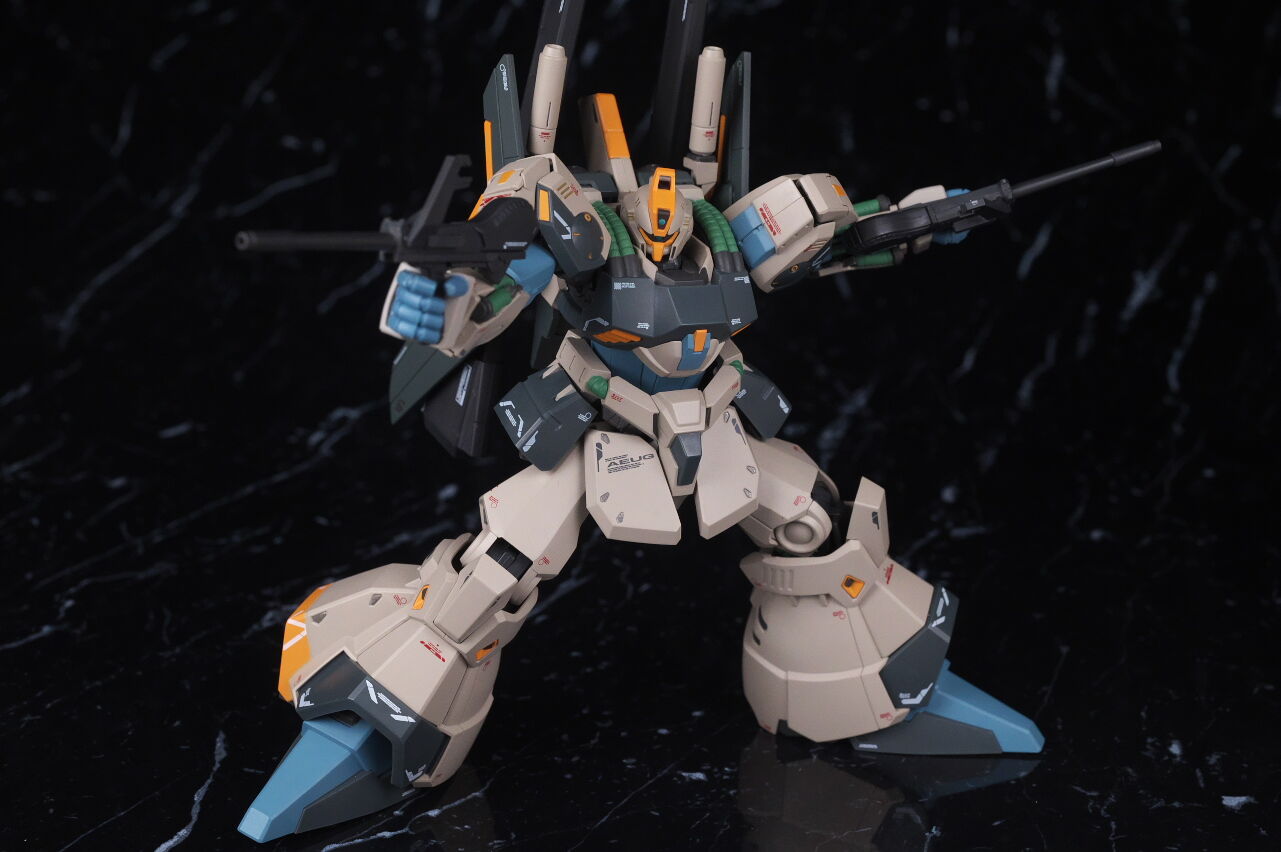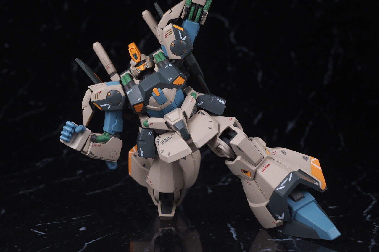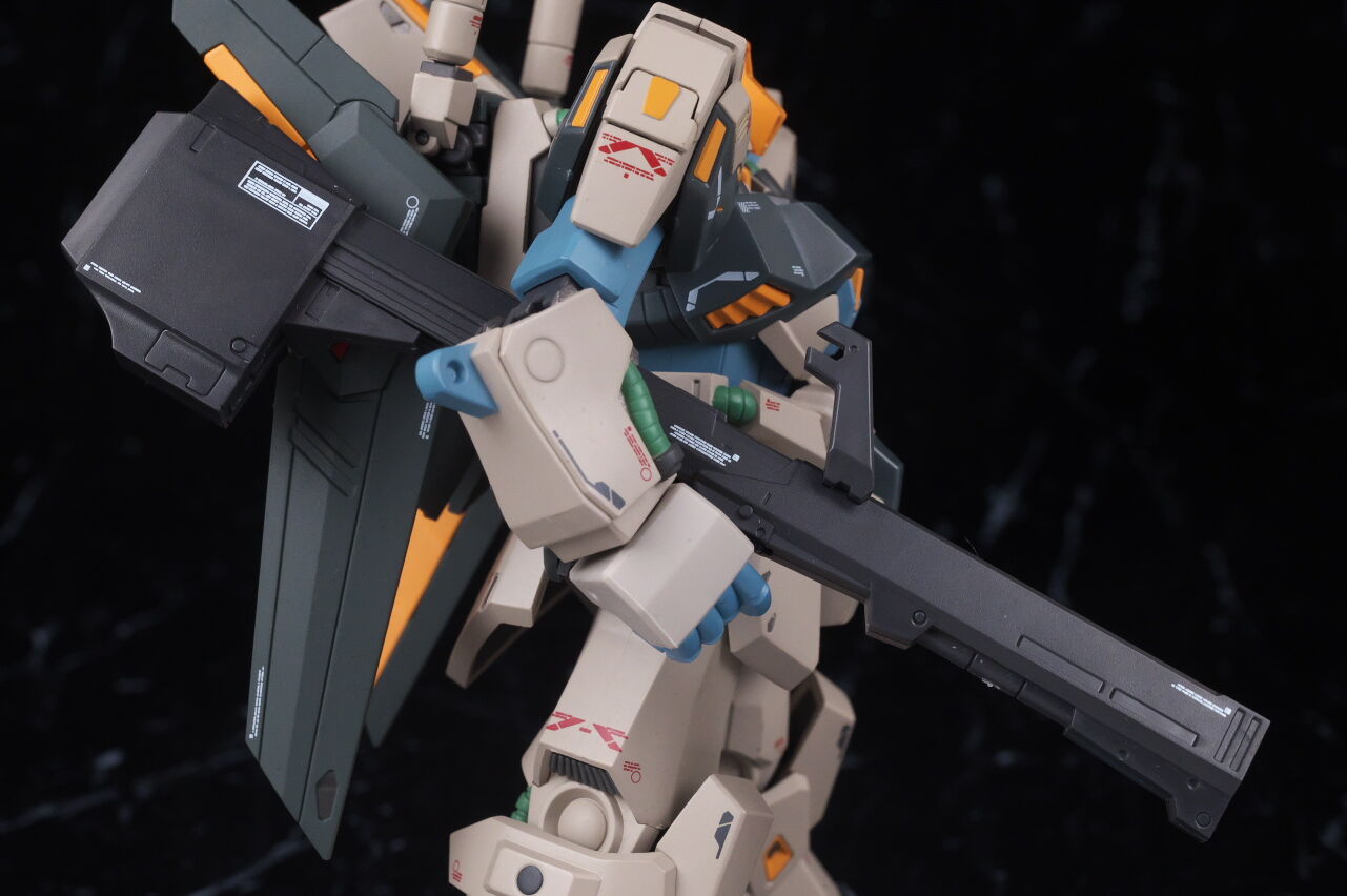 大まかなシルエットは似てはいるものの、ノーマルのリックディアスとの共通部分はほぼ無いプロトタイプ特有のデザインが新規造形で精密に再現されており、独特なカラーリングも設定画に忠実かつ、大部分が塗装なので質感も良く、非常に格好良く仕上がってました。
