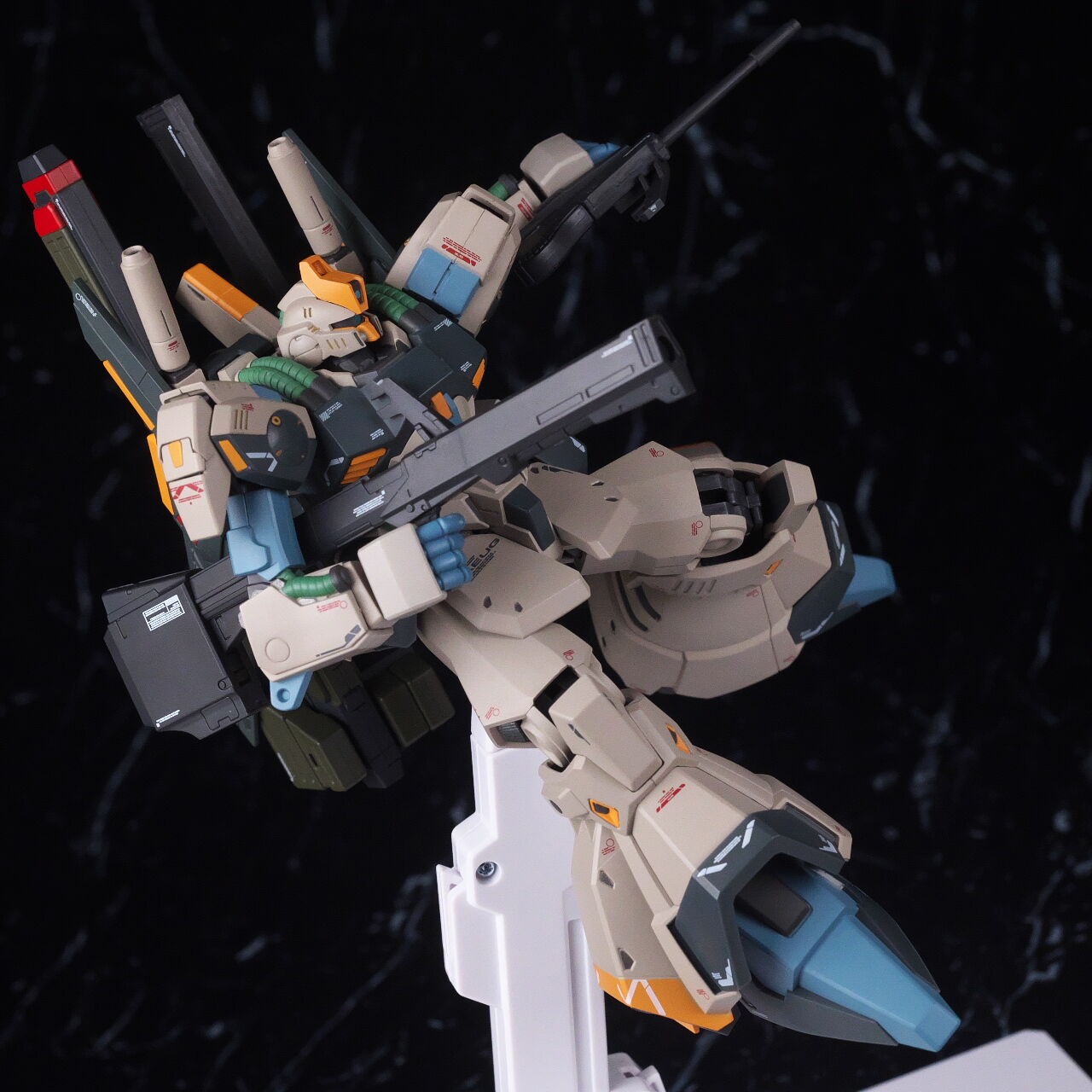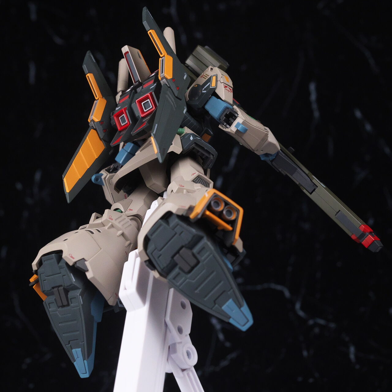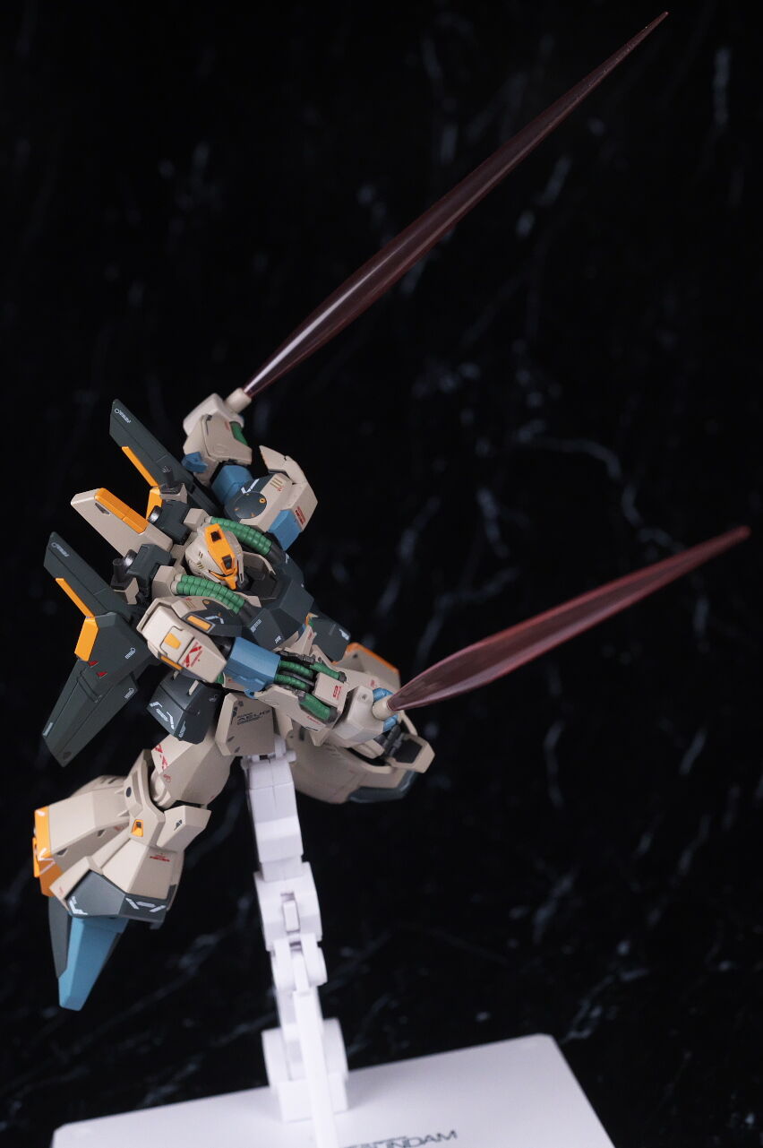 大まかなシルエットは似てはいるものの、ノーマルのリックディアスとの共通部分はほぼ無いプロトタイプ特有のデザインが新規造形で精密に再現されており、独特なカラーリングも設定画に忠実かつ、大部分が塗装なので質感も良く、非常に格好良く仕上がってました。