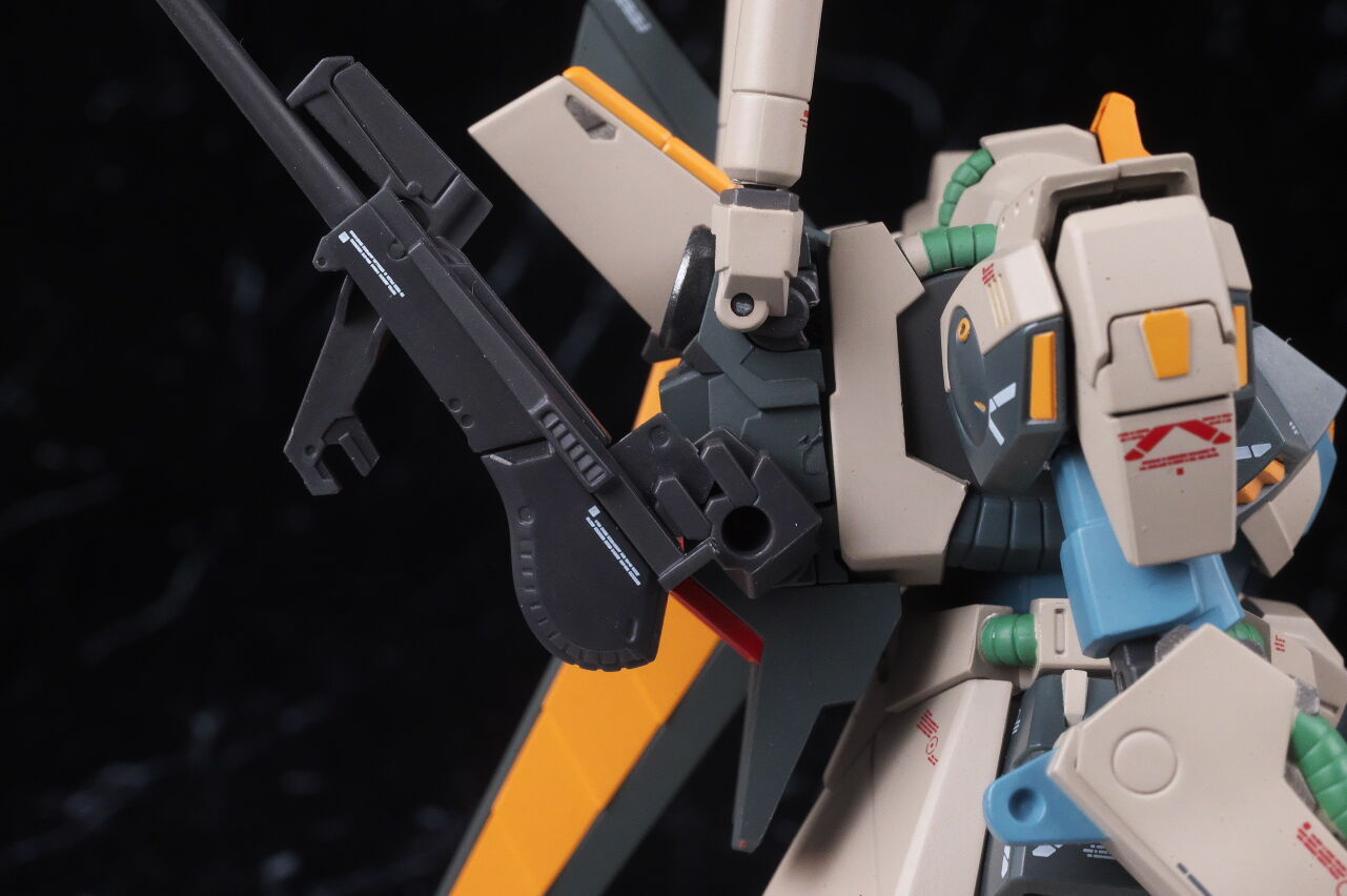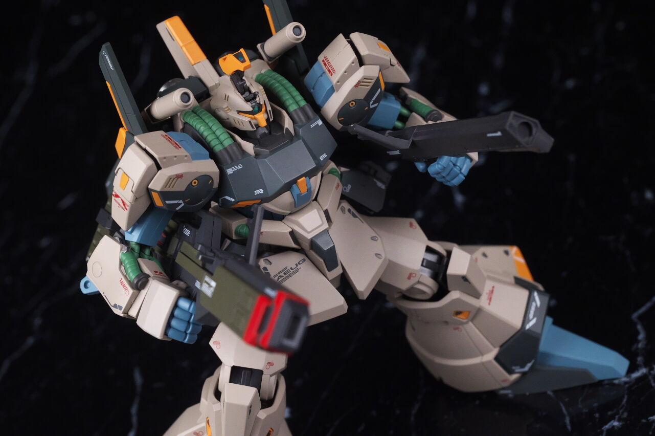 可動は肩回りなどは良いものの、接地性などいまいちで最近の感覚だと物足りなさはありましたが、オプションに関しては、ノーマルと同じ武装に加え、専用クレイ・バズーカなど独自の物も付属し、バルカン・ファランクスのギミックやトリモチランチャー手首など細部までこだわった内容になっており、台座と価格は気になりはしたものの、概ねは満足でした。